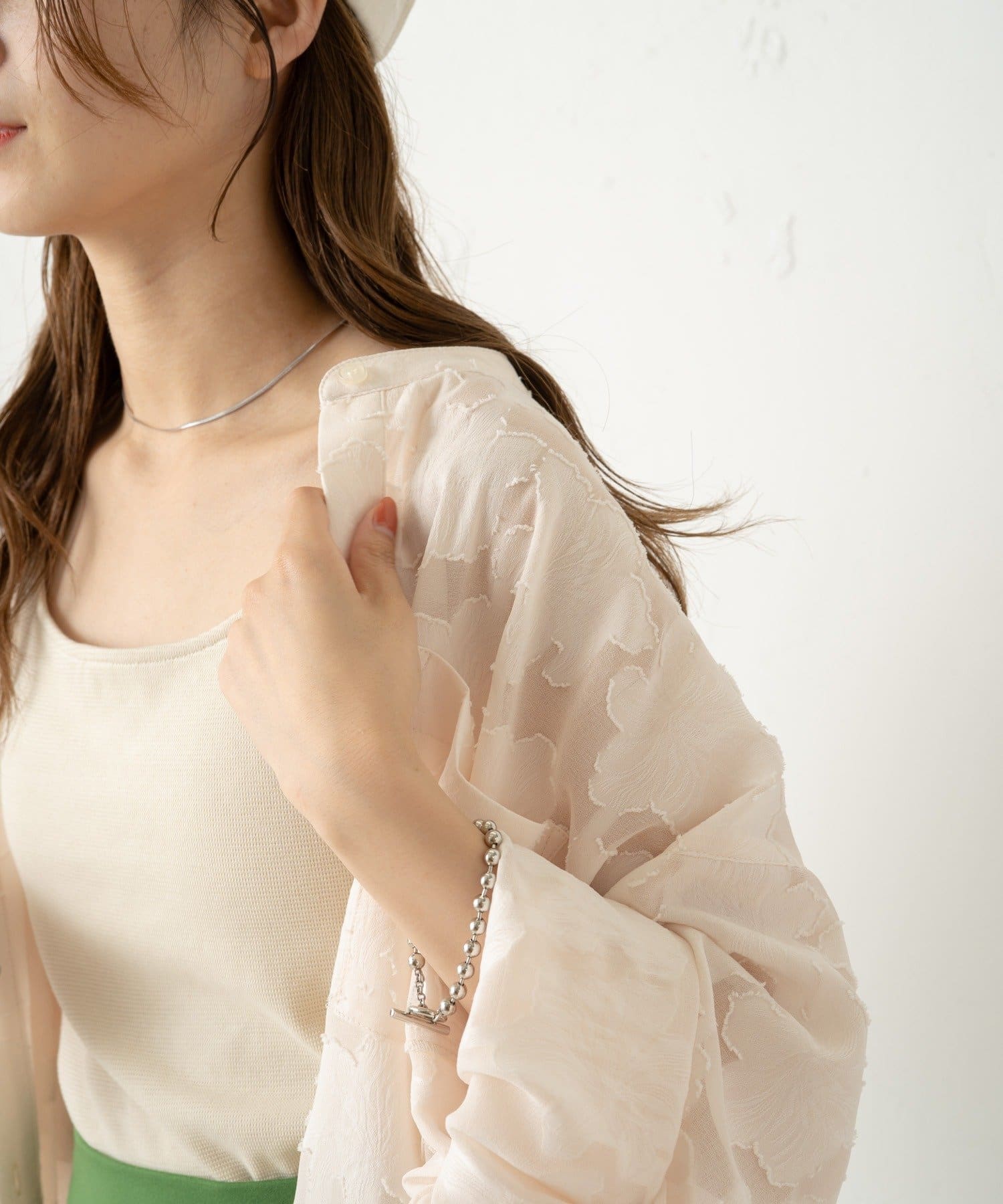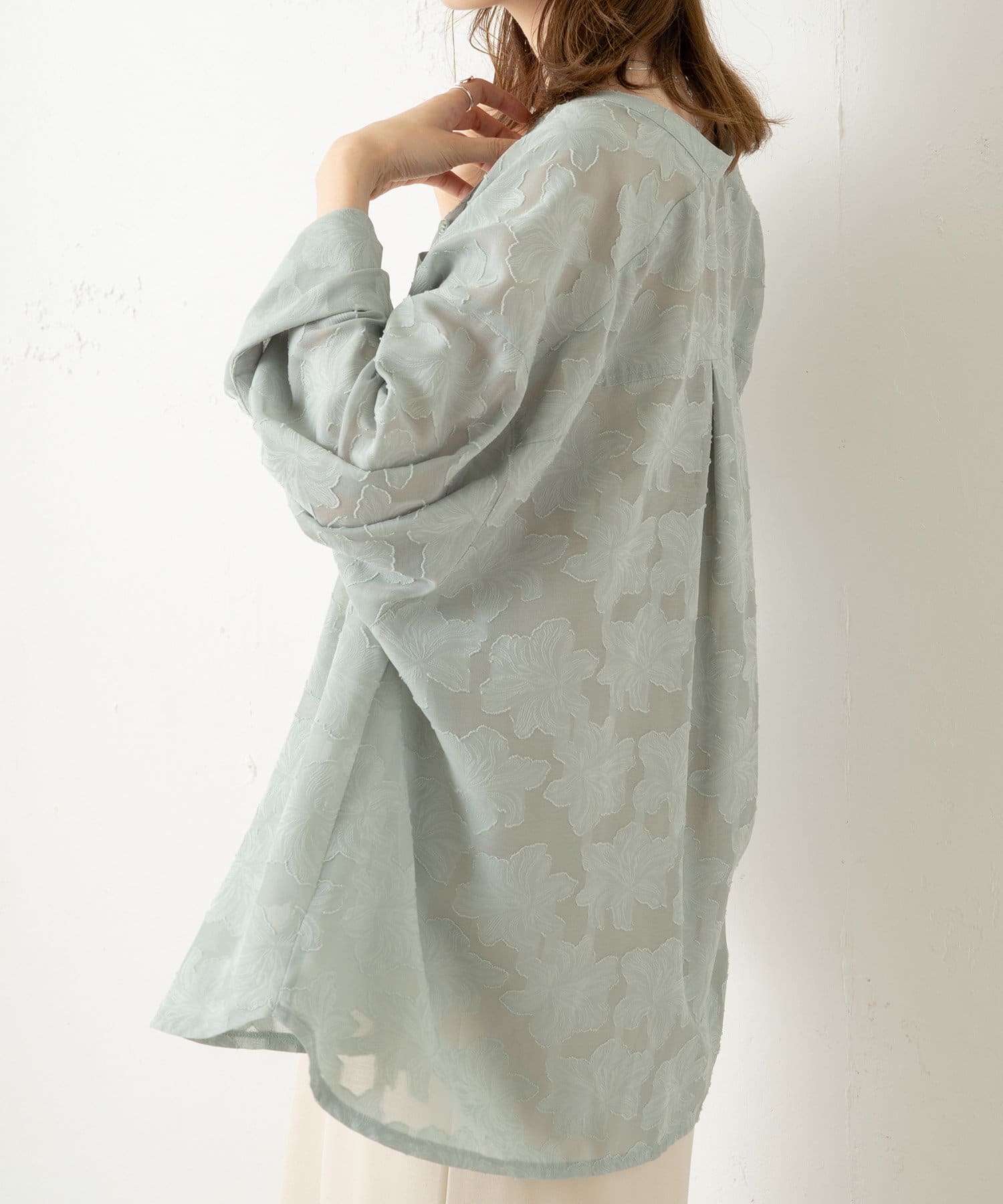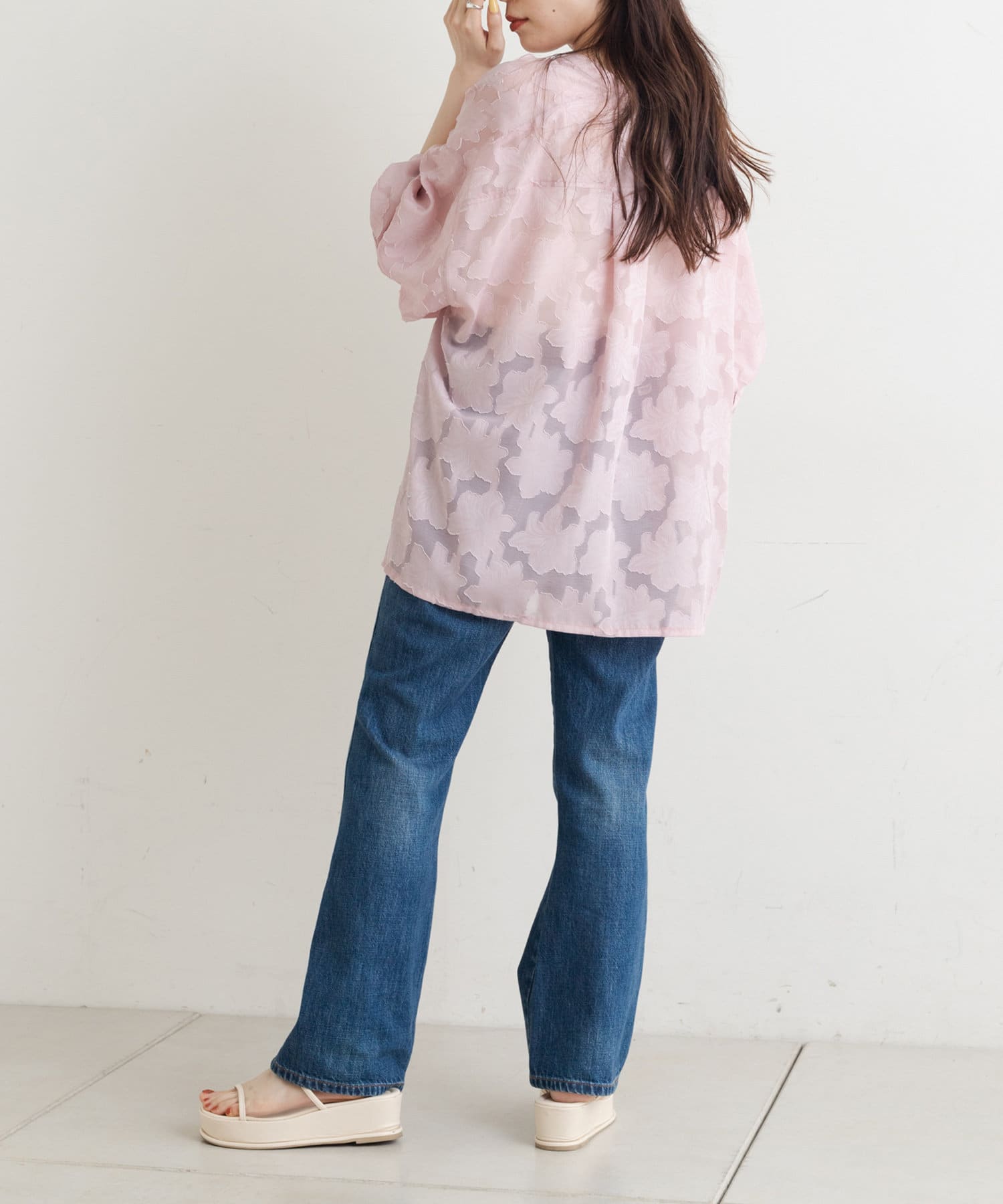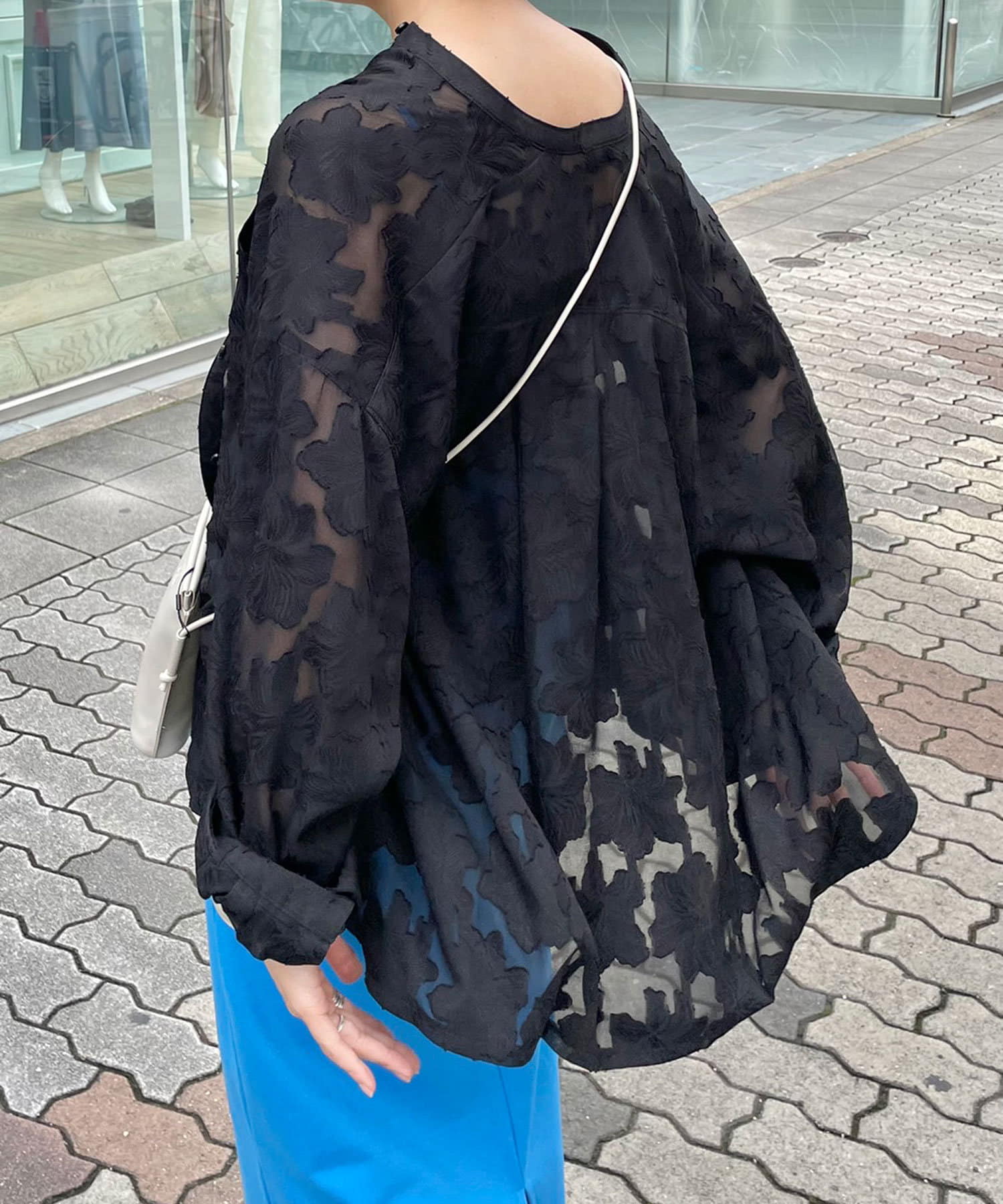 購入場所:店舗ホワイトを購入しました。オーバーサイズですが透け感があり重たく感じません。お花の模様がとても可愛いです。何にでも合わせられて万能です。襟があるシャツが苦手なのでノーカラーなのも良いです。これからの季節日除けや冷房対策にも重宝しそうです。