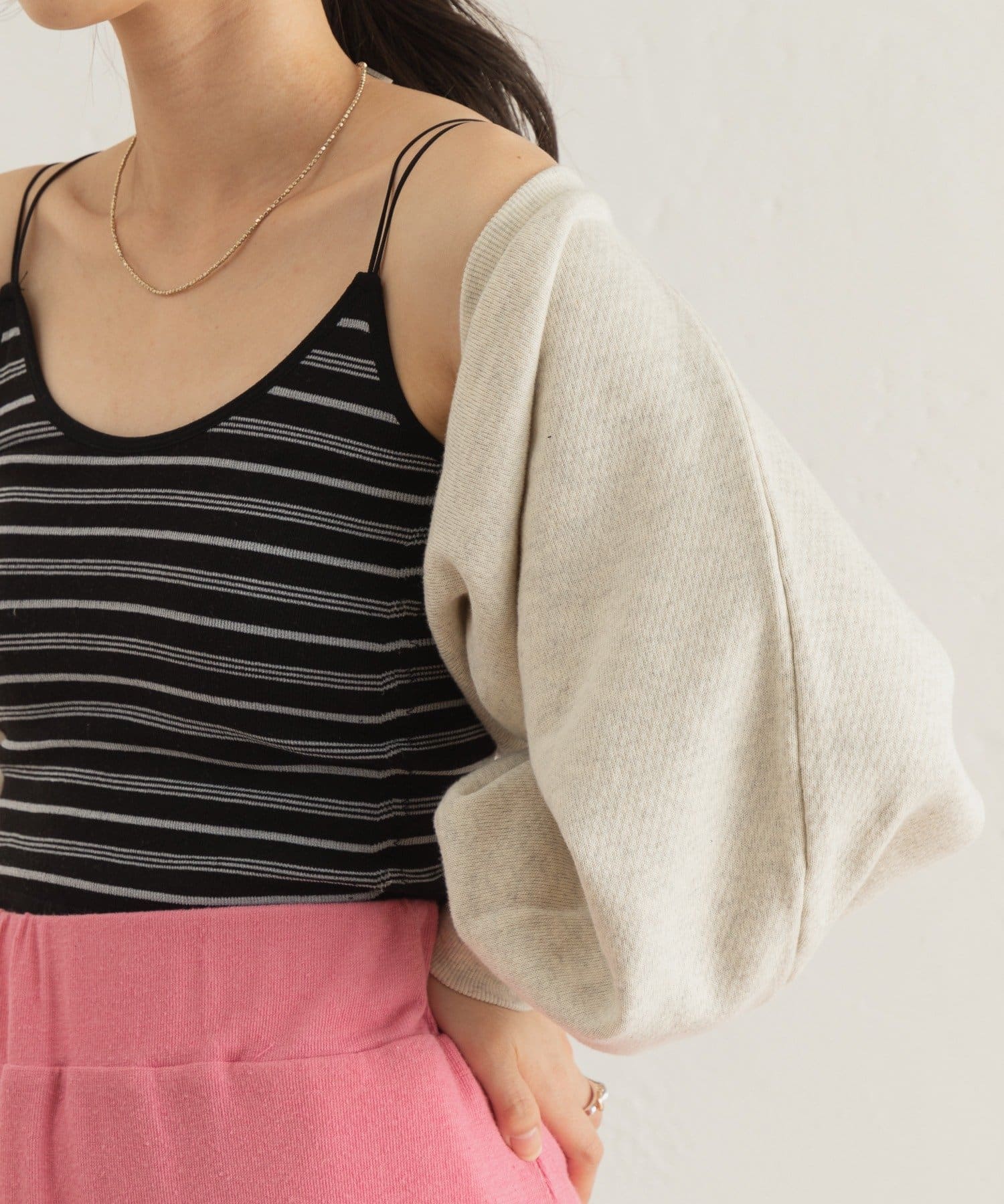 購入場所:パルクローゼットプラストラップが無いため、シースルーなどを羽織っても逆にチラ見した時に可愛いです♪