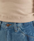 つまった襟ぐりで胸元の開きが気にならず、ストレスフリーに。