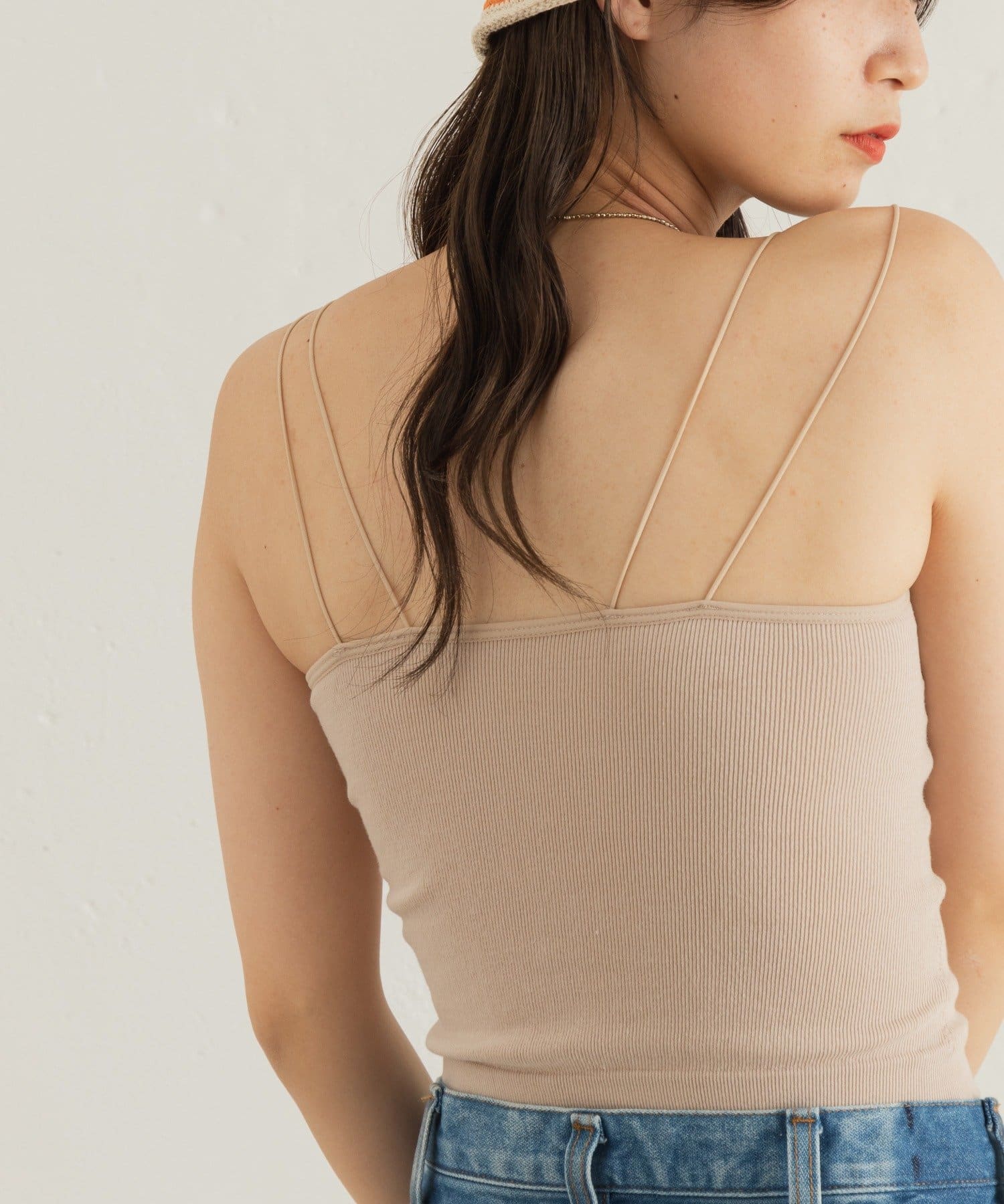 すっきりとしたストラップに裾はゴムで優しくフィットする着心地抜群の一枚。