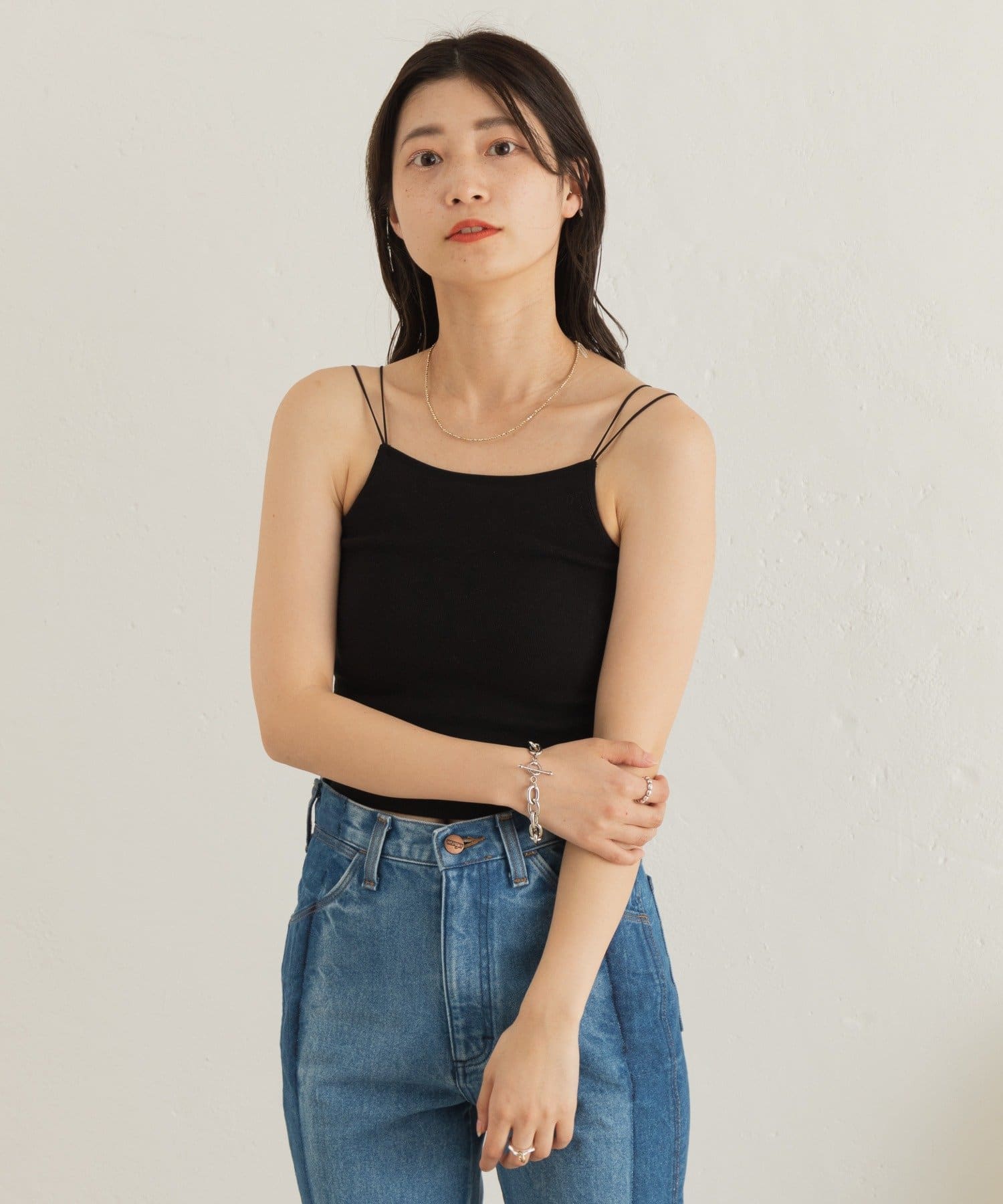 シースルーのアイテムとも相性抜群で細紐のストラップをポイントに