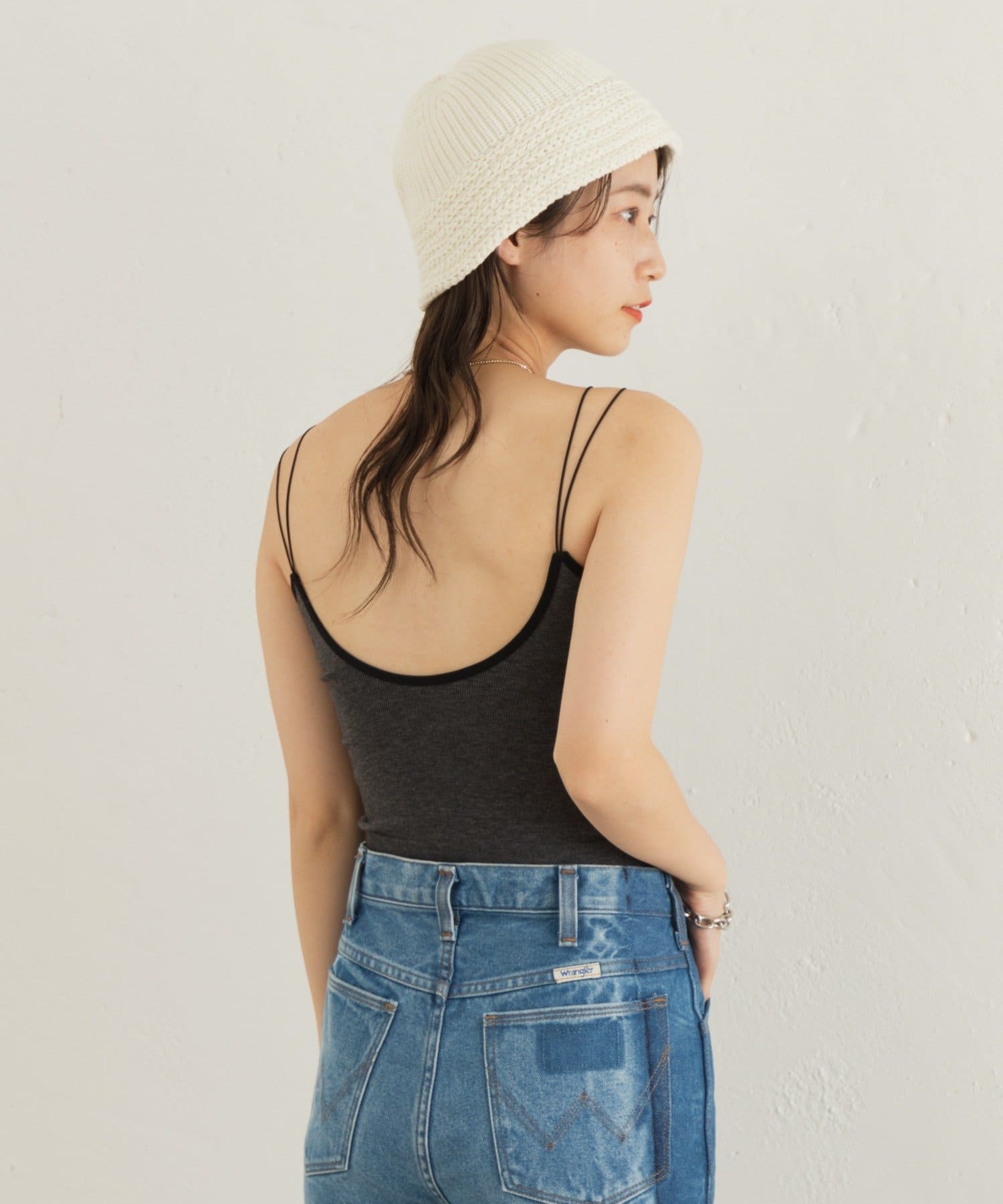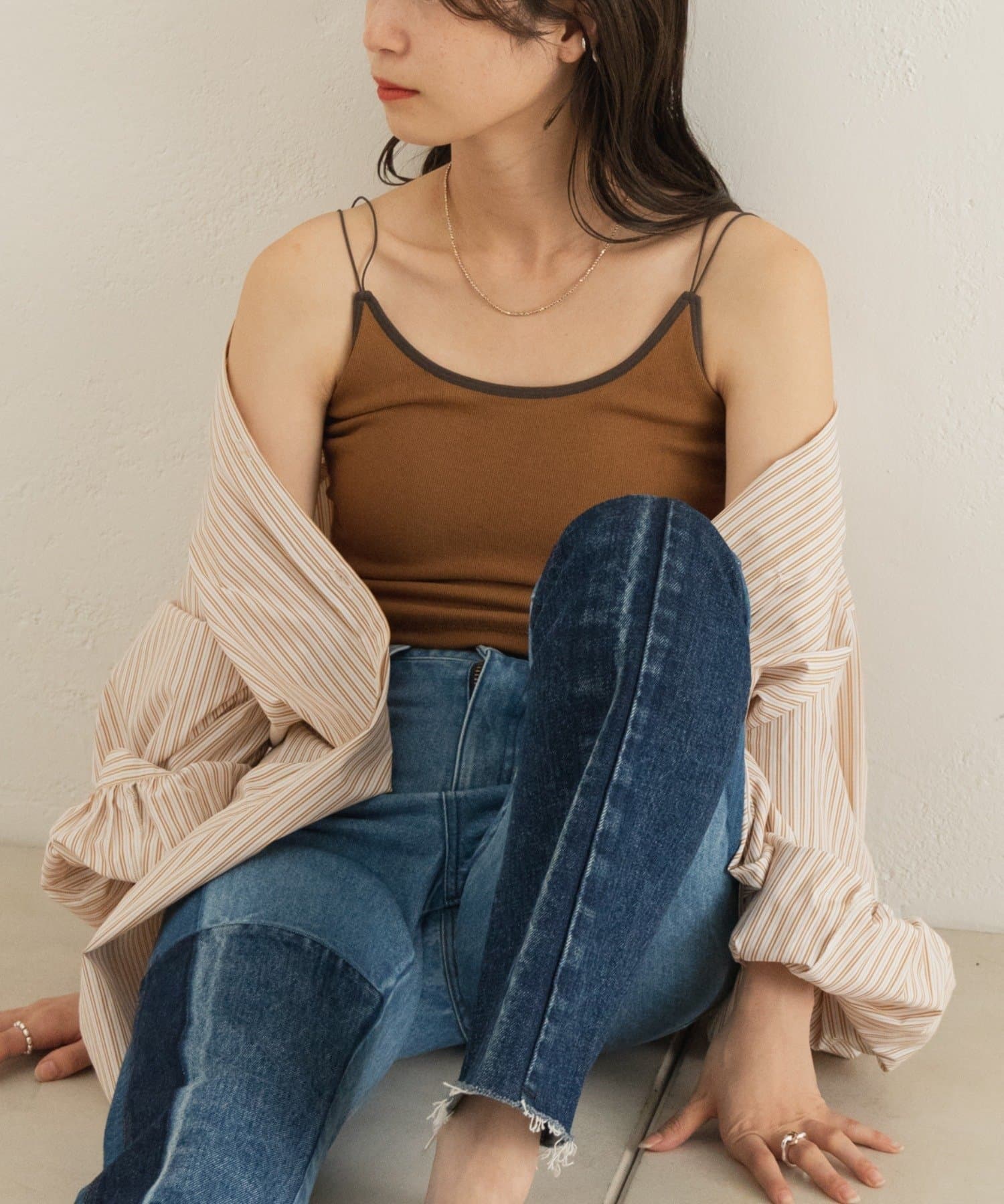 大人っぽく洗練された印象を与えるパイピングブラキャミ
