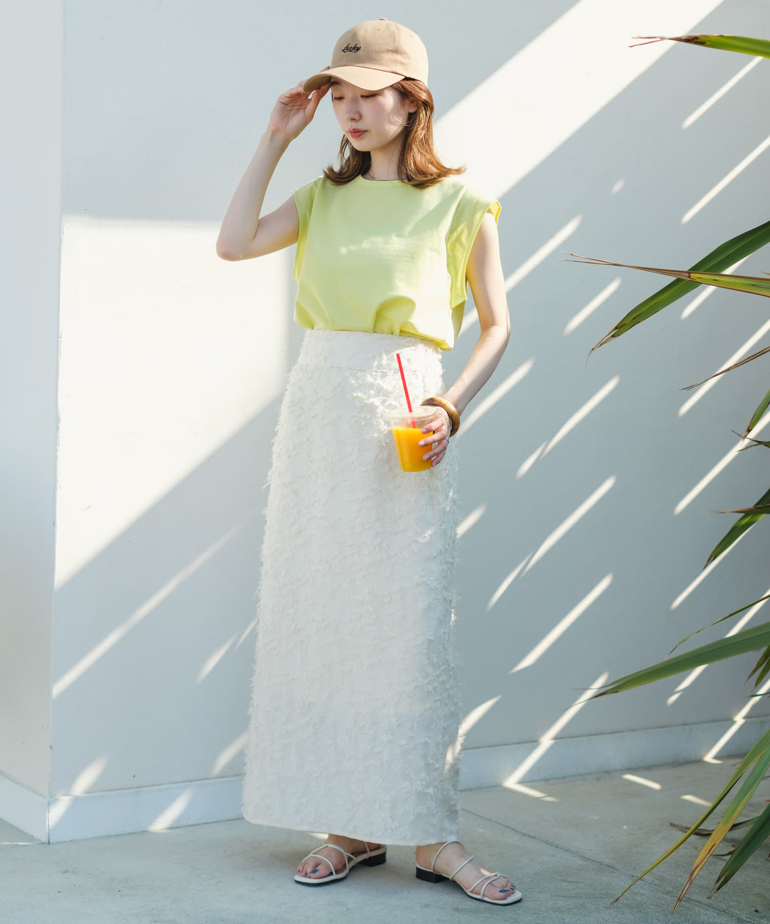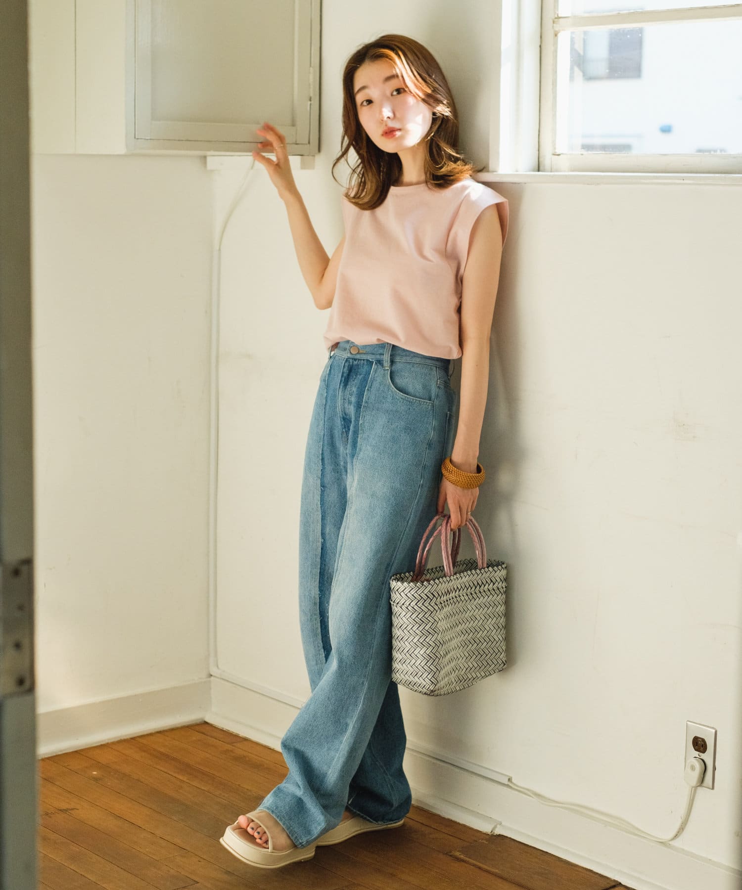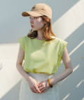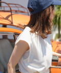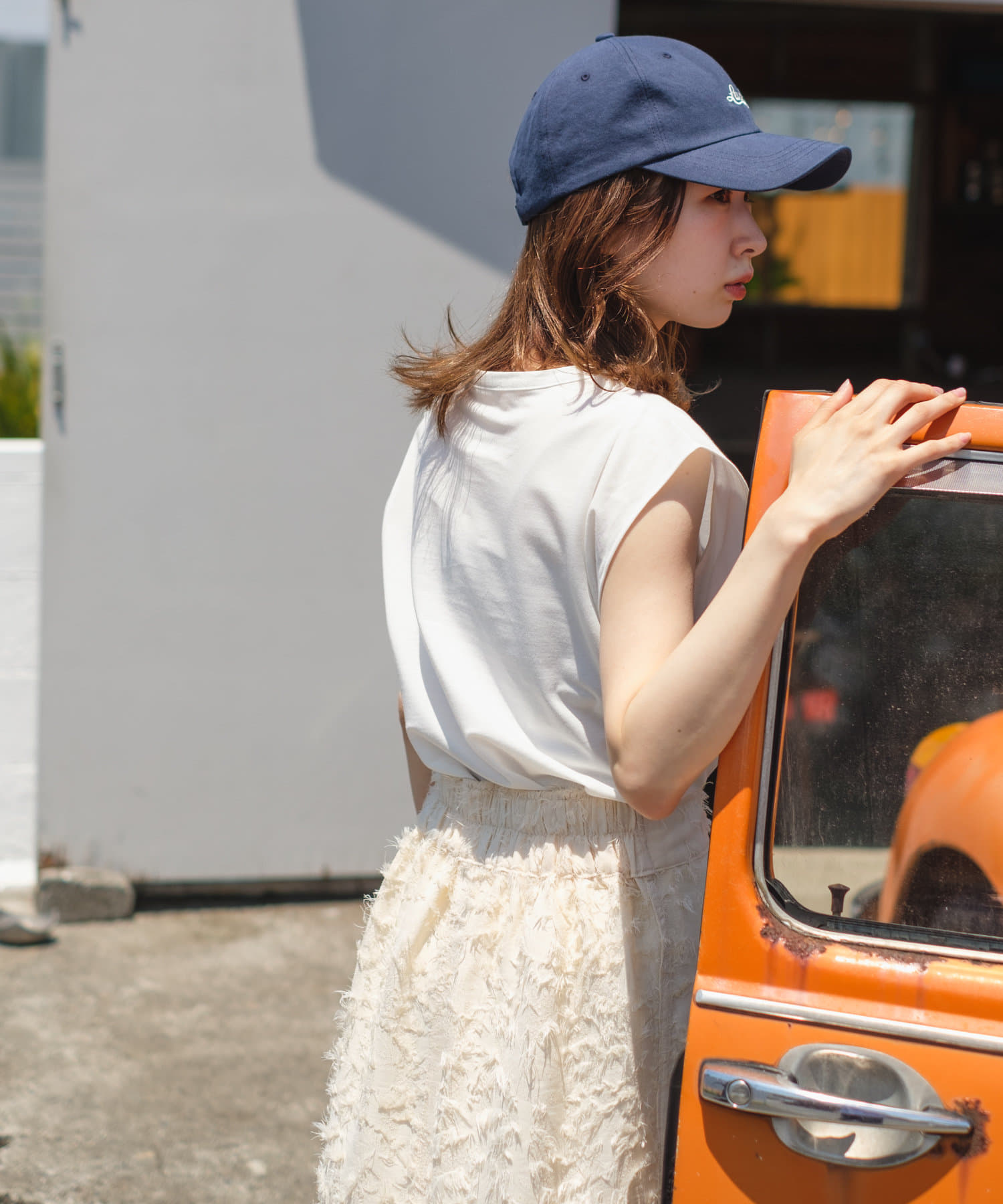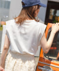 肩に少しかかるくらいの袖丈なので、ノースリーブに抵抗がある方も着て頂きやすいデザイン。