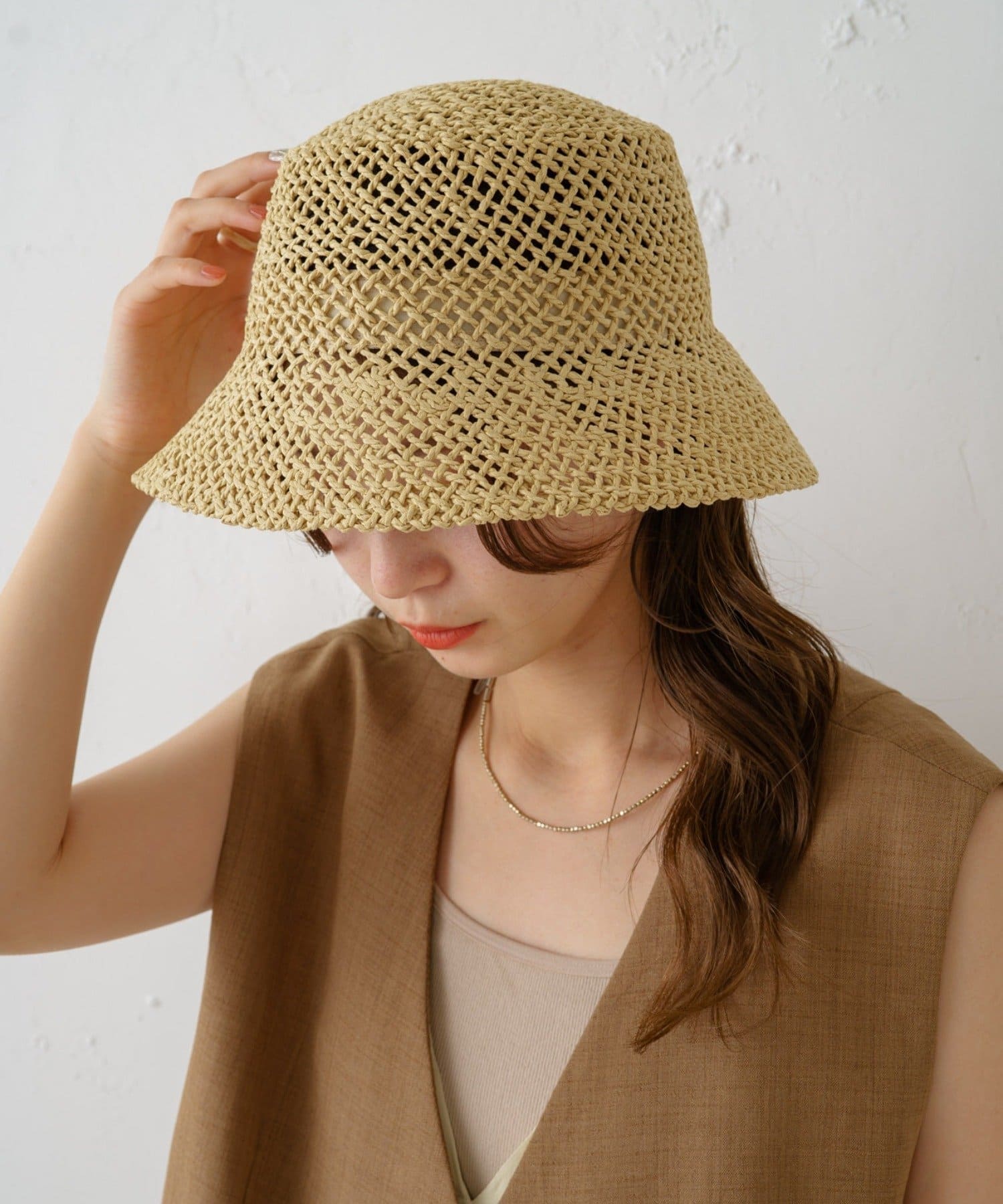 大胆な編み目がのメッシュが目を惹くハット