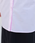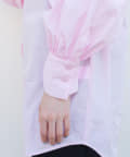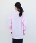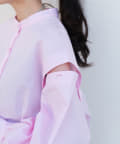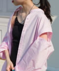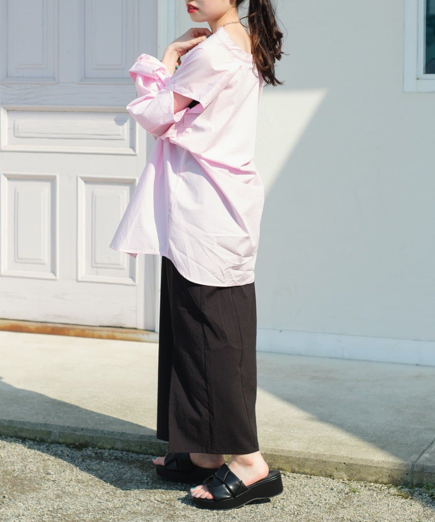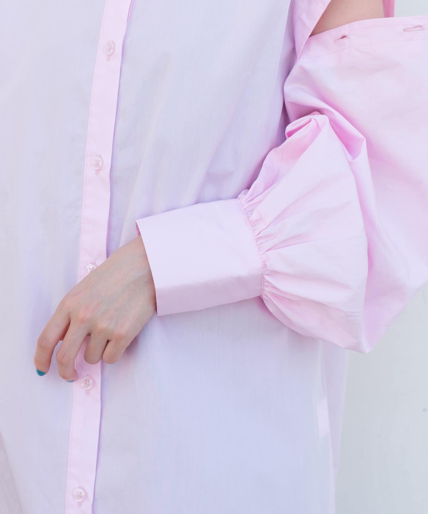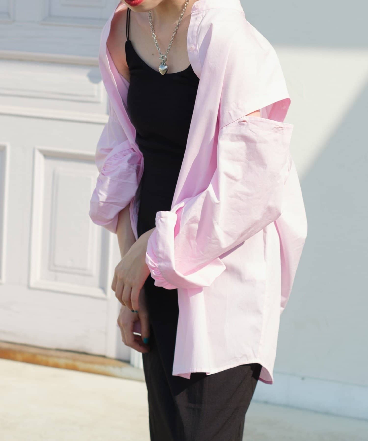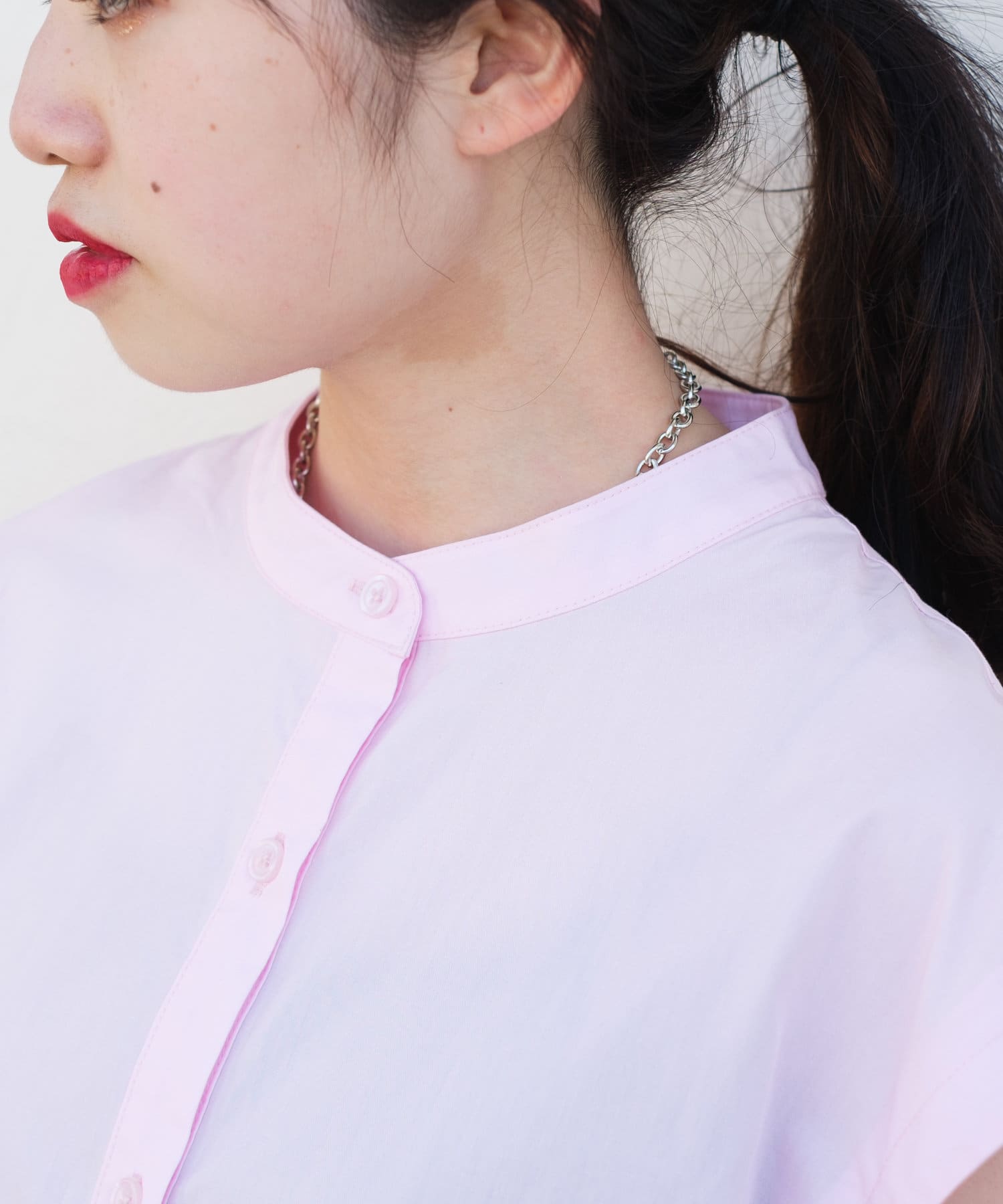全部閉めてシンプルなシャツとしても、途中まで開けてオープンショルダーとしても着用できるマルチなアイテム。