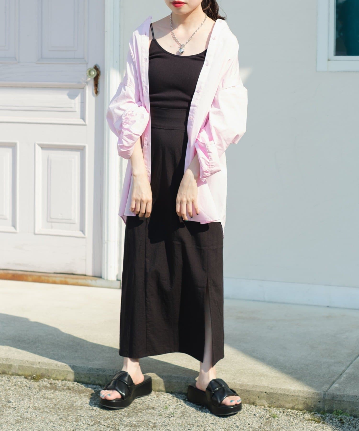 Iラインスカートやタイトなスカートに合わせて頂くと女性らしい抜け感あるコーディネートに。