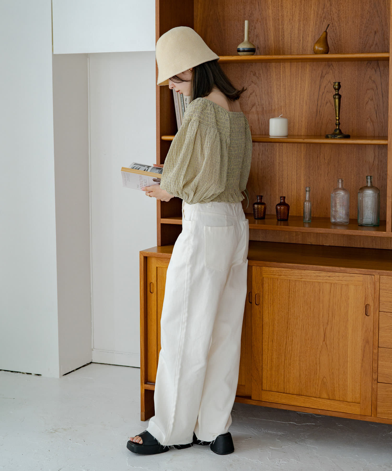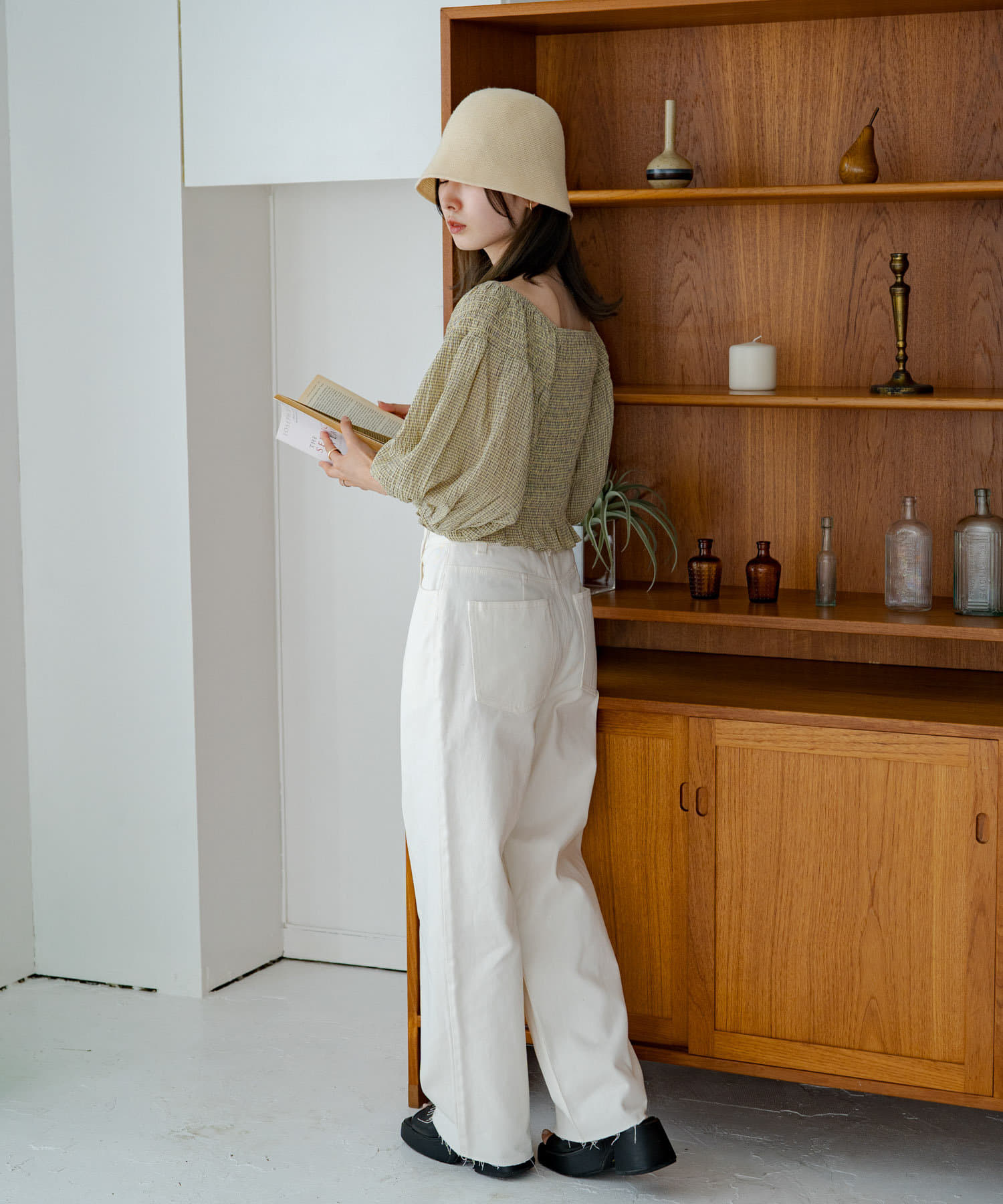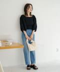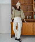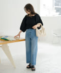 ベーシックなシルエットなのでパンツ、スカート、ワンピース、サロペットなど様々なボトムスと相性◎
