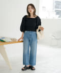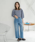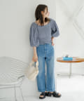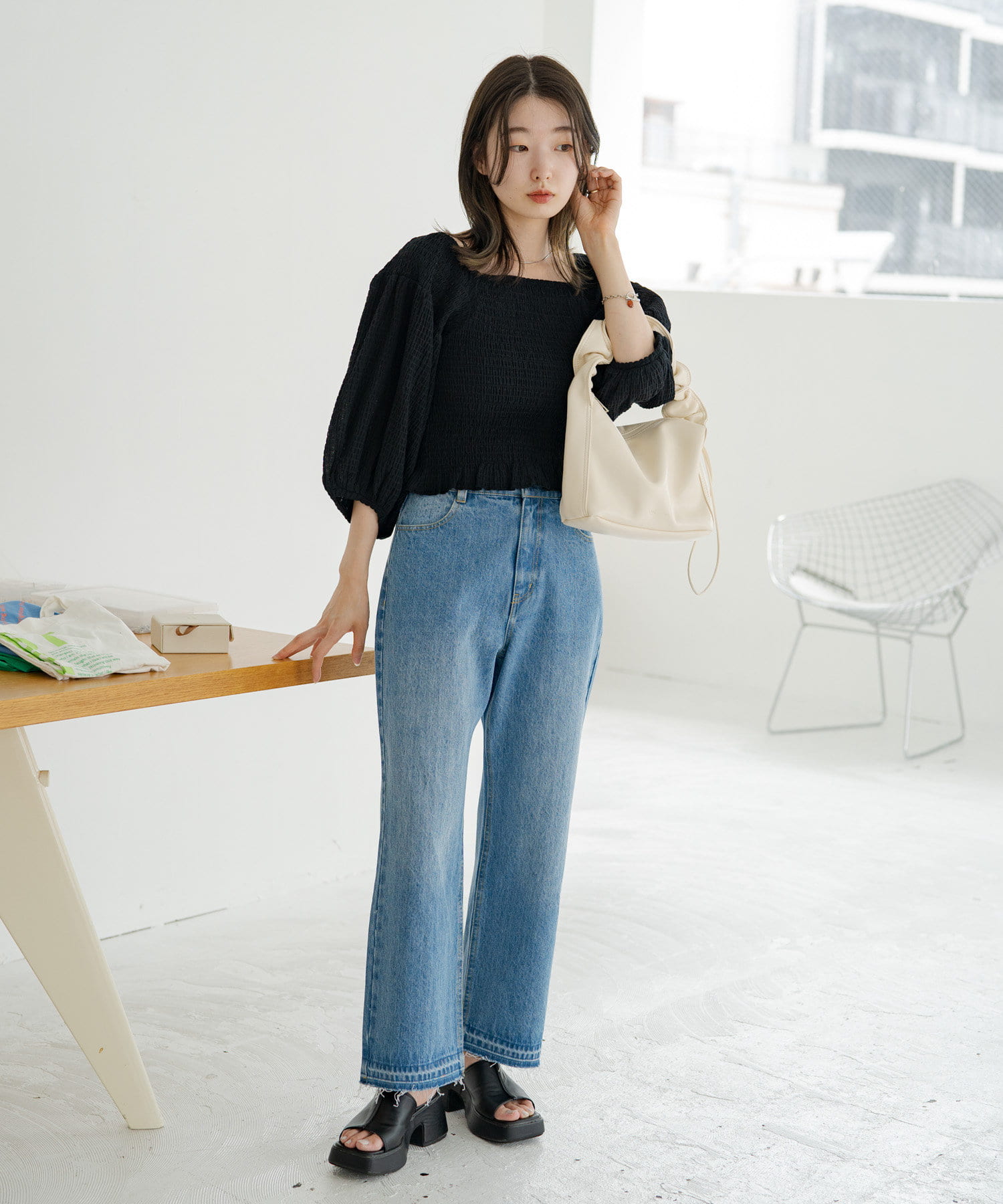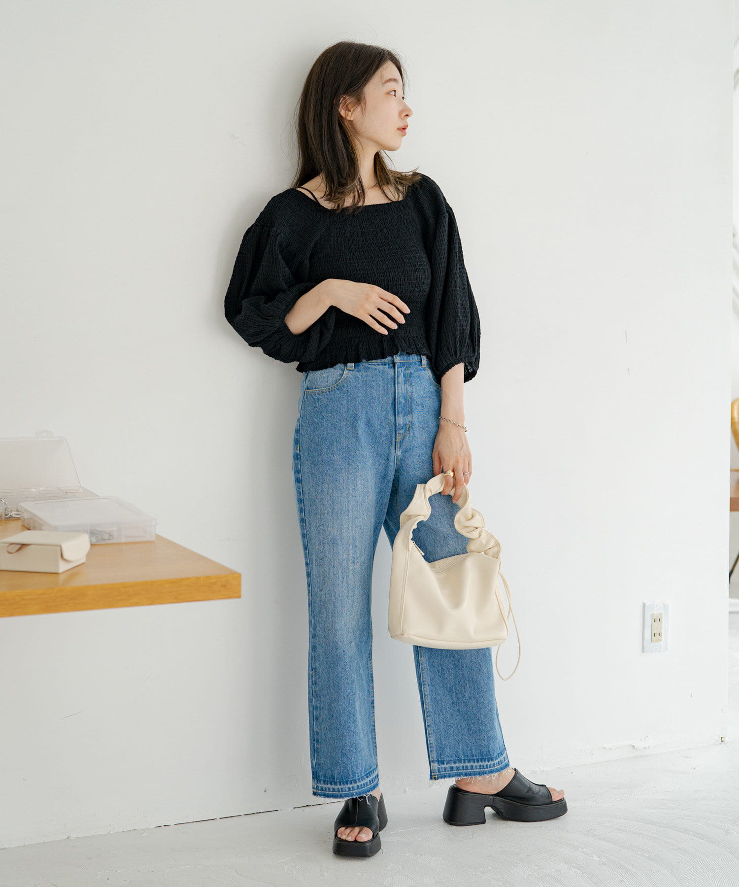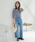 ガーリーな雰囲気のブラウスはボトムにデニムでカジュアルダウンするのがおすすめです。
