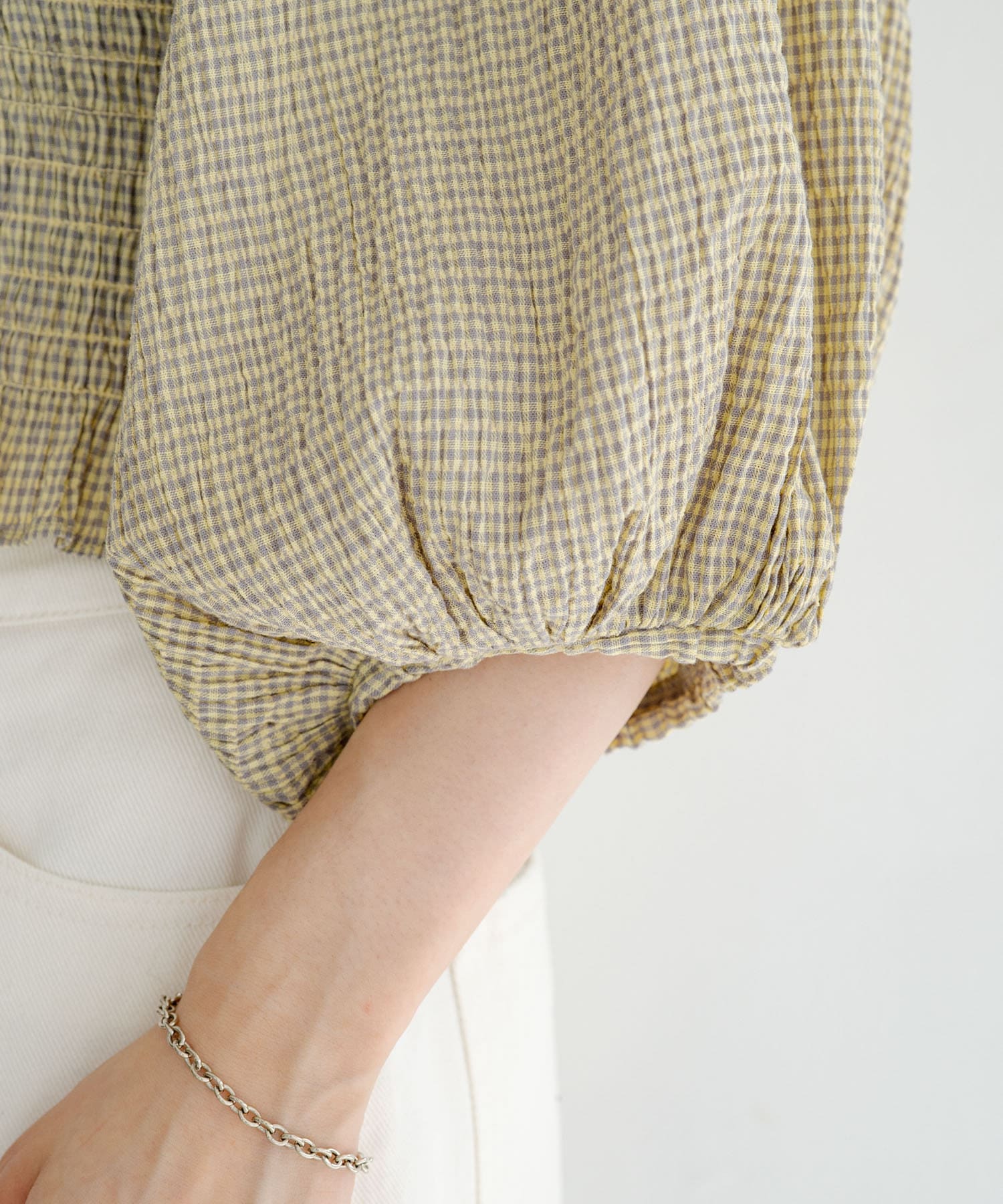 華やかなシルエットとシャーリングデザインが目を惹くブラウスが登場。