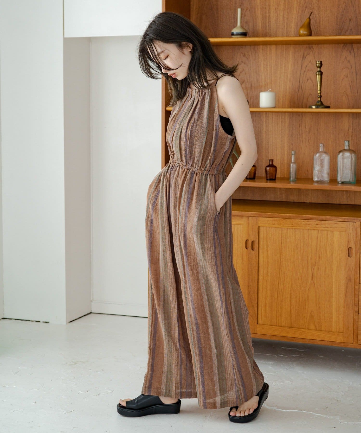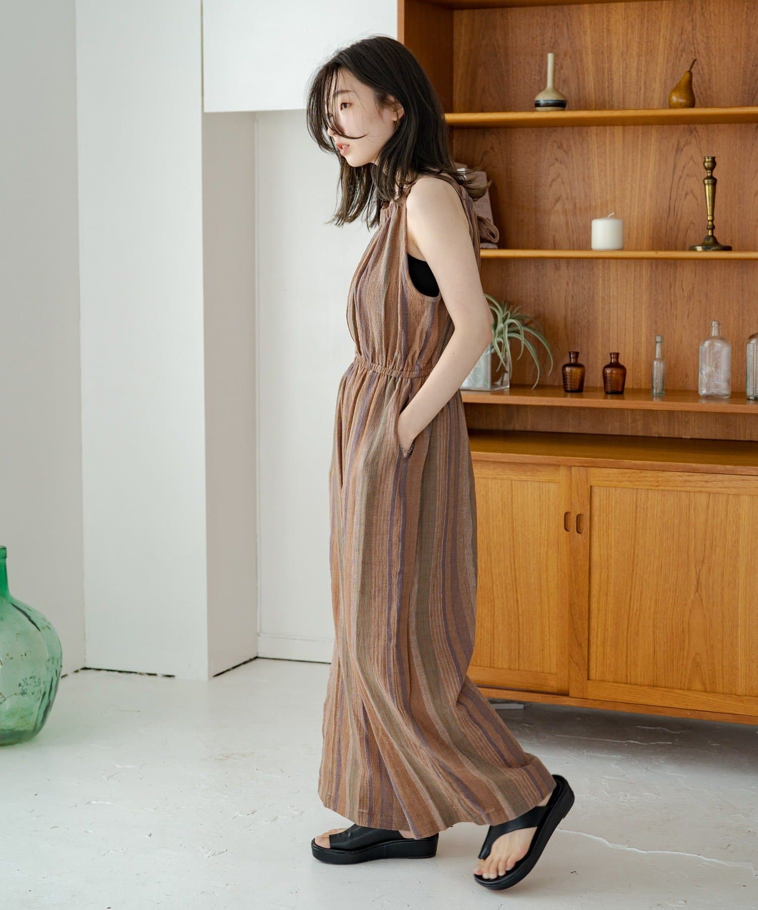 肌触りの良い薄手のインド綿で、透け感があり独特の風合いが魅力のサロペット。