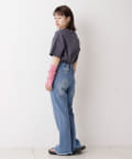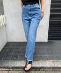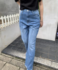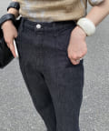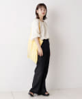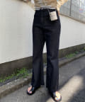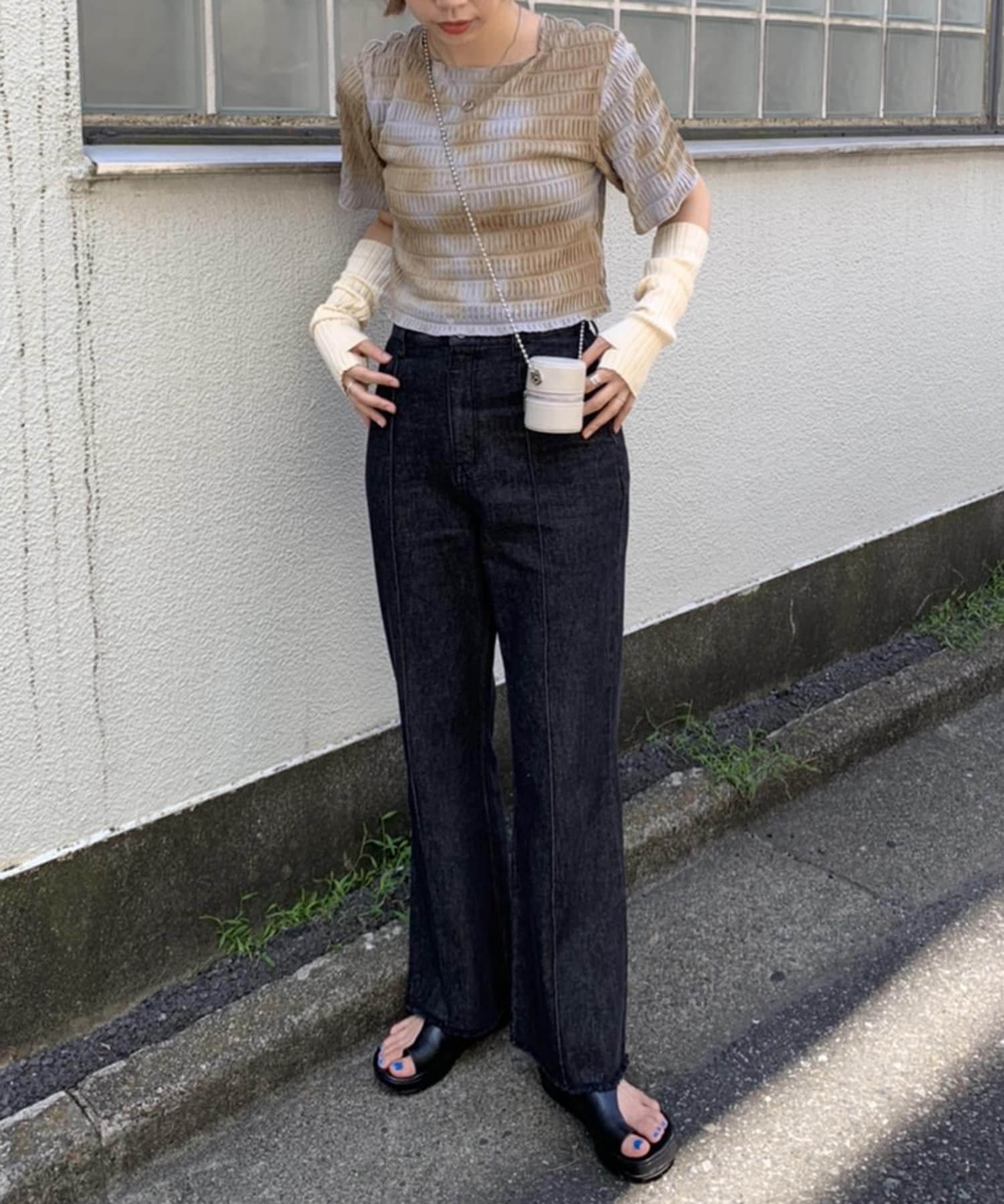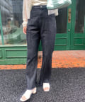 ハイウエストなのでトップスをインしてすっきりとコーディネートするのがおすすめ。