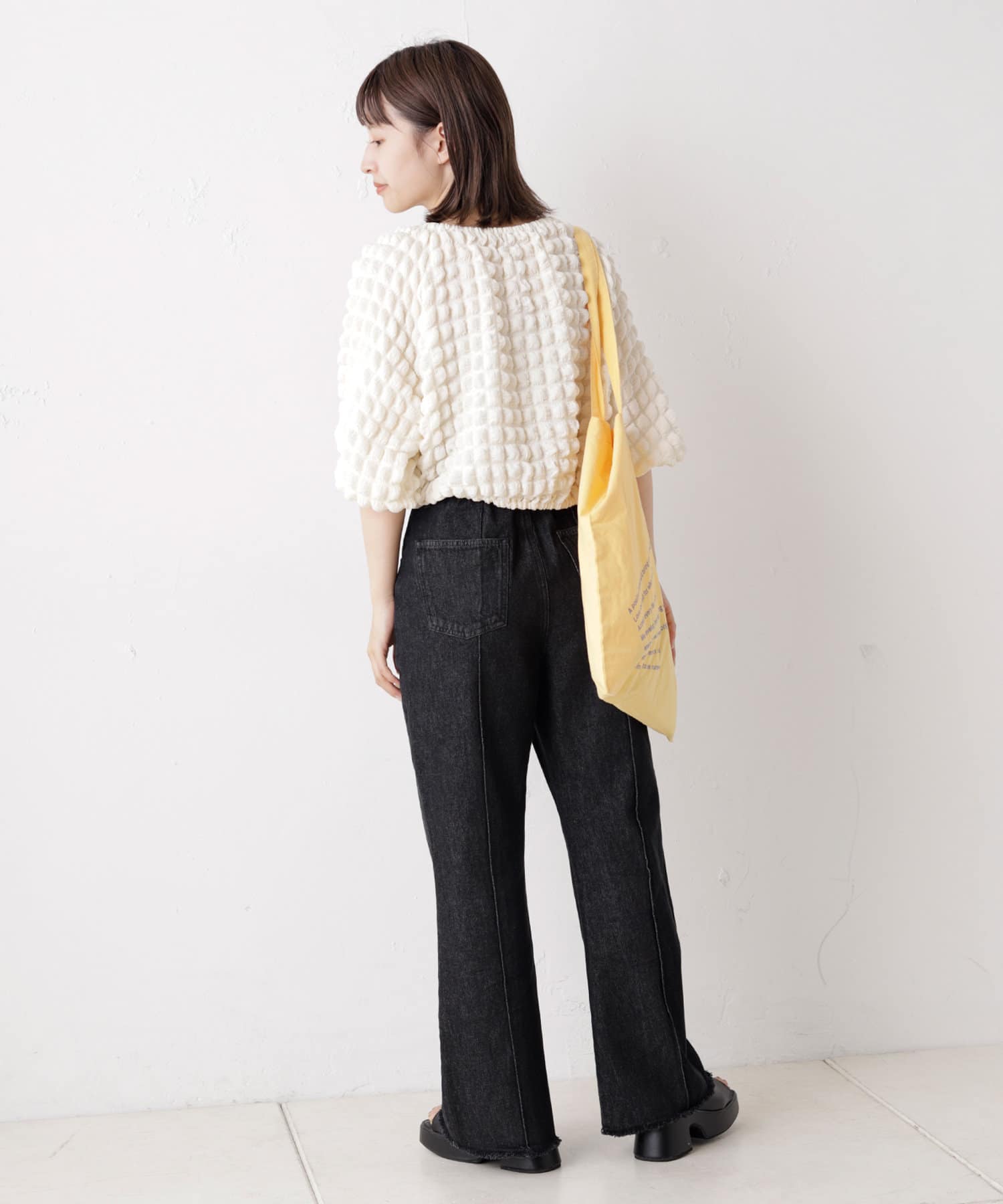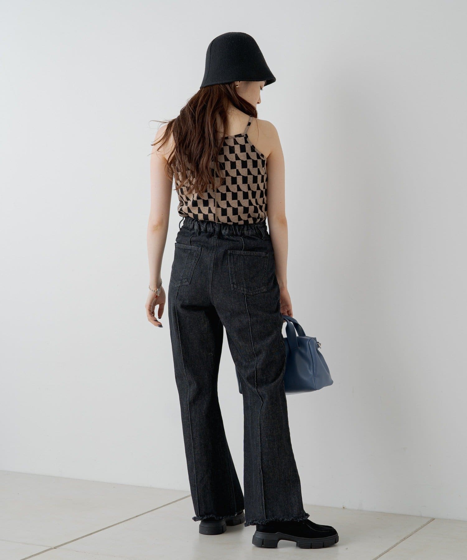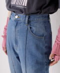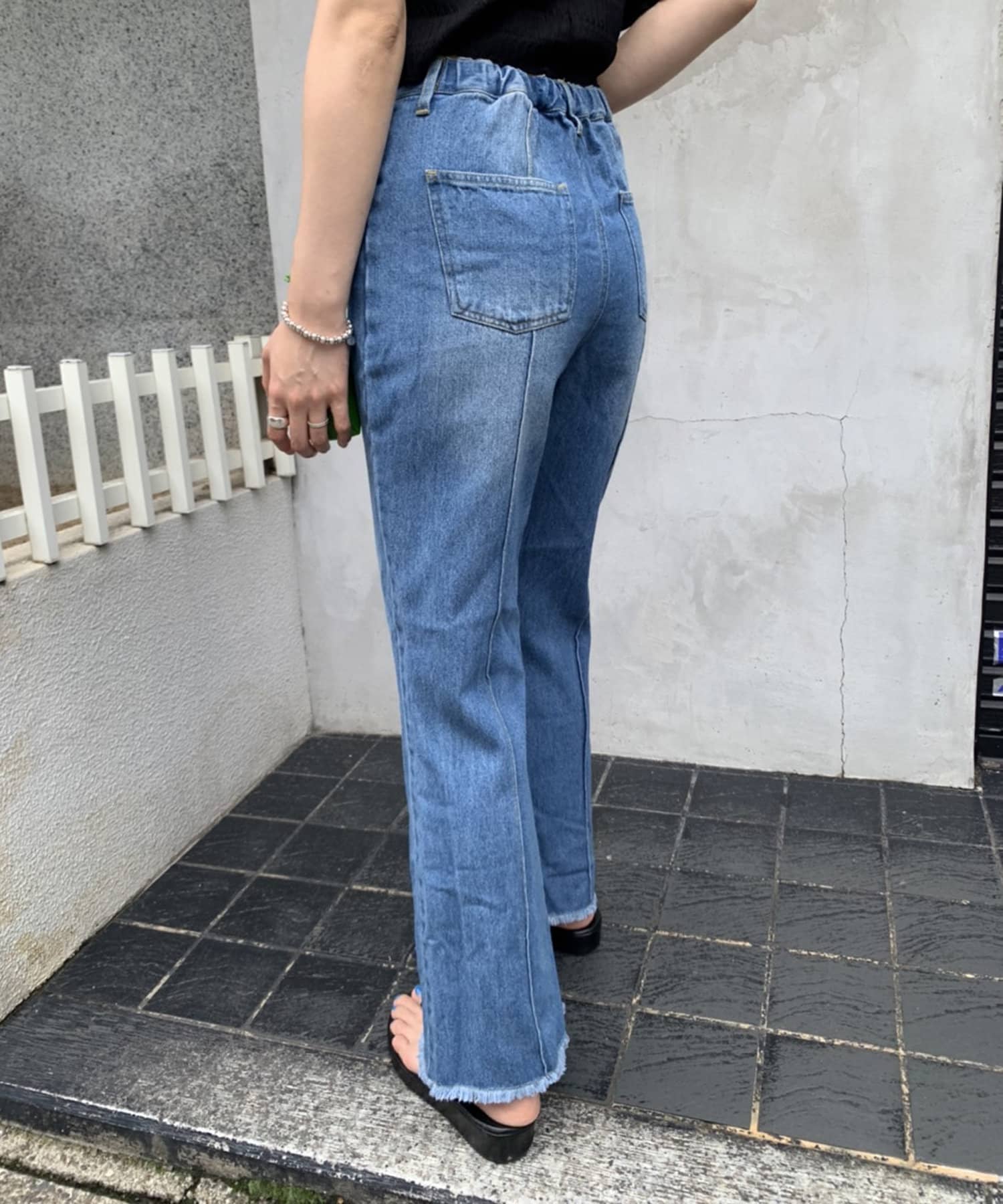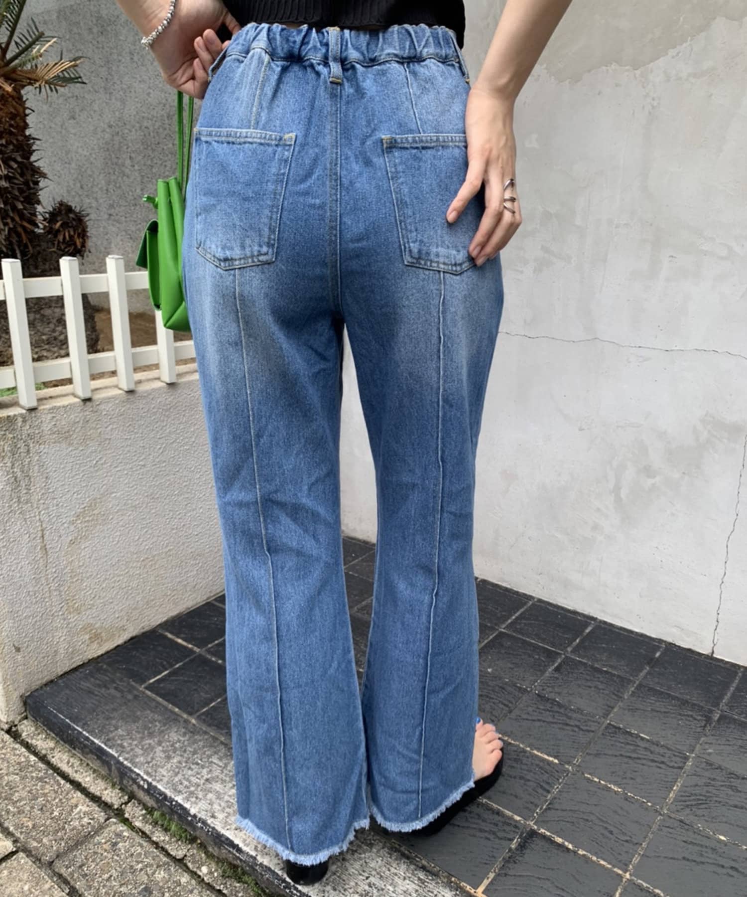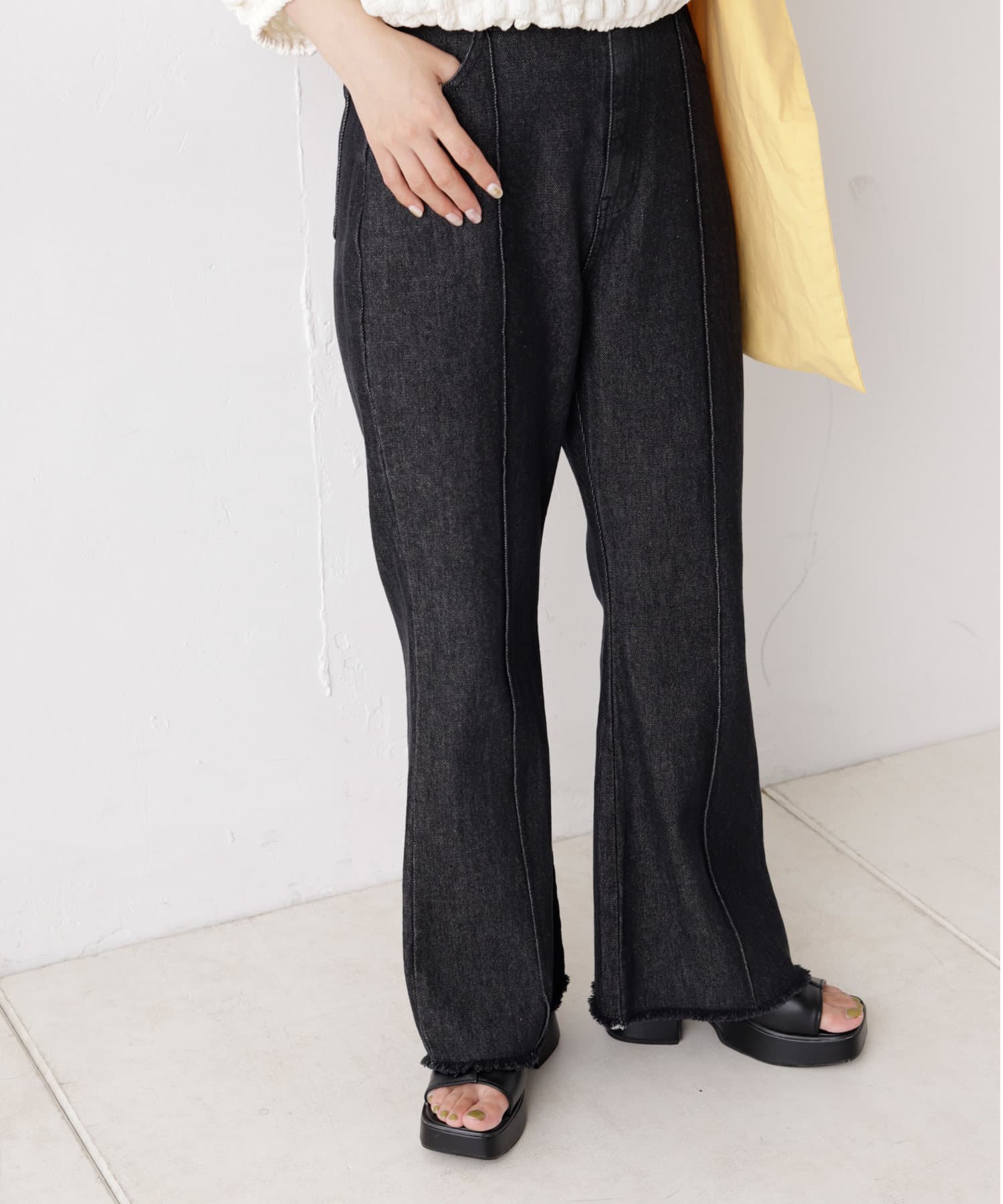 【サイズ展開あり】ピンタックフレアデニムパンツ