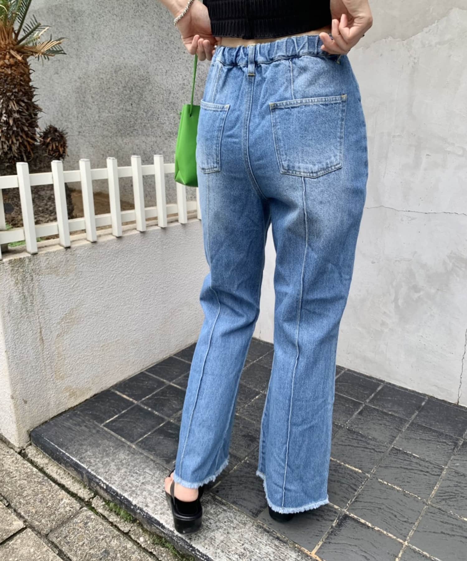 ギャザーデザインになったバックスタイルもオシャレなデニムです。