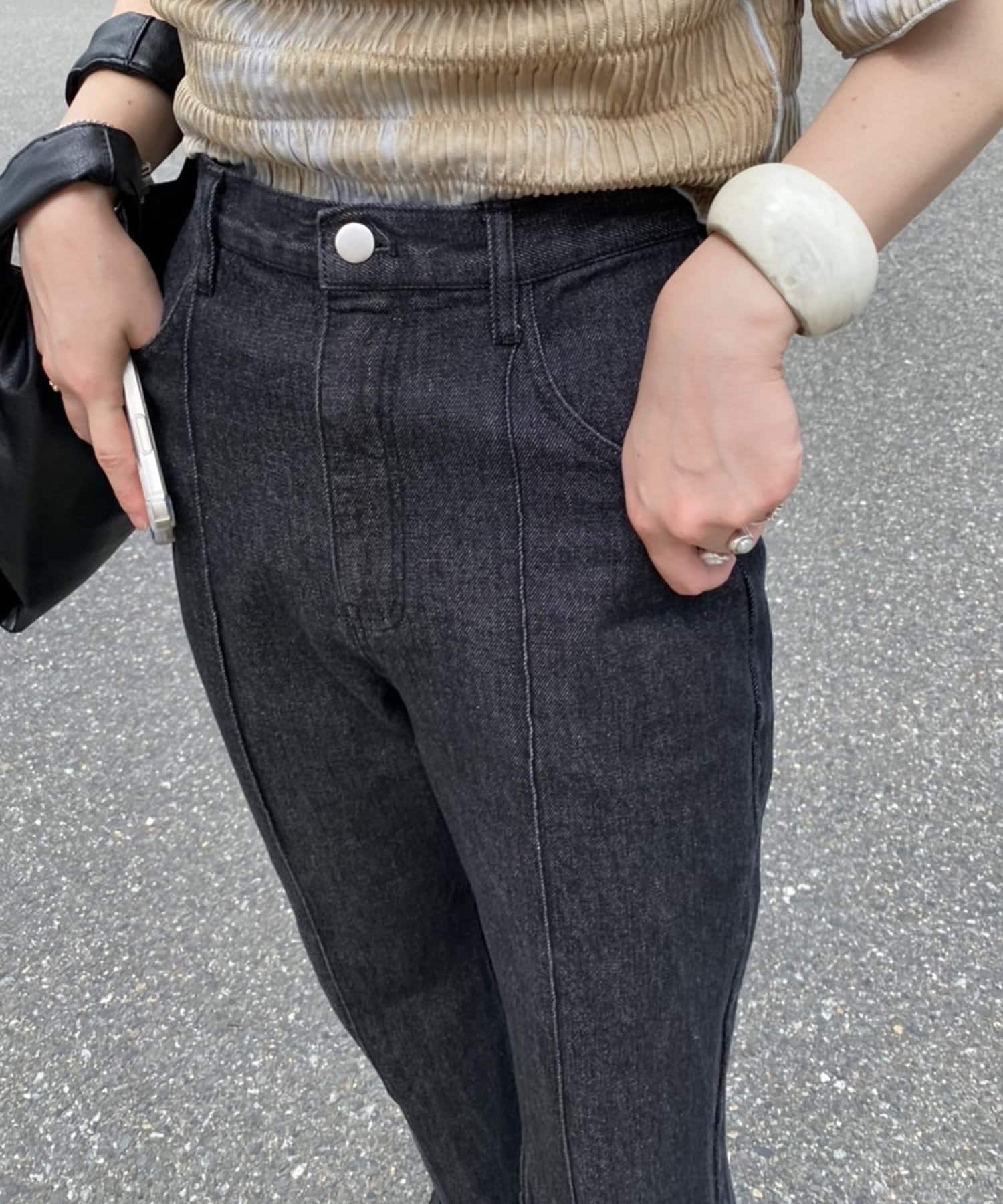 ピンタックとフレアシルエットで、美脚効果抜群の万能デニム!