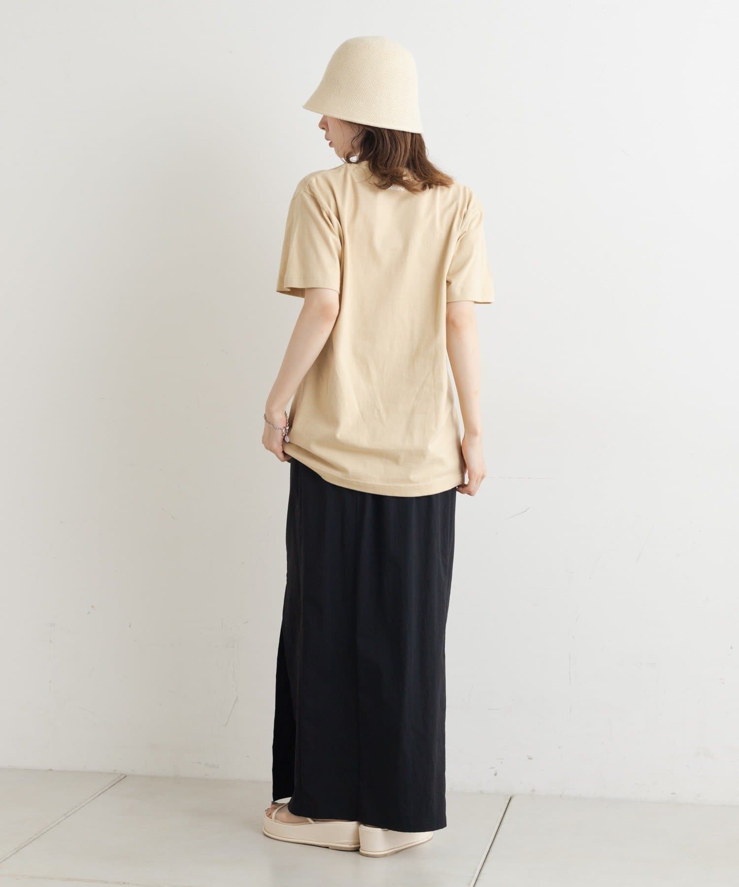 少しゆるっと着られるサイジングに、アウトスタイルしてもバランスの取りやすい、やや長めの丈感がポイント。