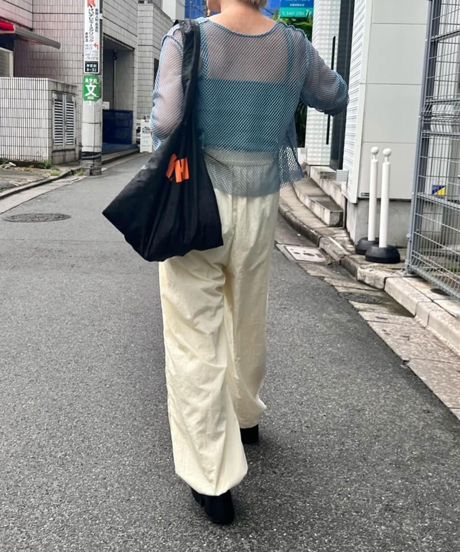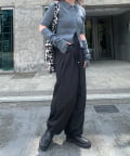 程良くボリューム感のあるシルエットのパンツなので、すっきりとしたアイテムと好相性◎