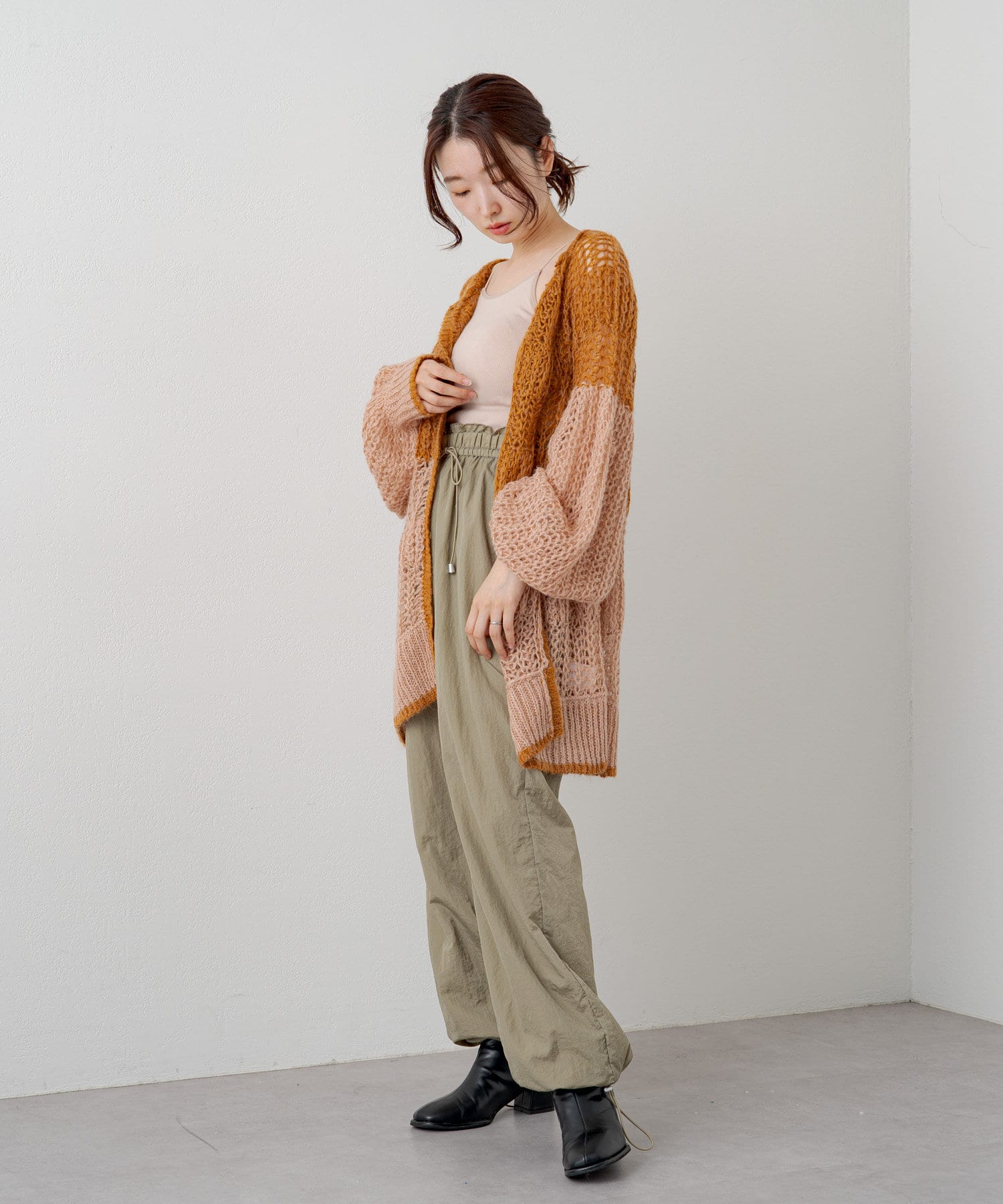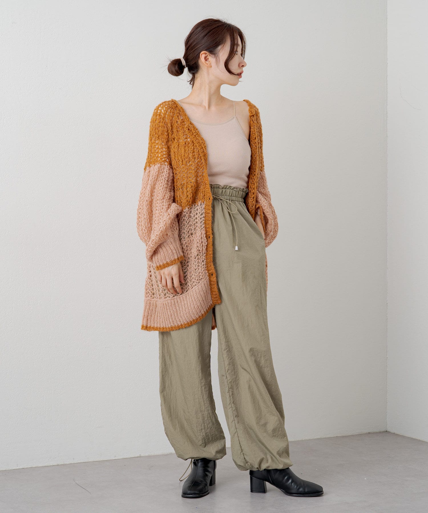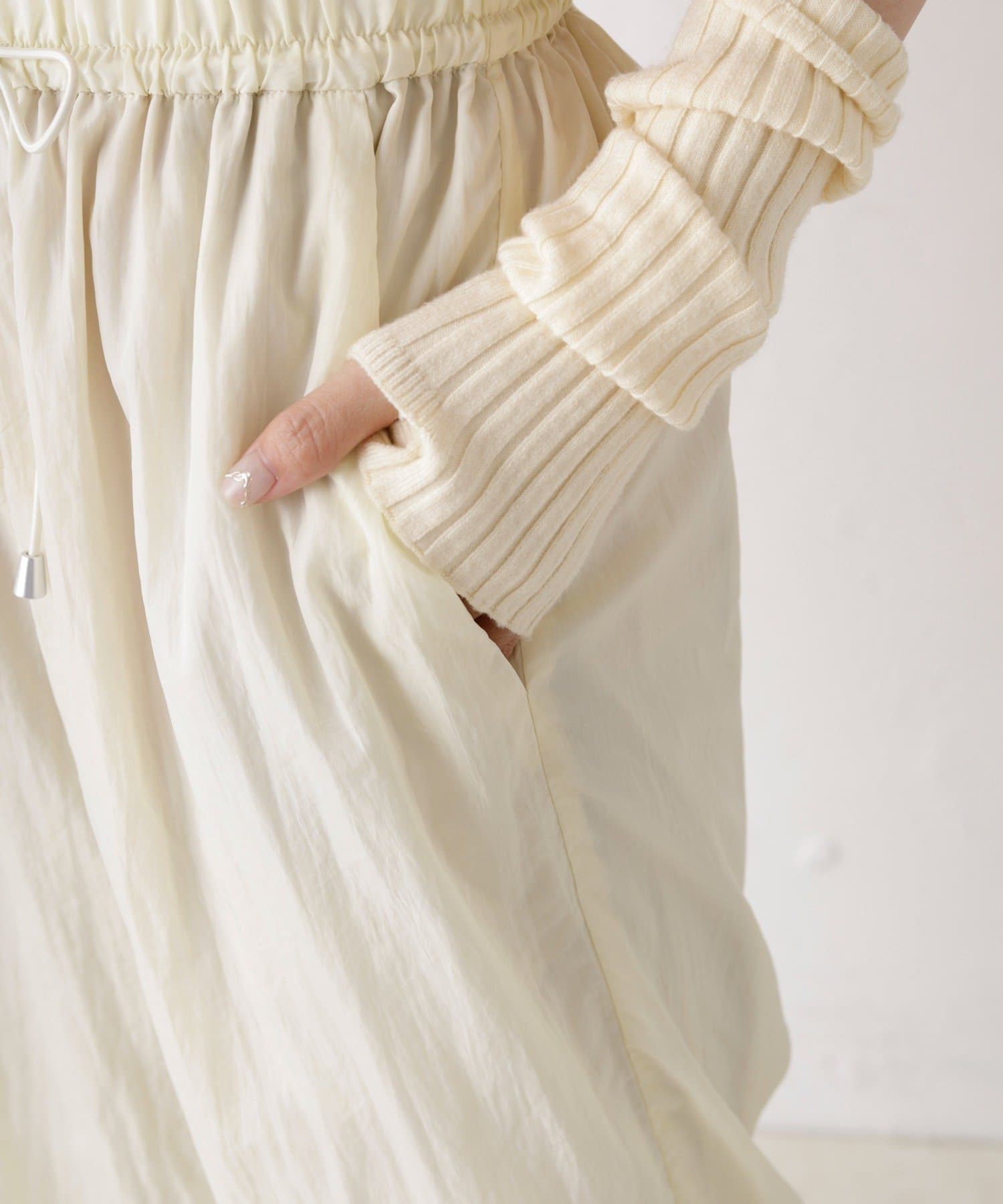 裾はドロスト入りで裾絞りのシルエットでも着用可能です。