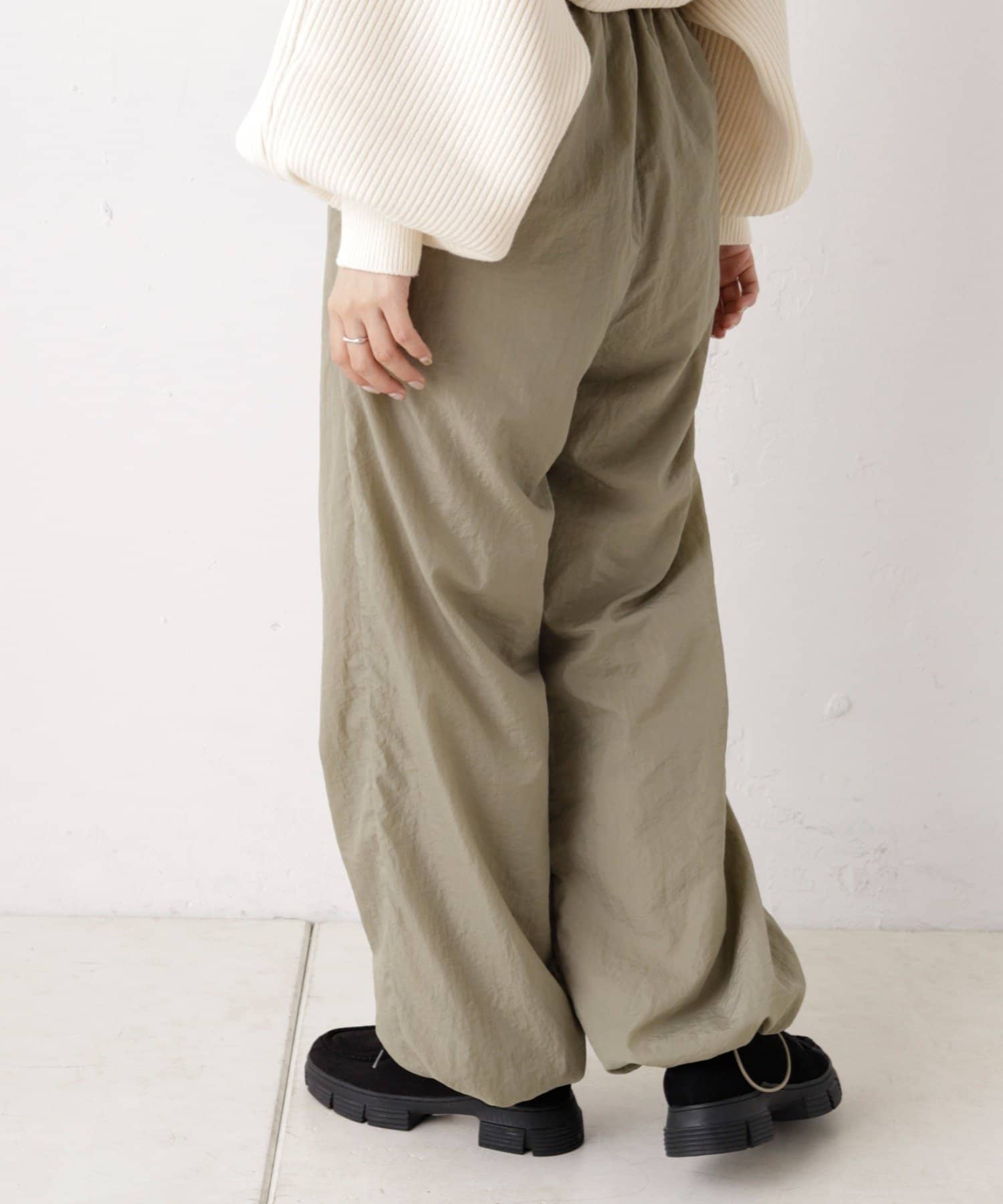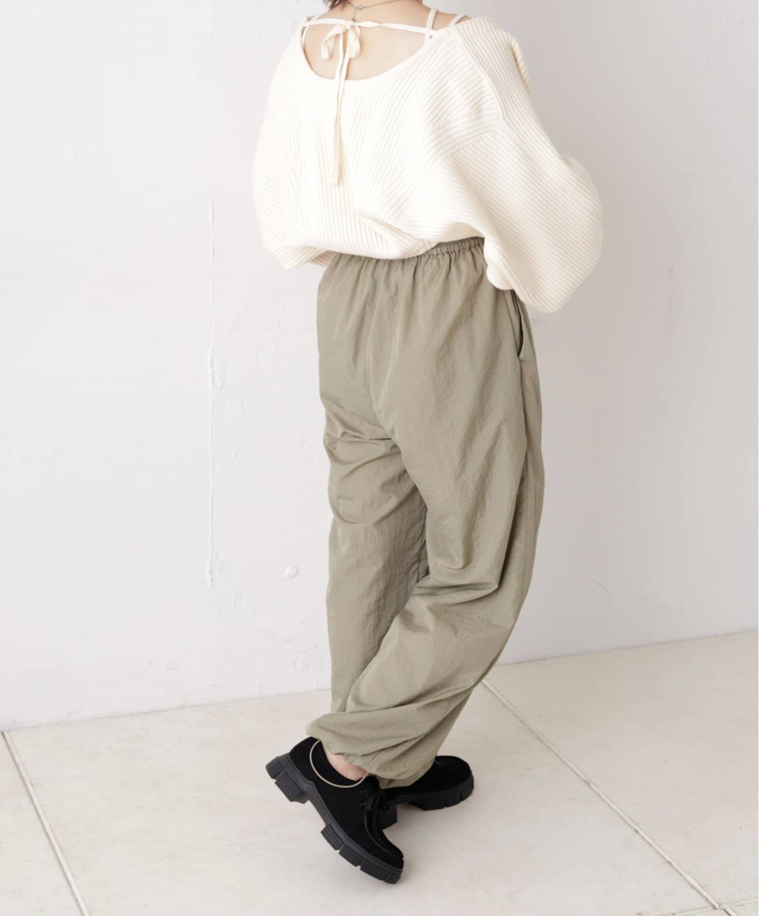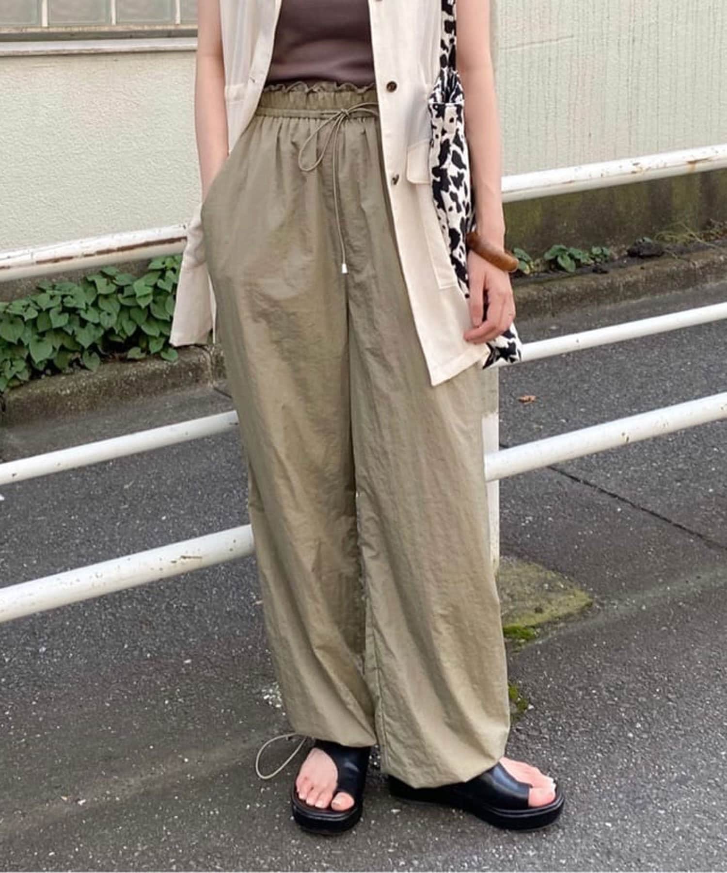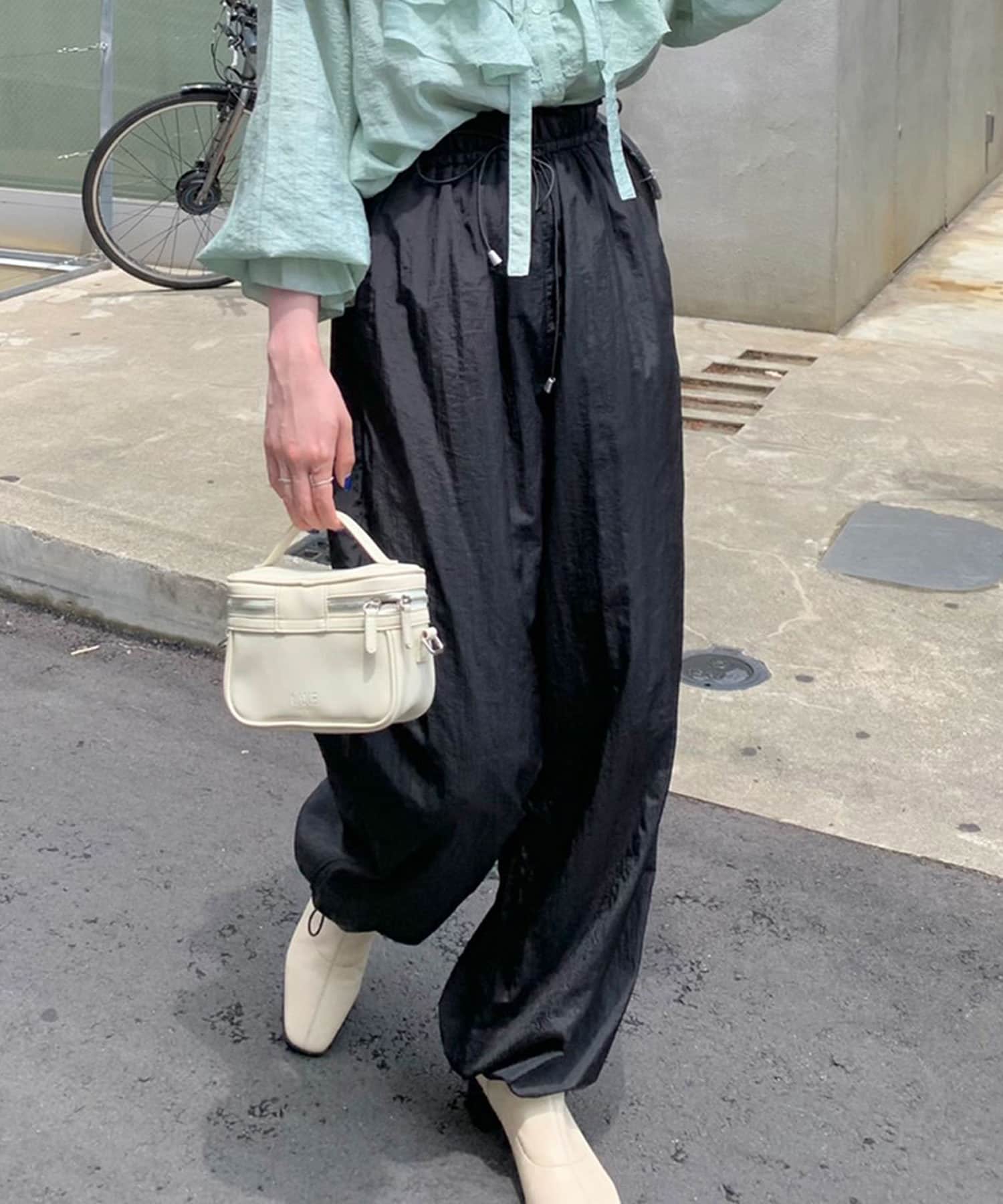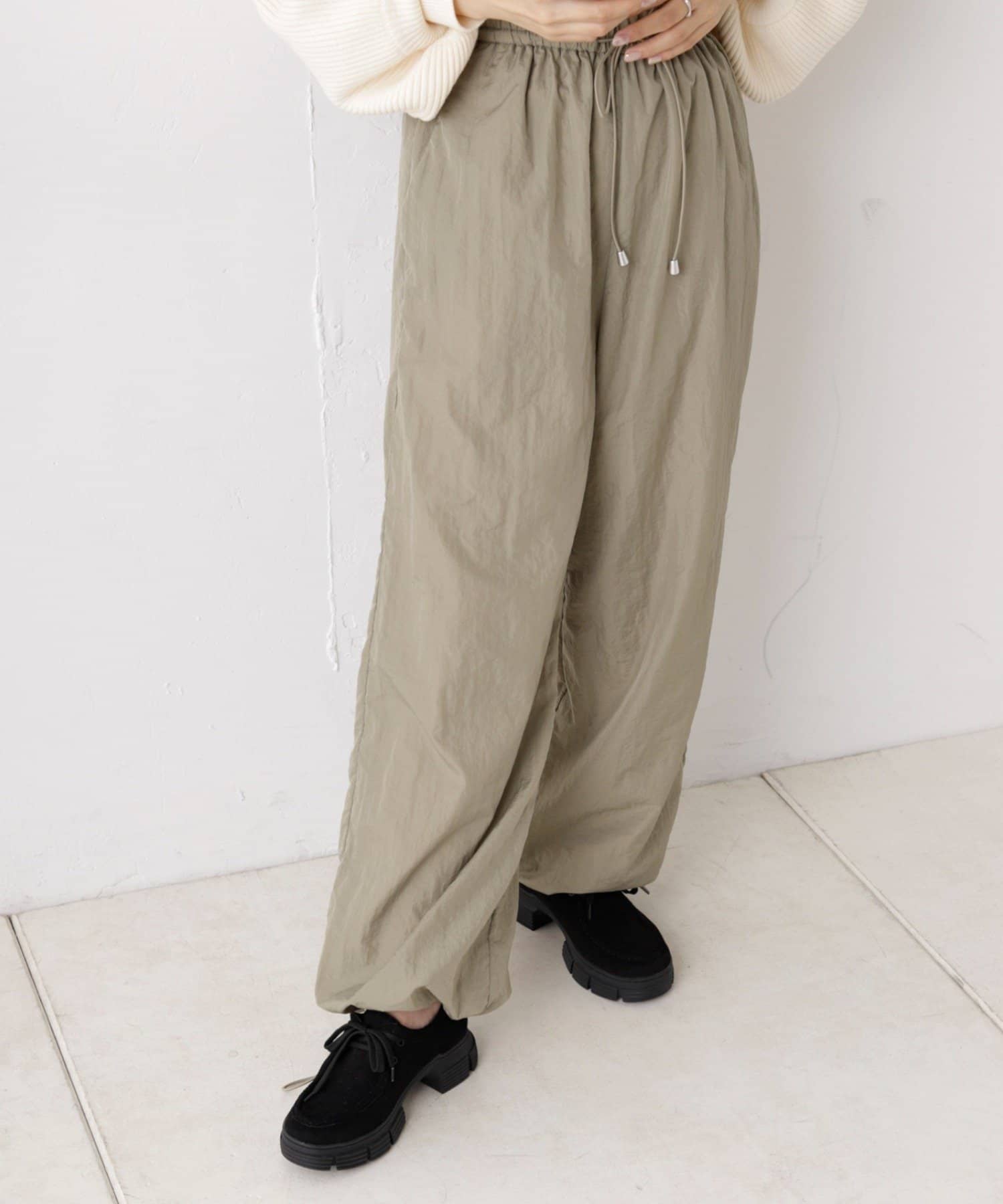 裾ドロストナイロンパンツ