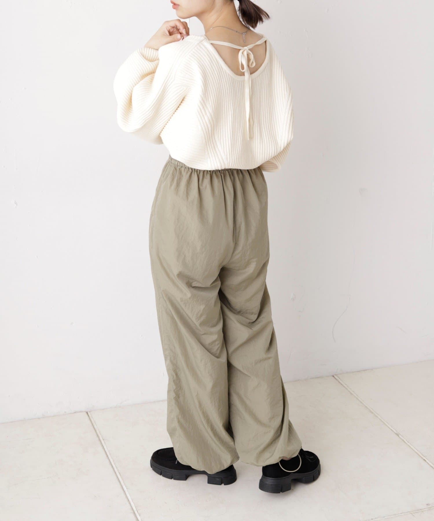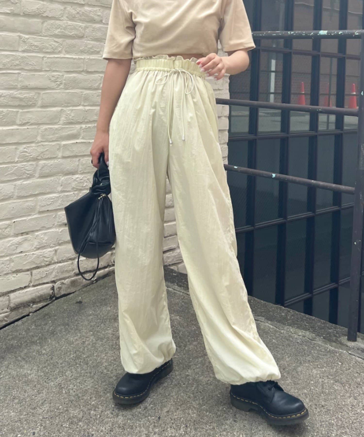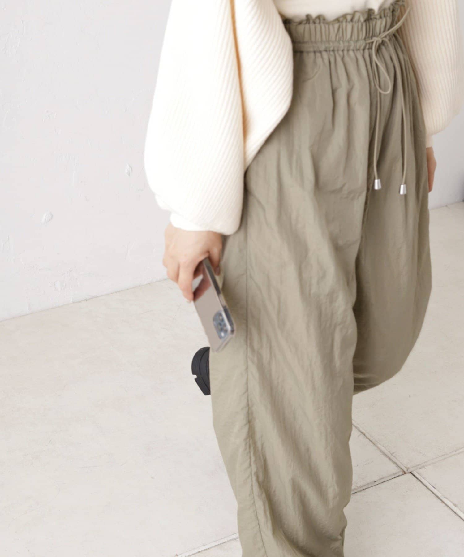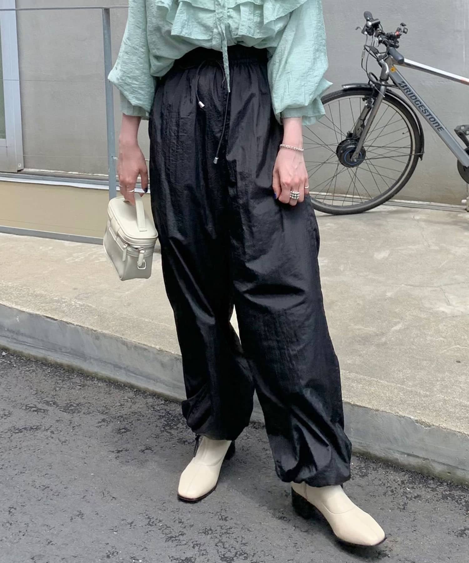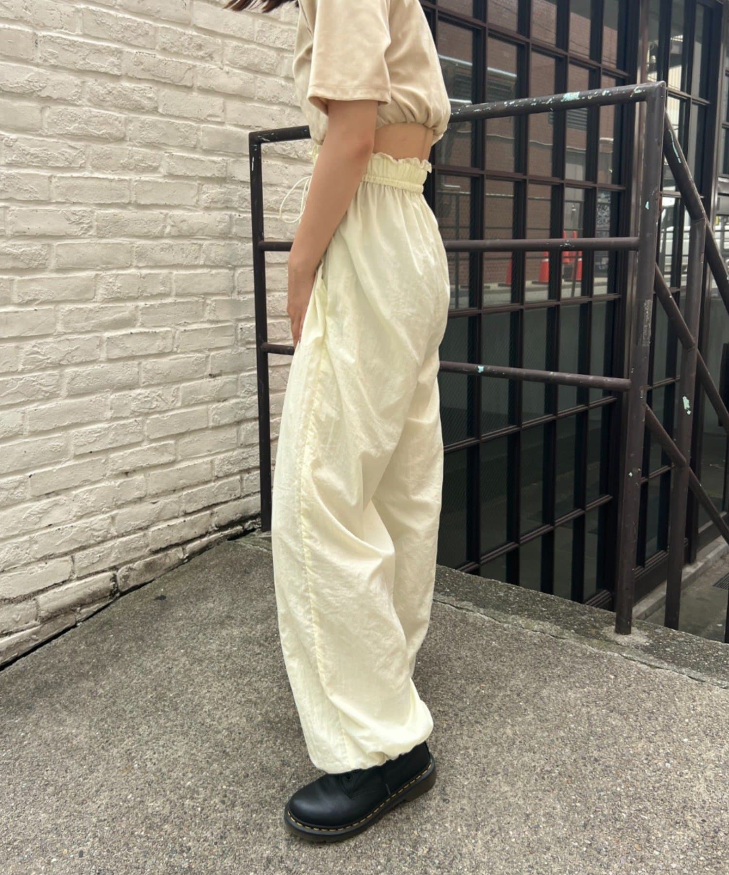裾ドロストナイロンパンツ