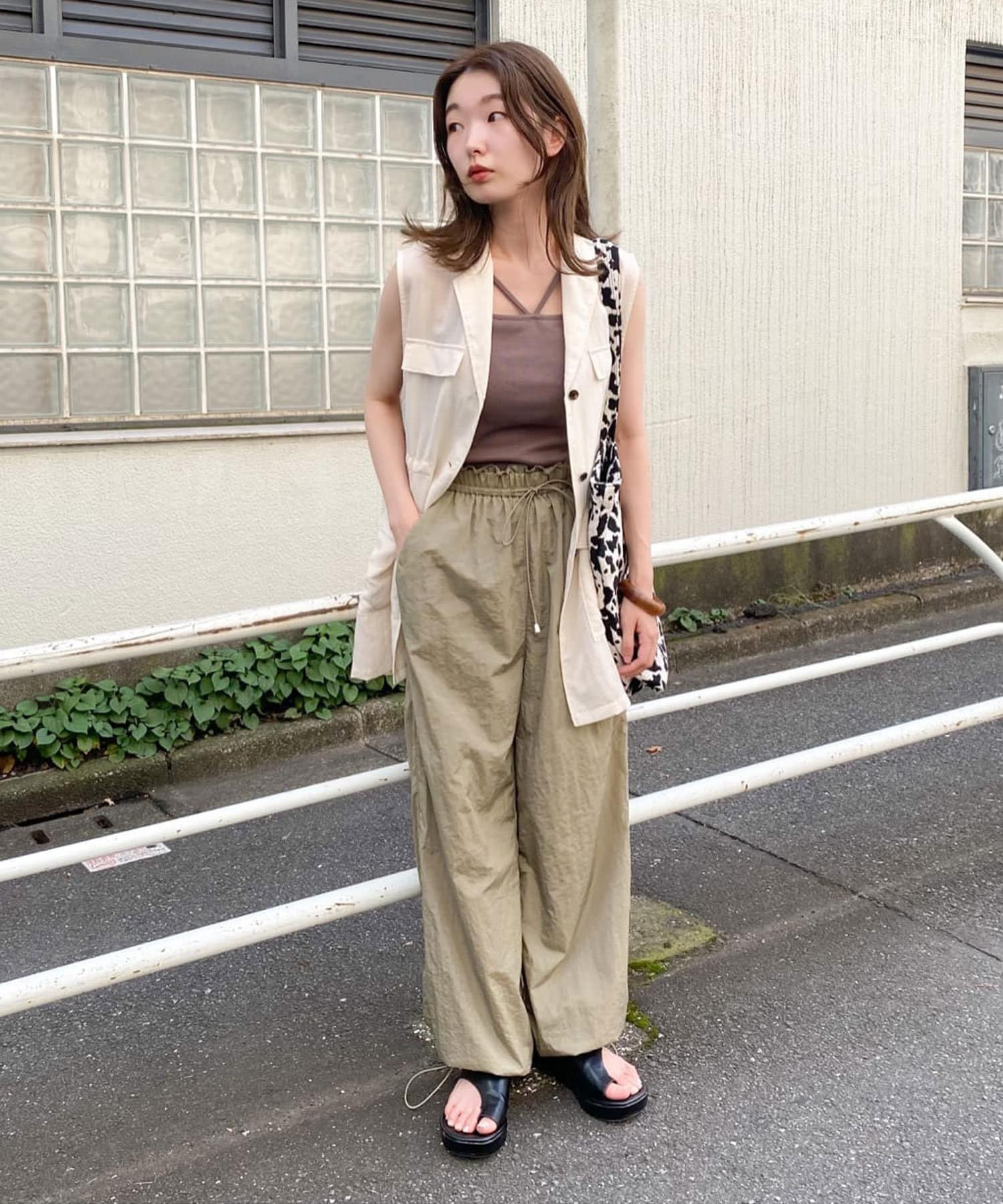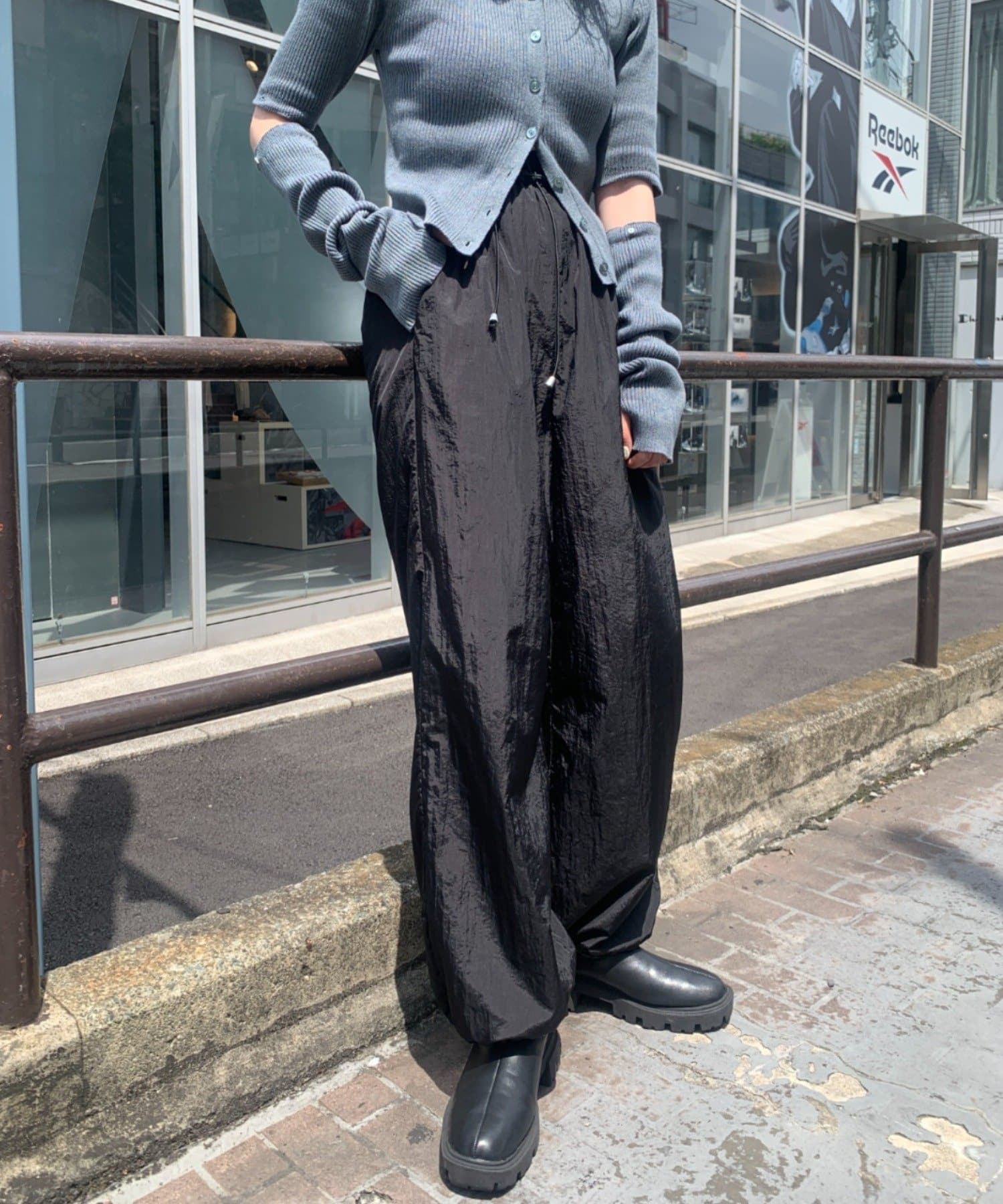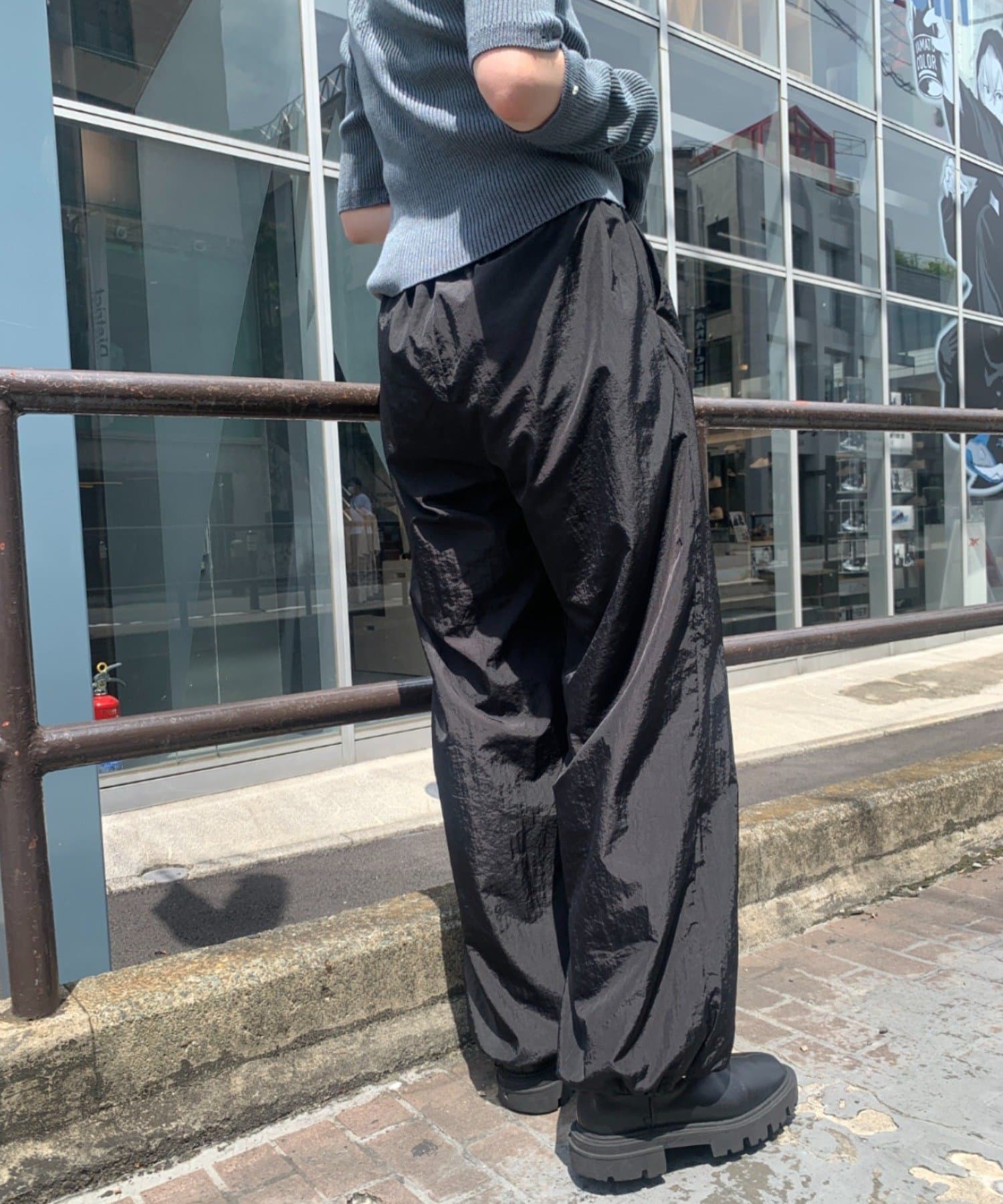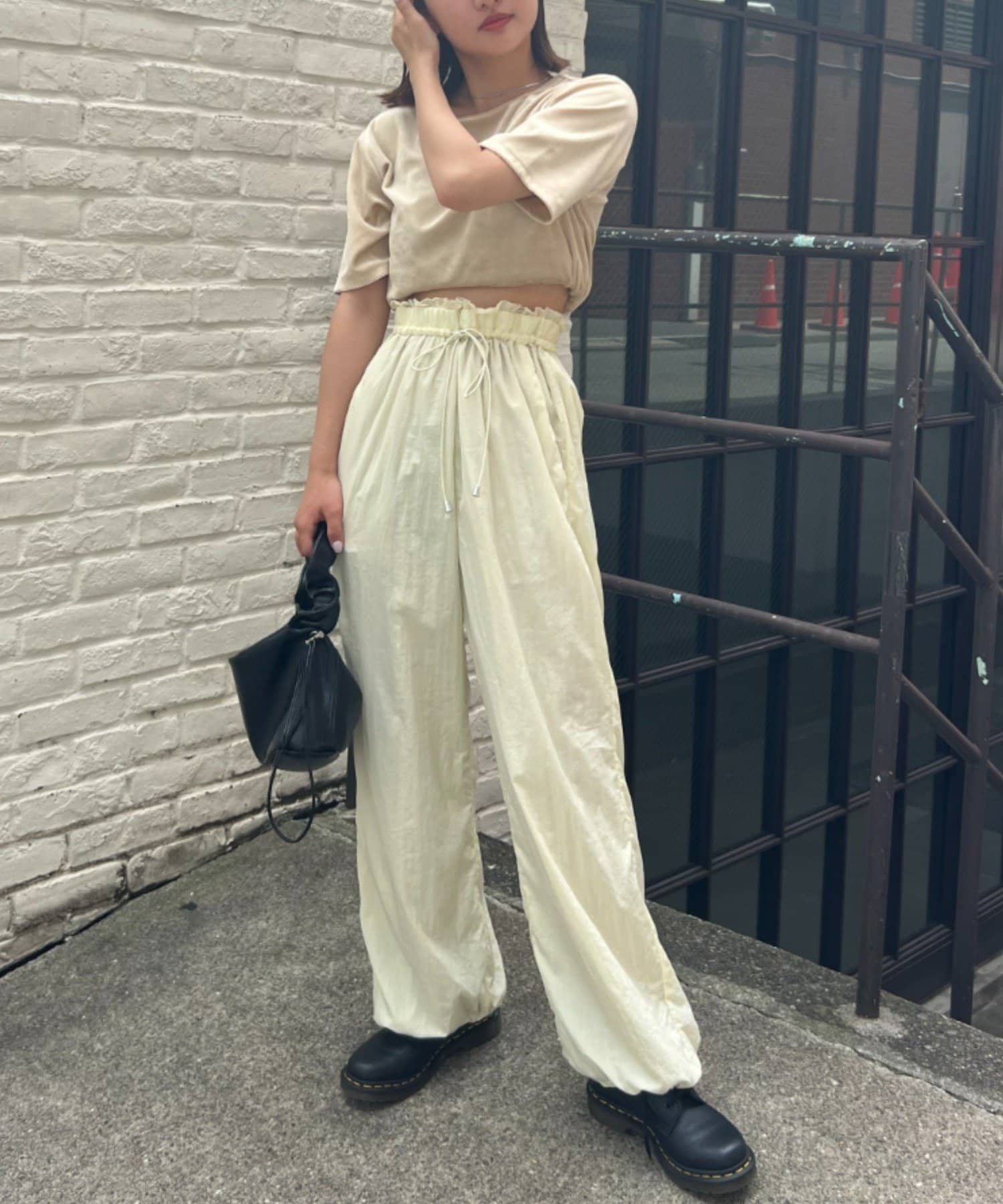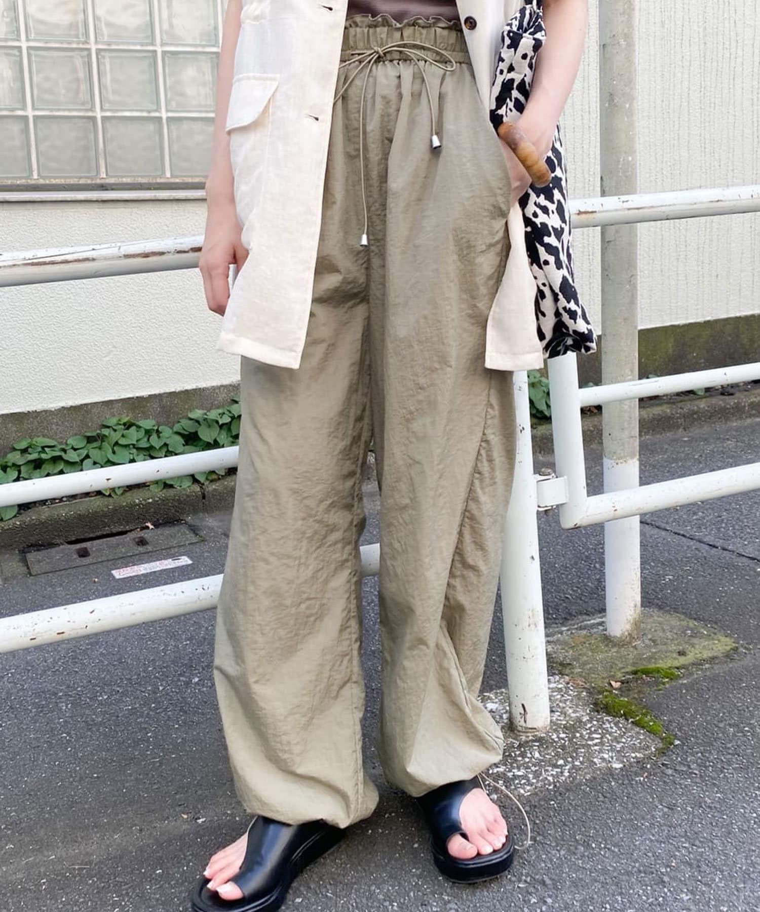 裾ドロストナイロンパンツ