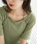 首元が詰まったキャミソールを重ねることで、大人な雰囲気の着こなしが叶い一味違ったバランスに。