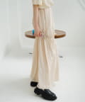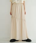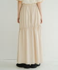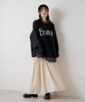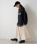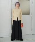 ボリューム感が可愛いスカートなので、細身なニットやジャケット合わせだとすっきりと女性らしい印象に。