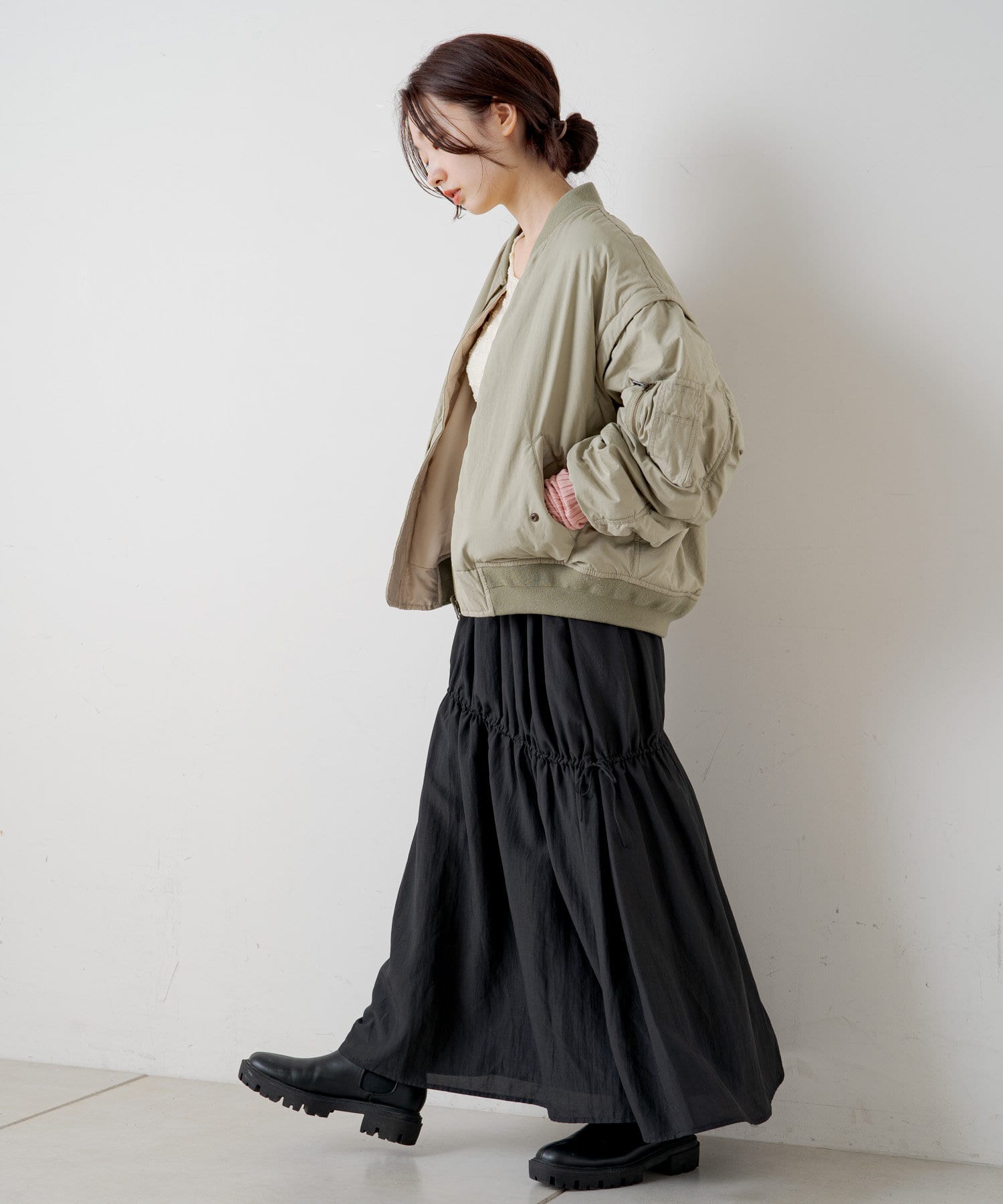 生地はナイロンなので、サラッと着れて秋まで行けます!足元も何でも合わせられます!試着したら沼りますよ(笑)
