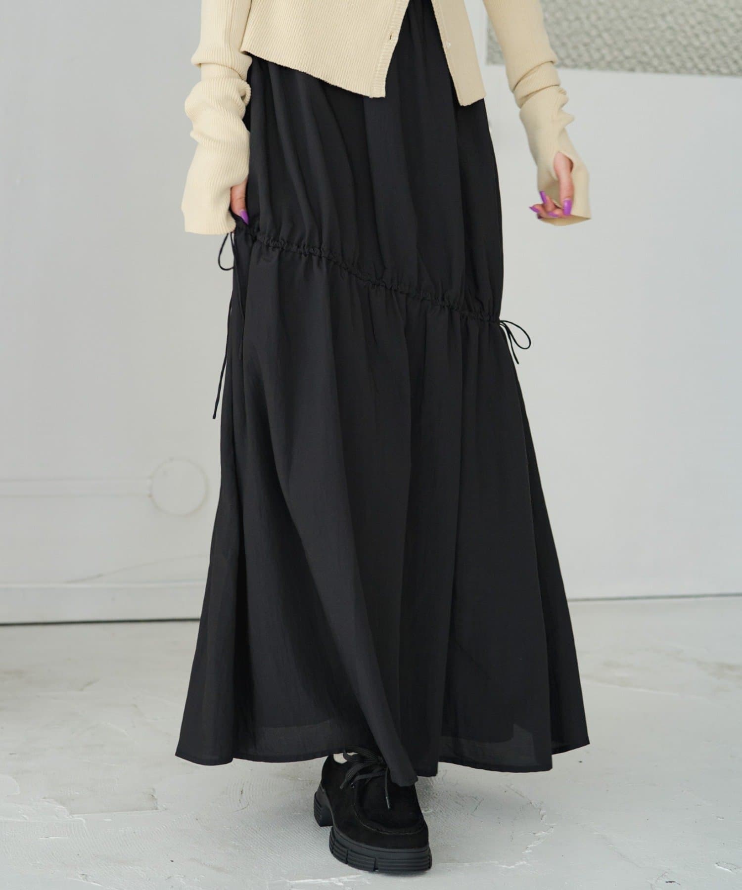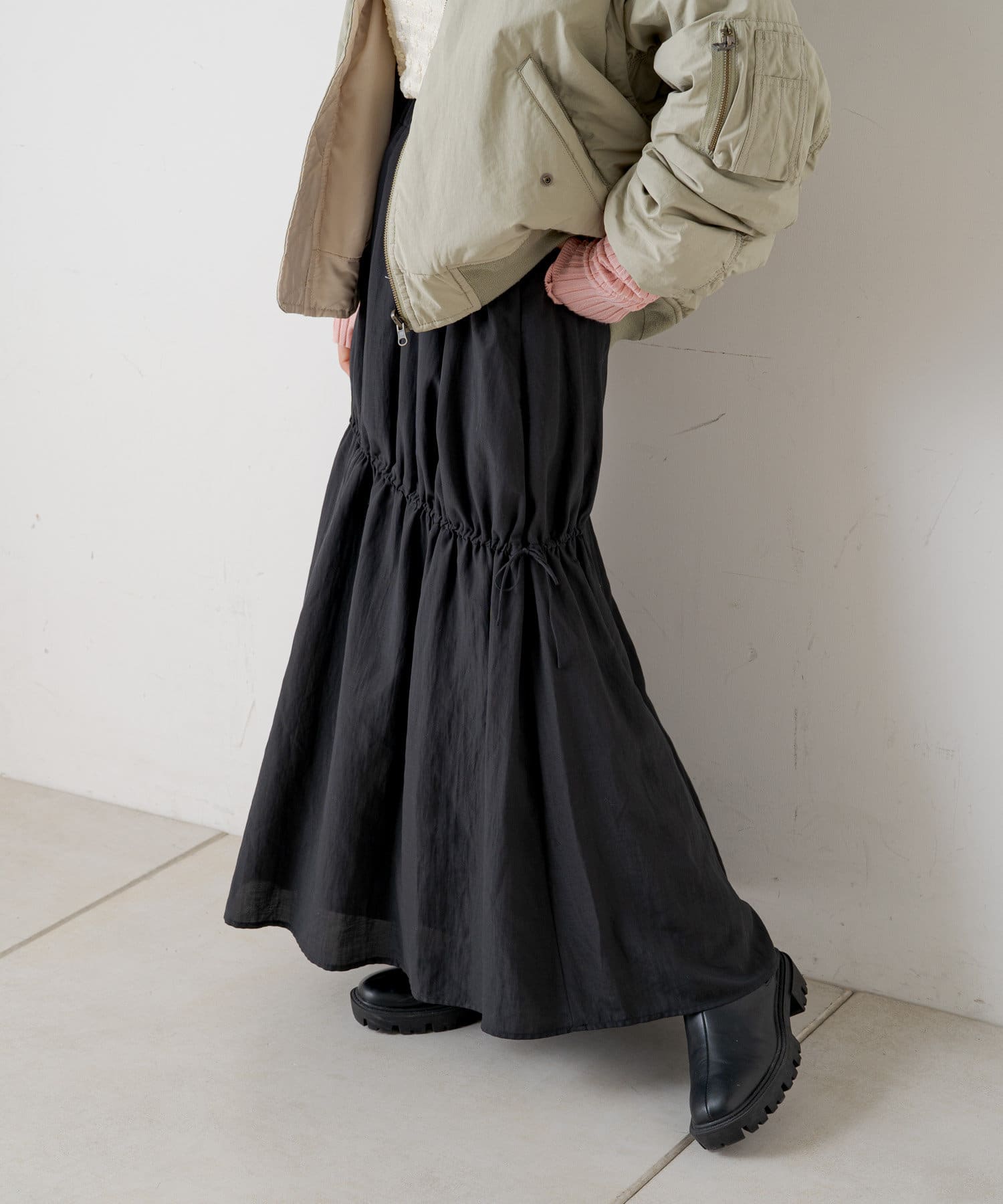購入場所:店舗紐の絞り具合でシルエットを変えれるスカートです!