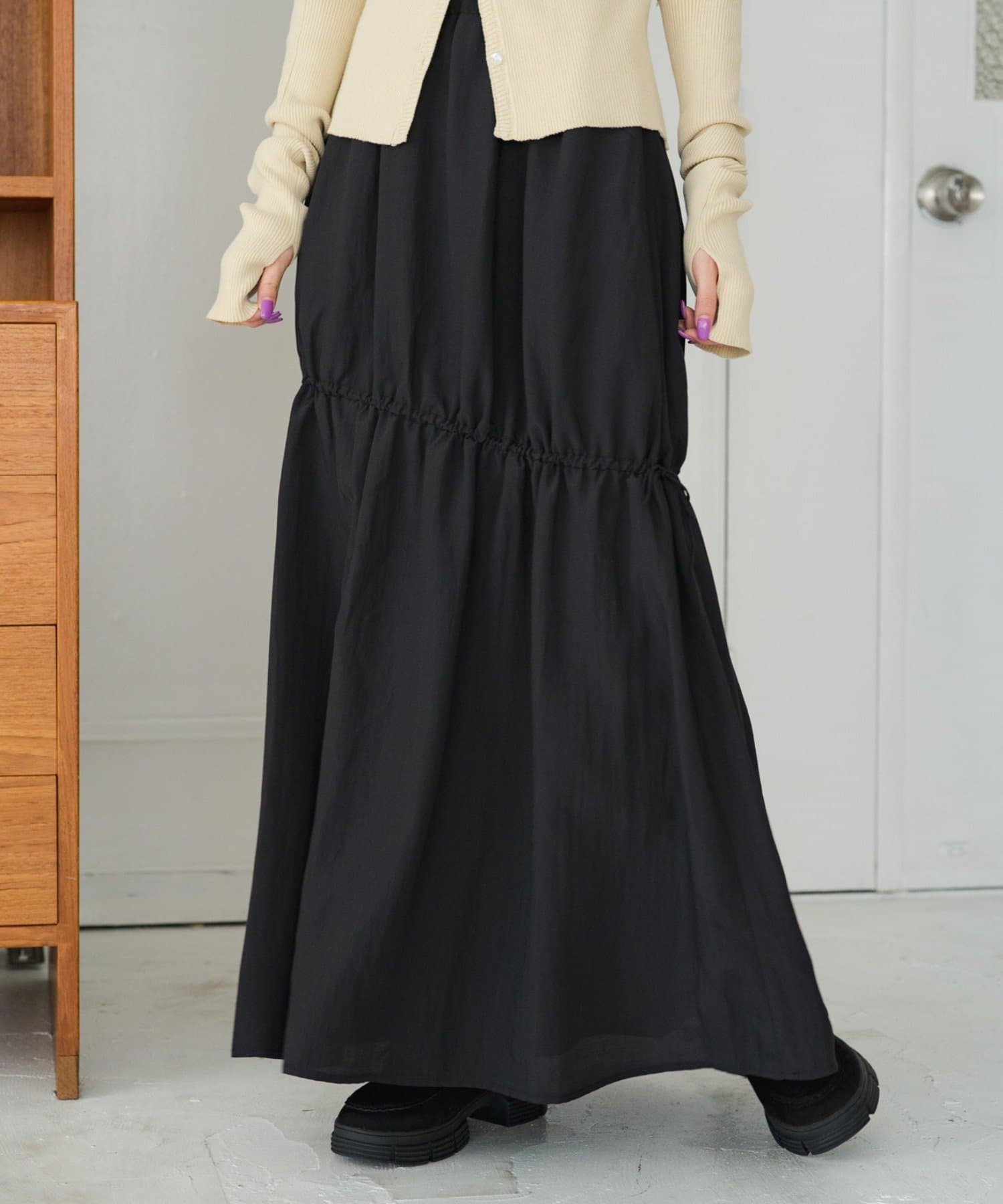 購入場所:パルクローゼットシャーリング部分を変えるだけでシルエットが変わるのでいろんな着こなしができるスカート‼︎
