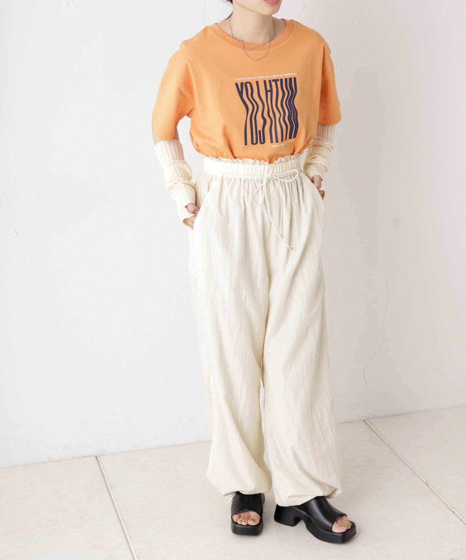 大きめのロゴTなので華やかな印象でポイントとして入れやすい一枚。