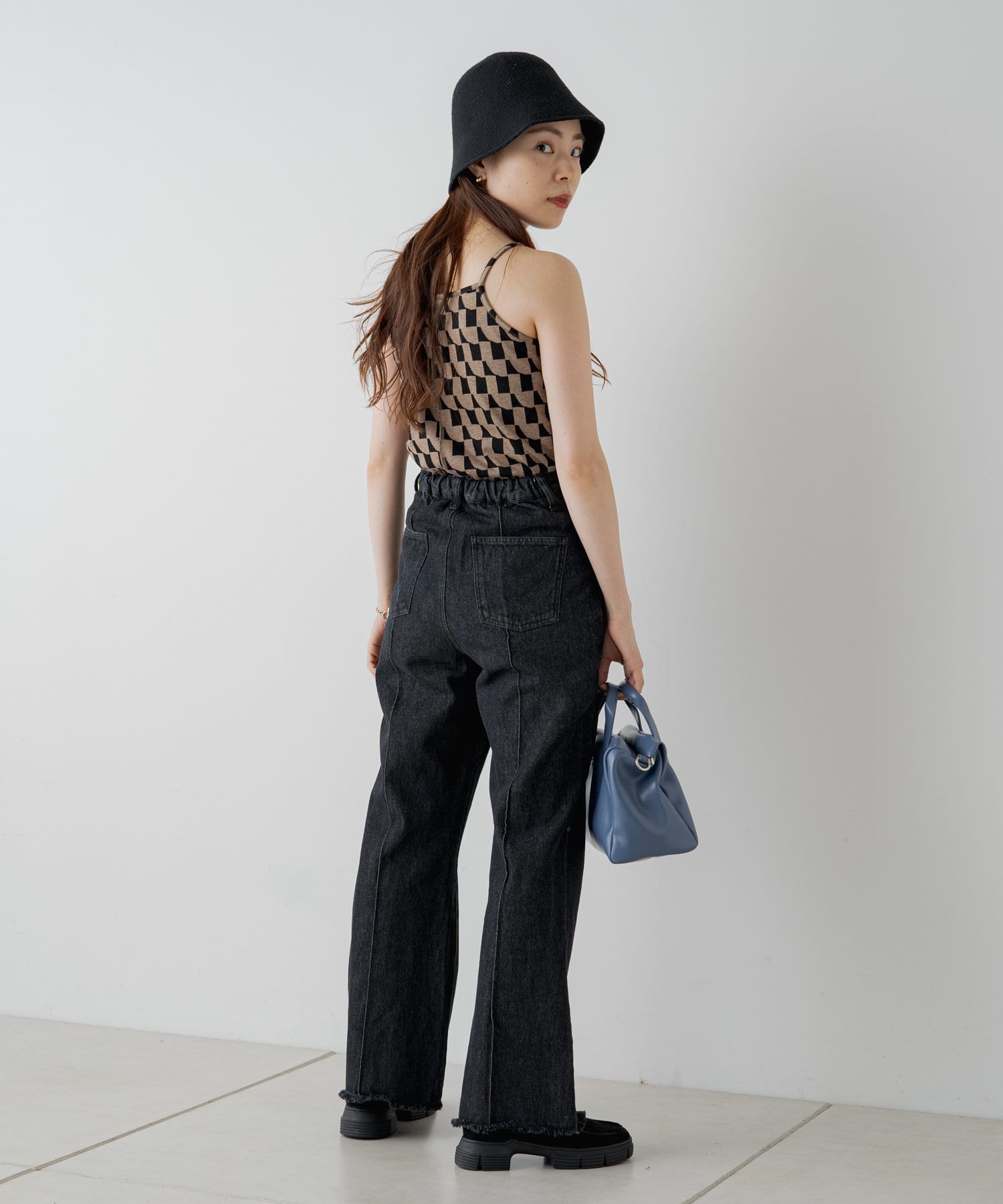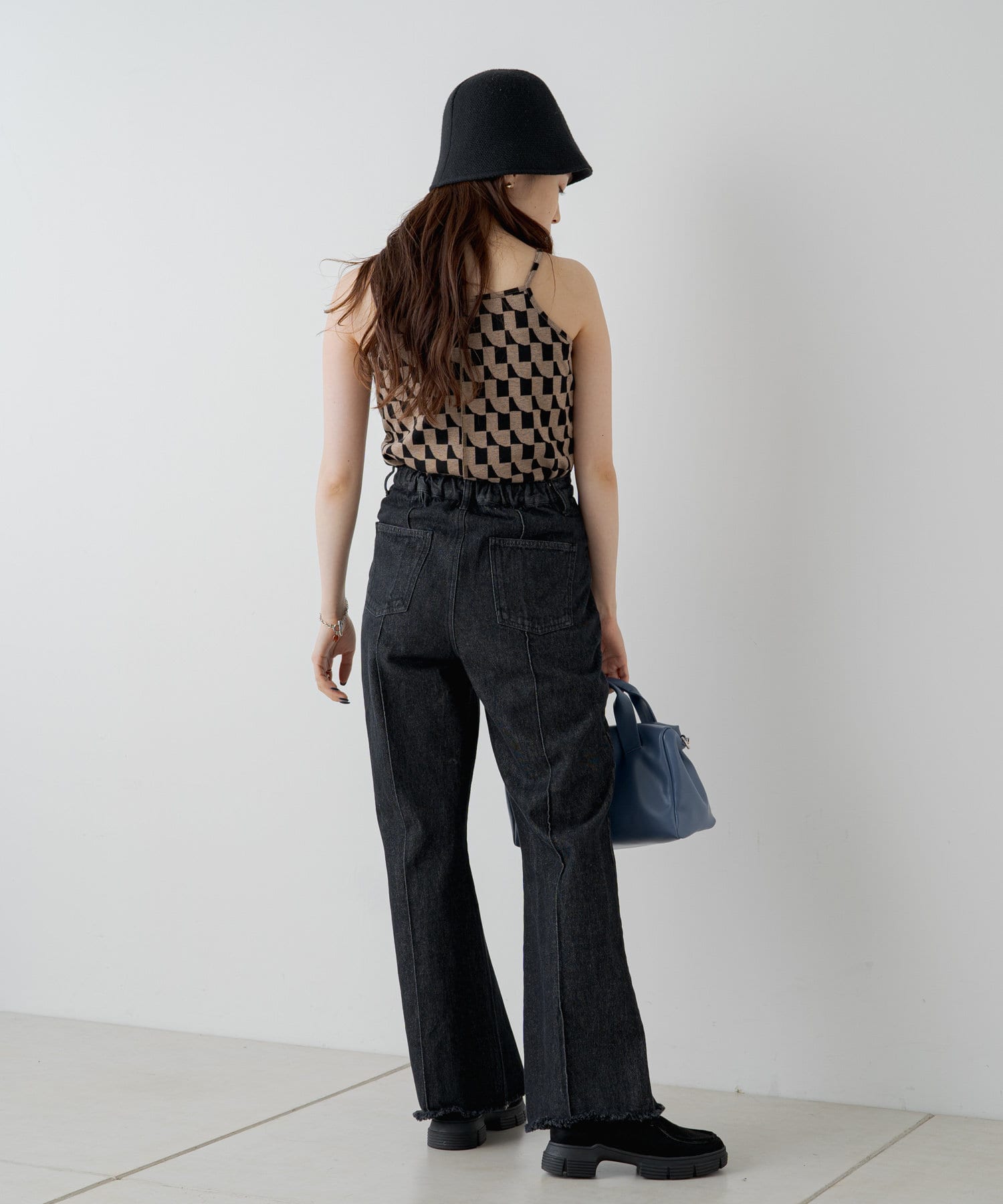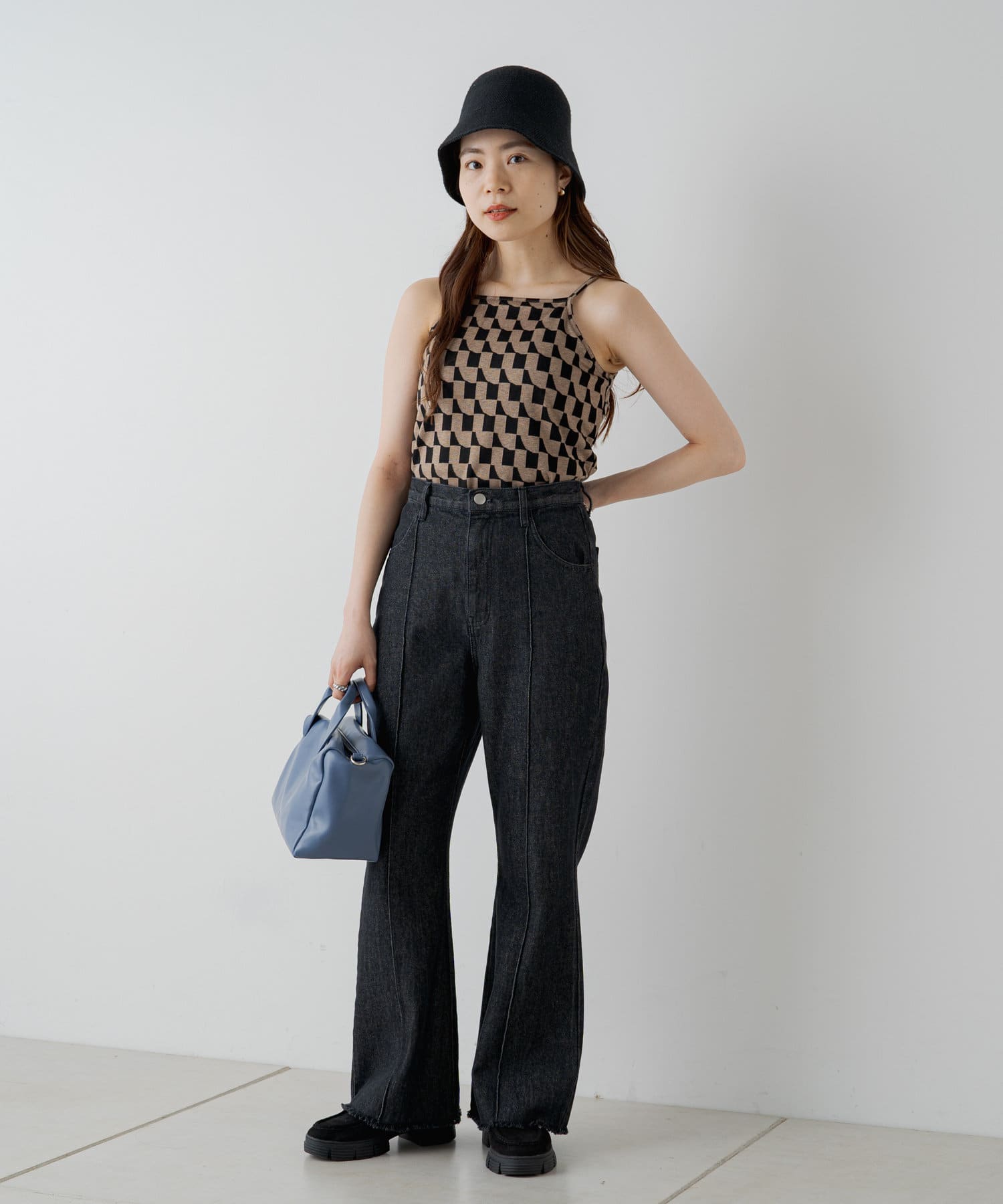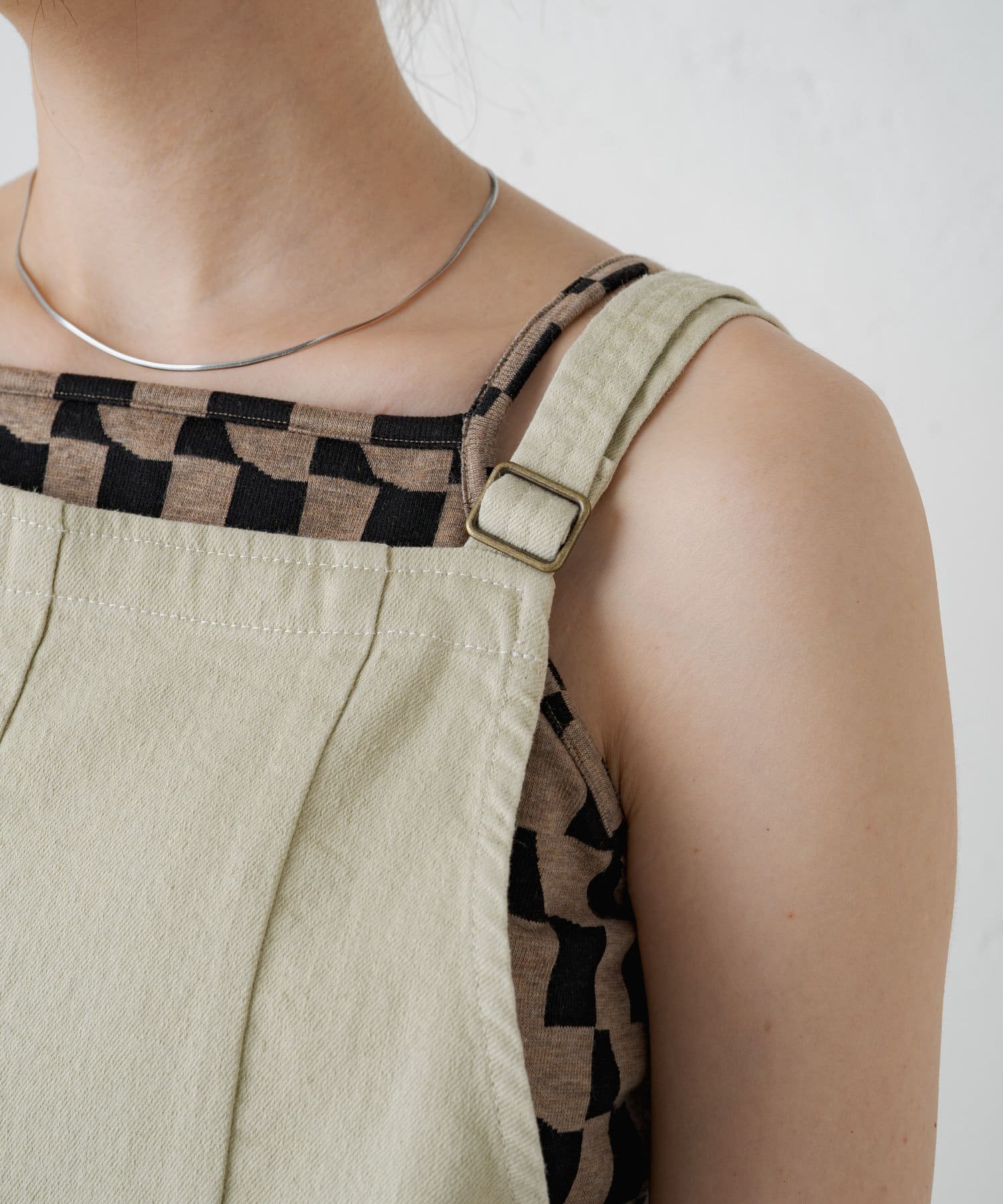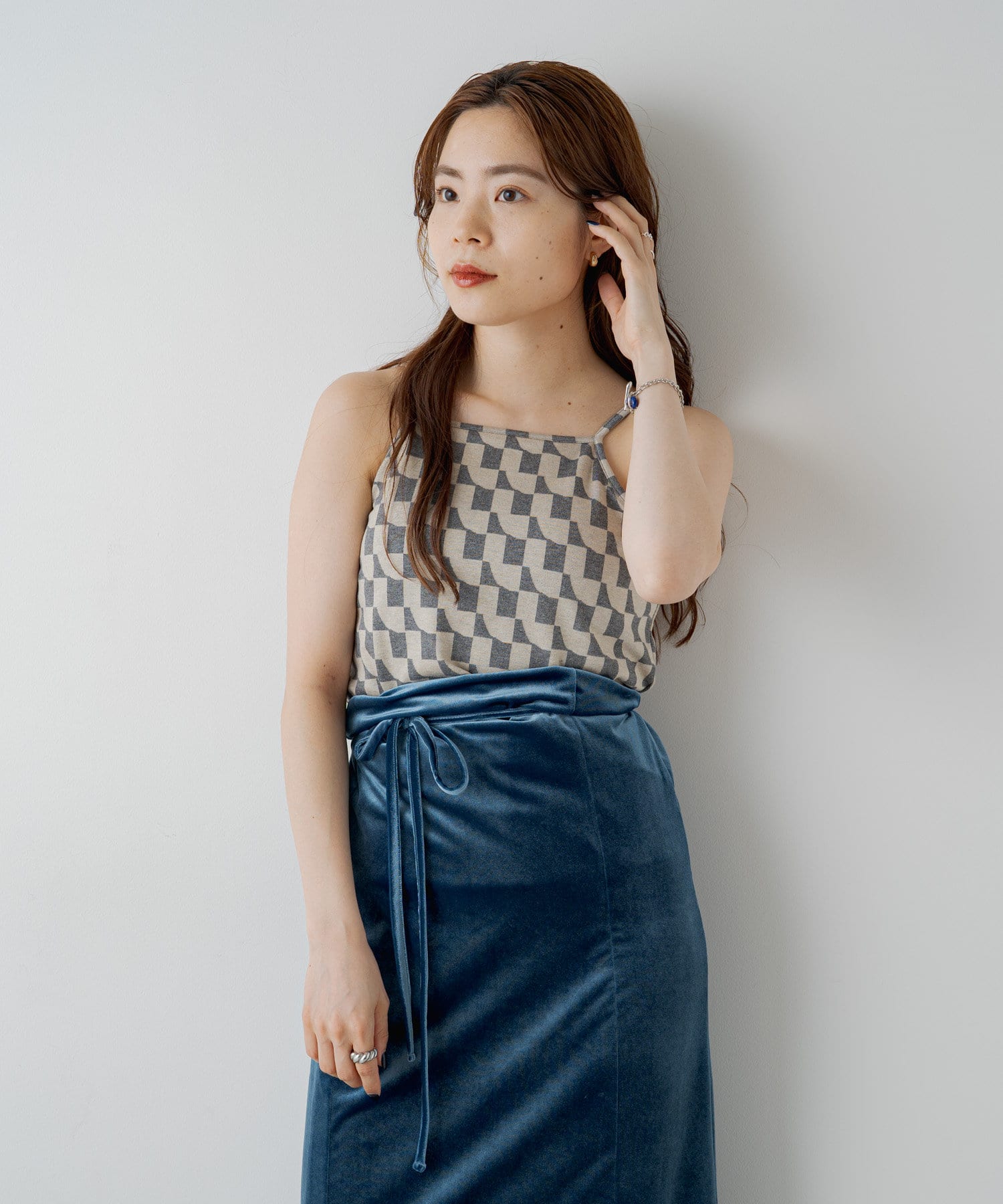 コーディネートのワンポイントで入れて頂ける幾何学柄がポイントになるキャミソール。