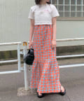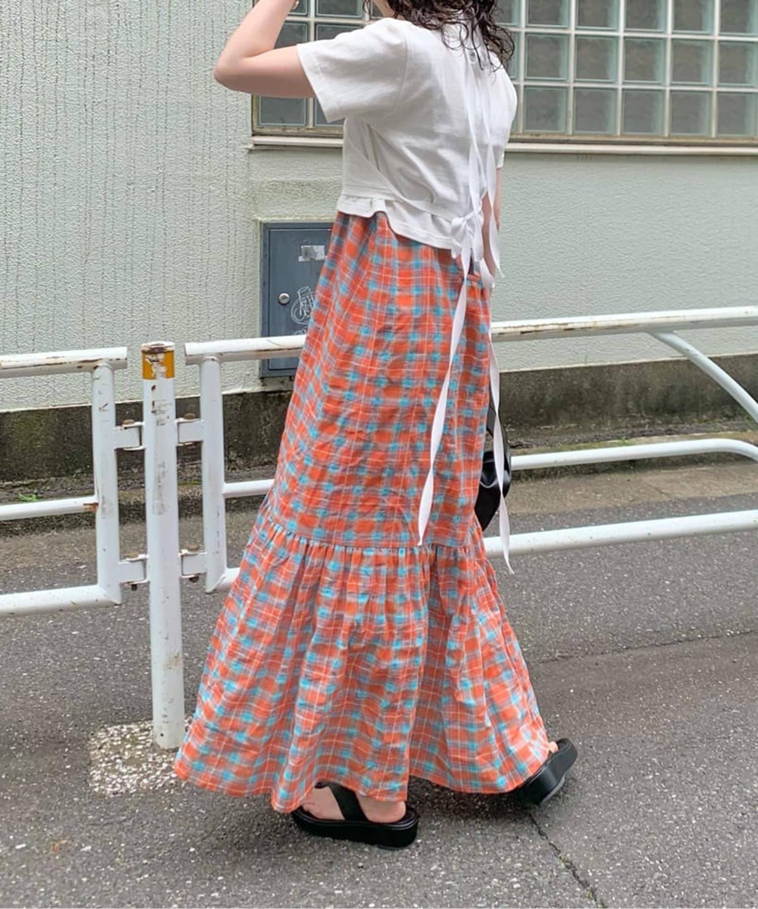 購入場所:店舗ふわっとしたティアードのスカートと、チェックの色味がとても可愛くて気に入っています!