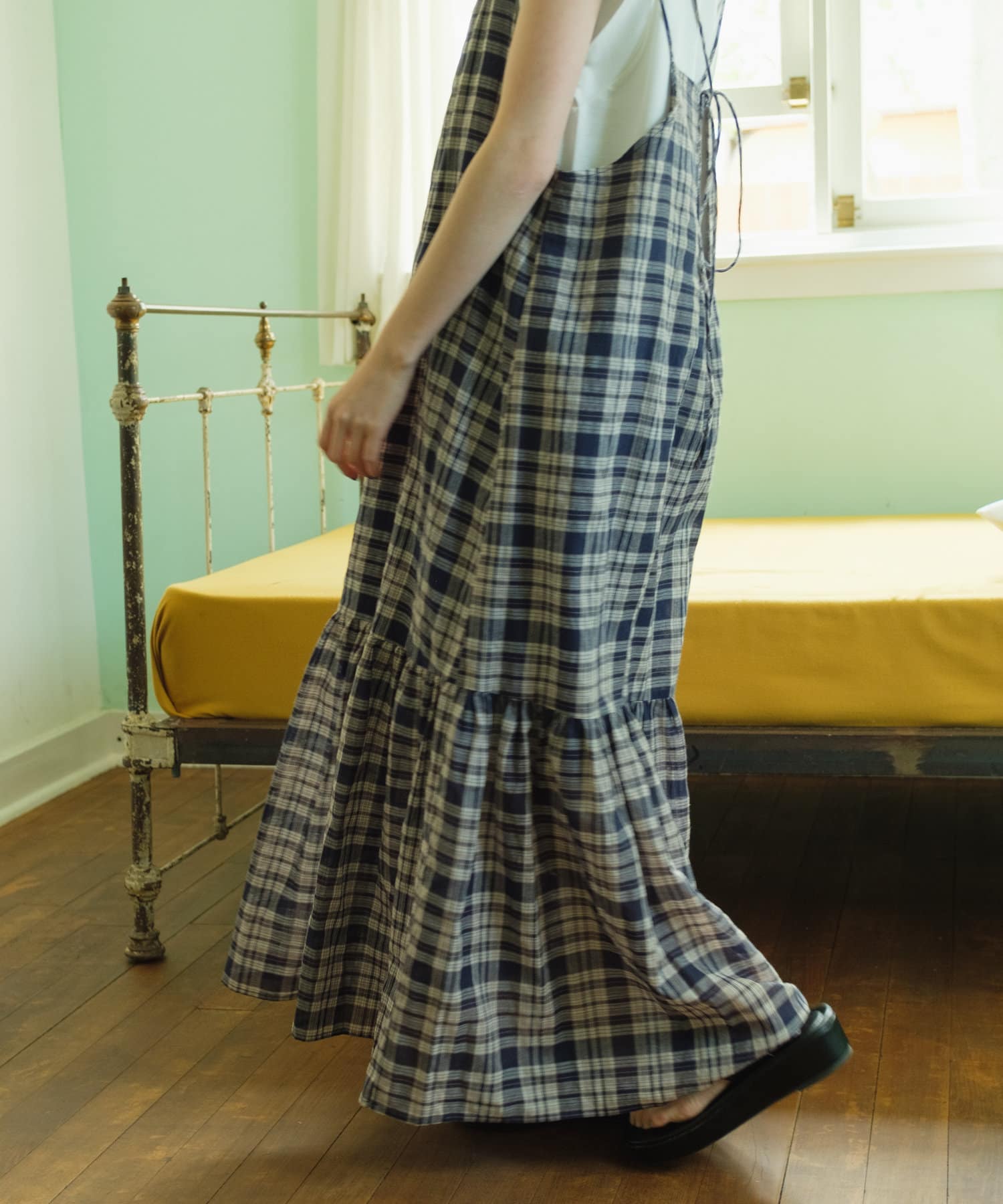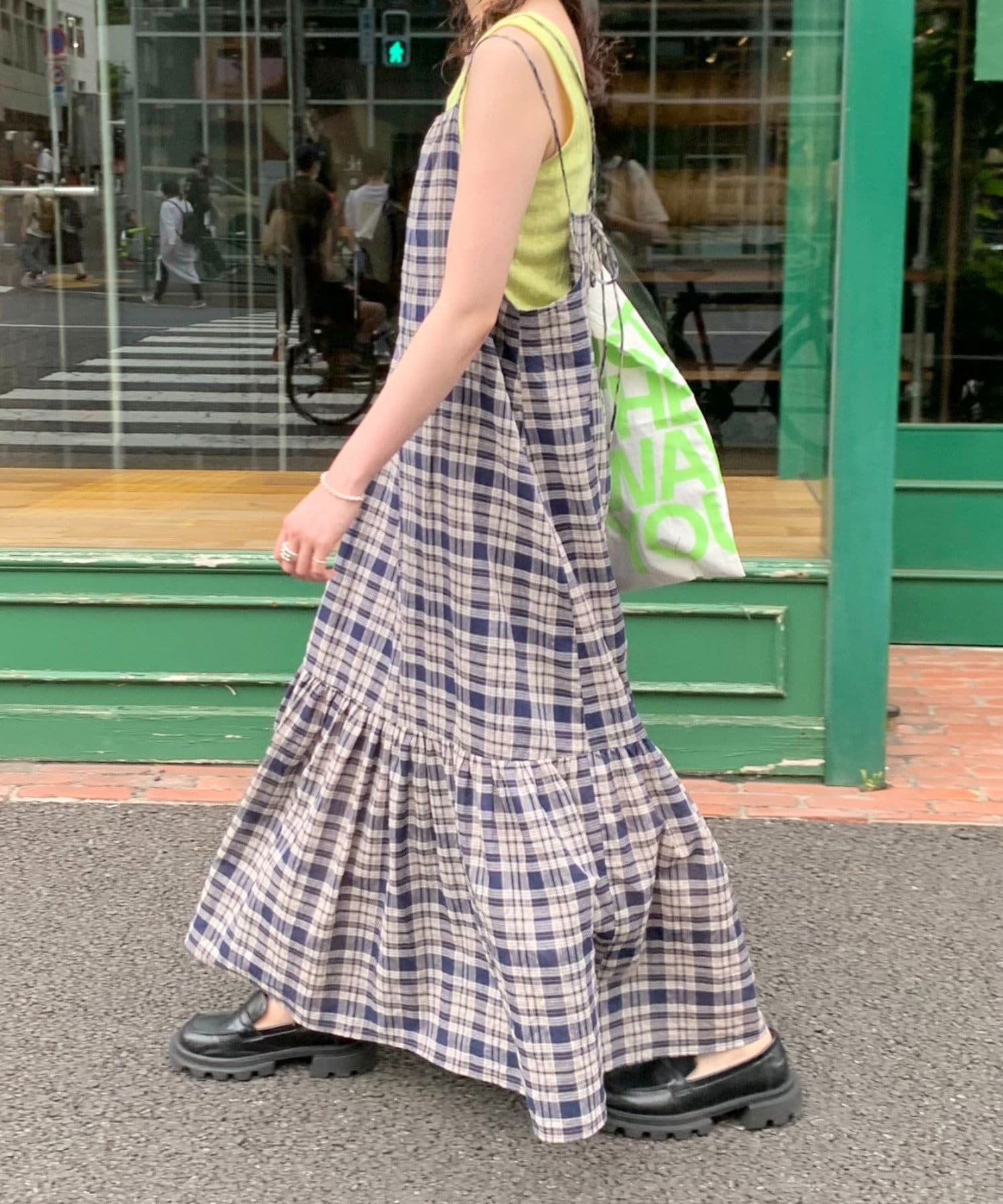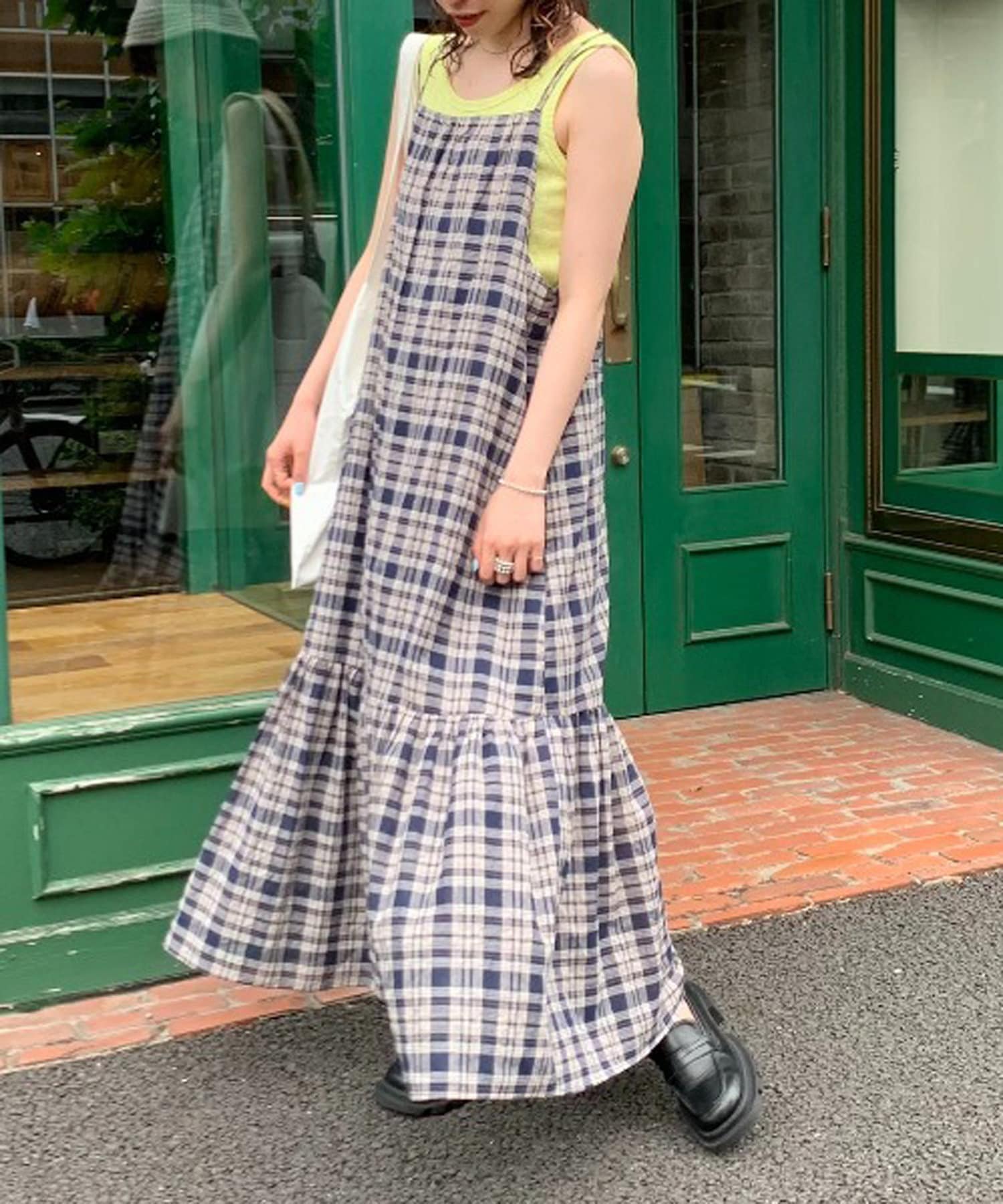 【サイズ展開あり】ティアードチェックキャミワンピース