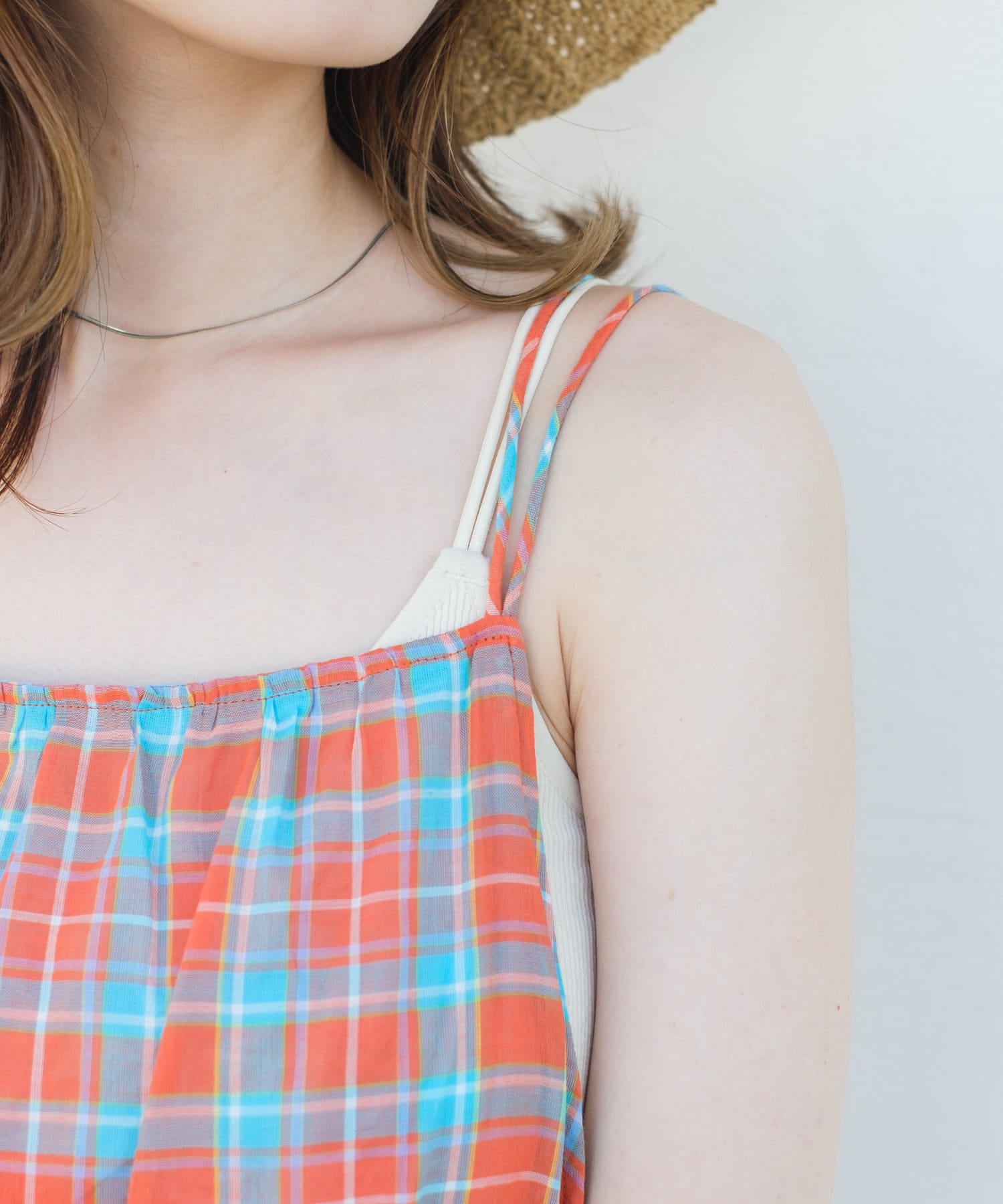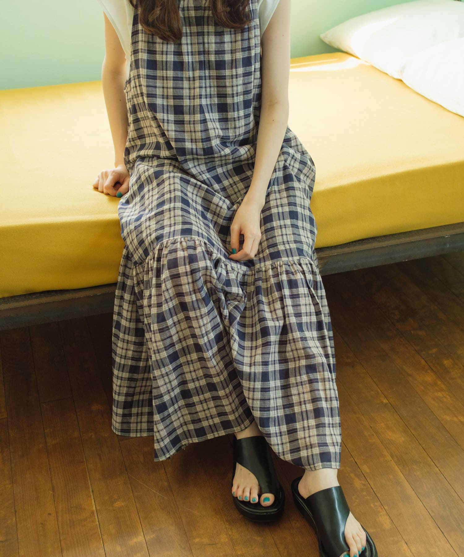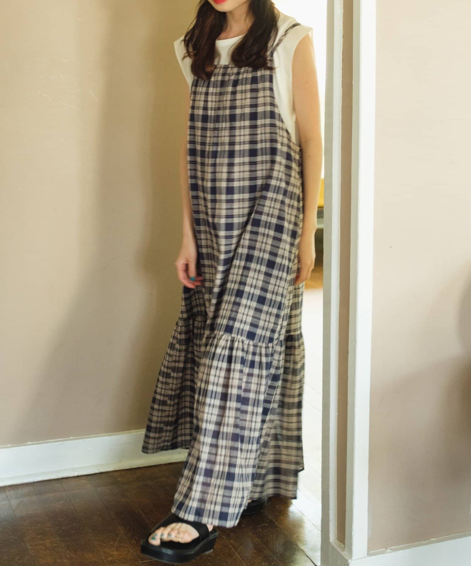 【サイズ展開あり】ティアードチェックキャミワンピース