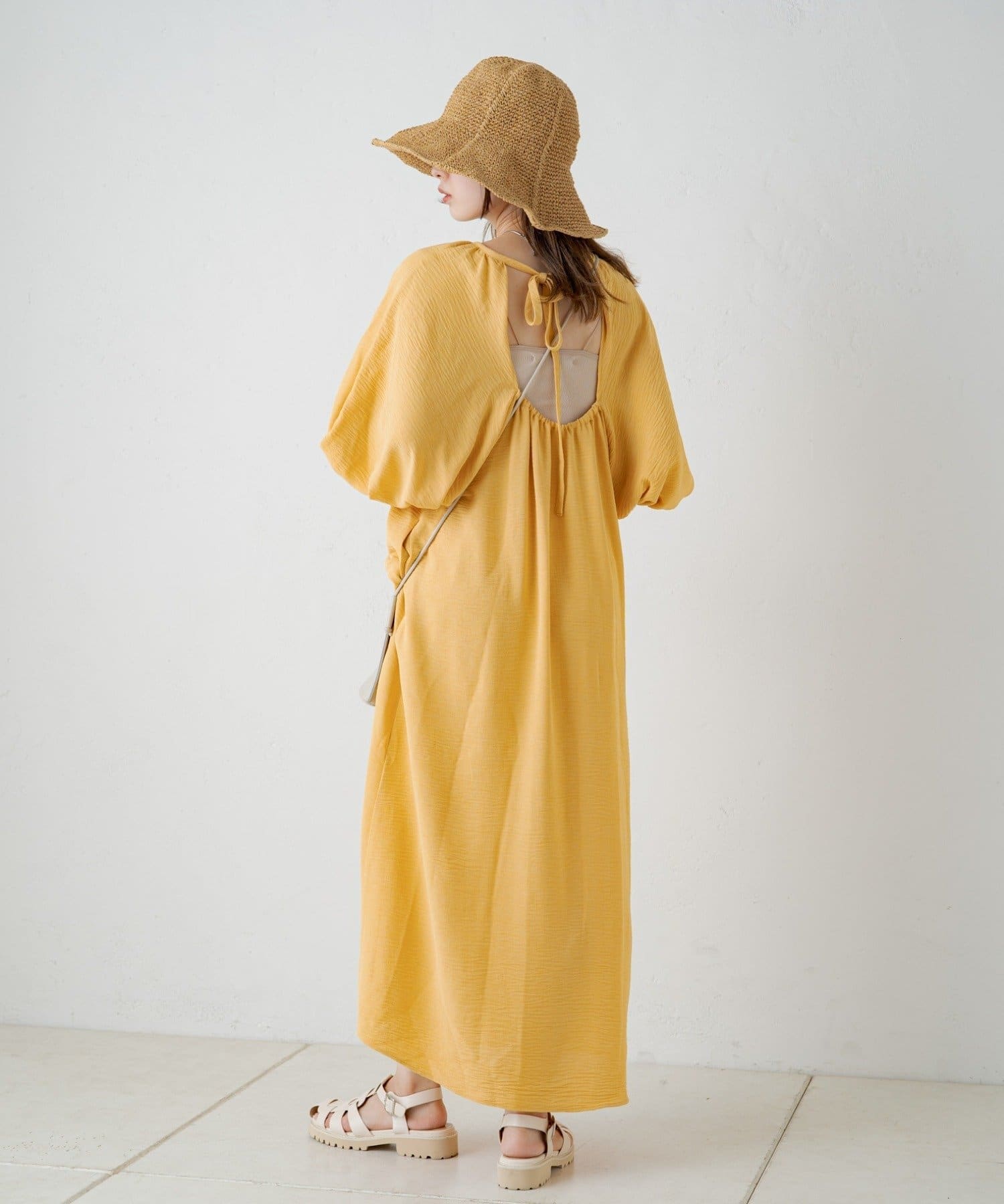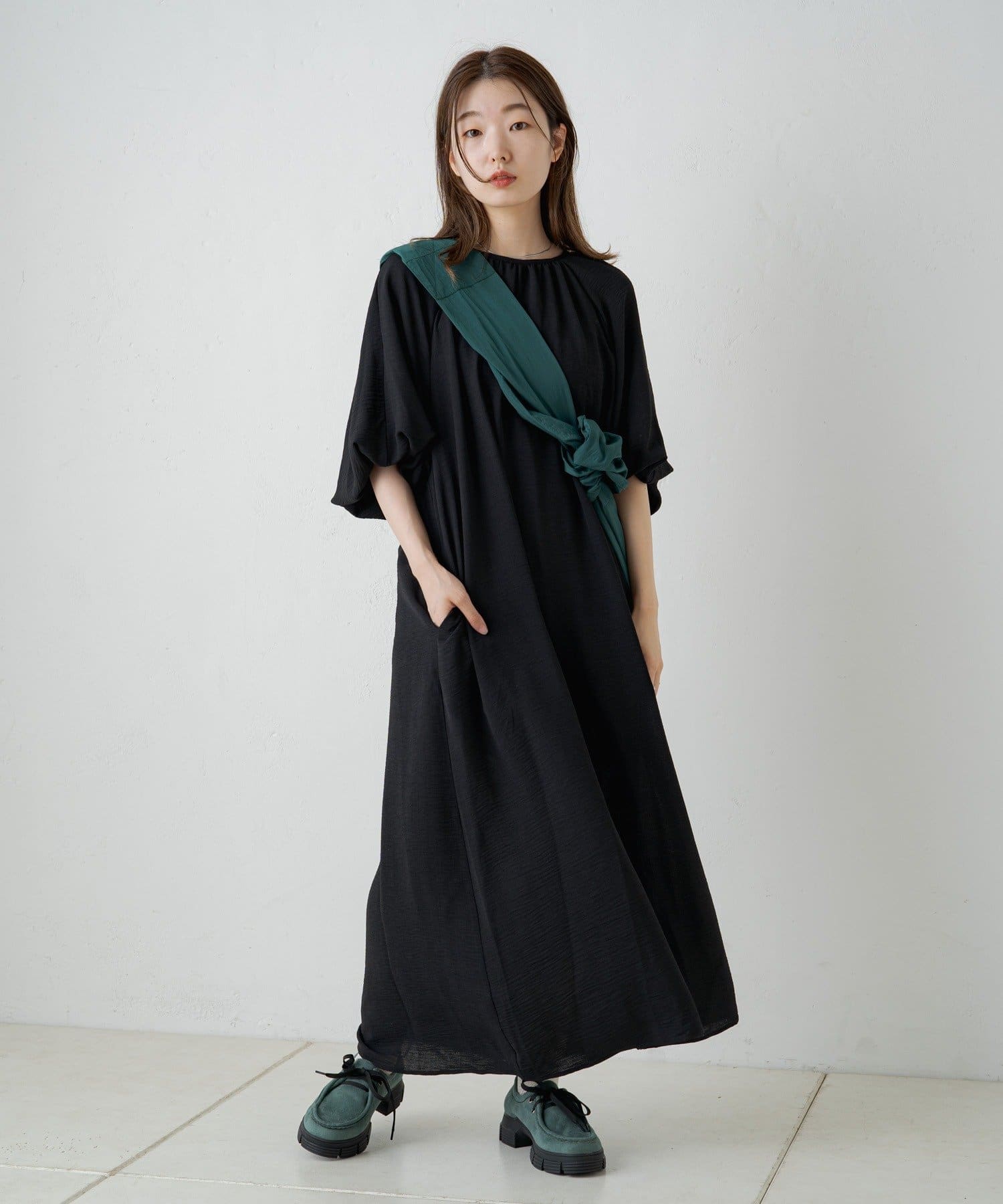 一枚で主役のワンピースなので、HATや、BAGなどをシンプルなものにして自然体に着て頂きたい一品。