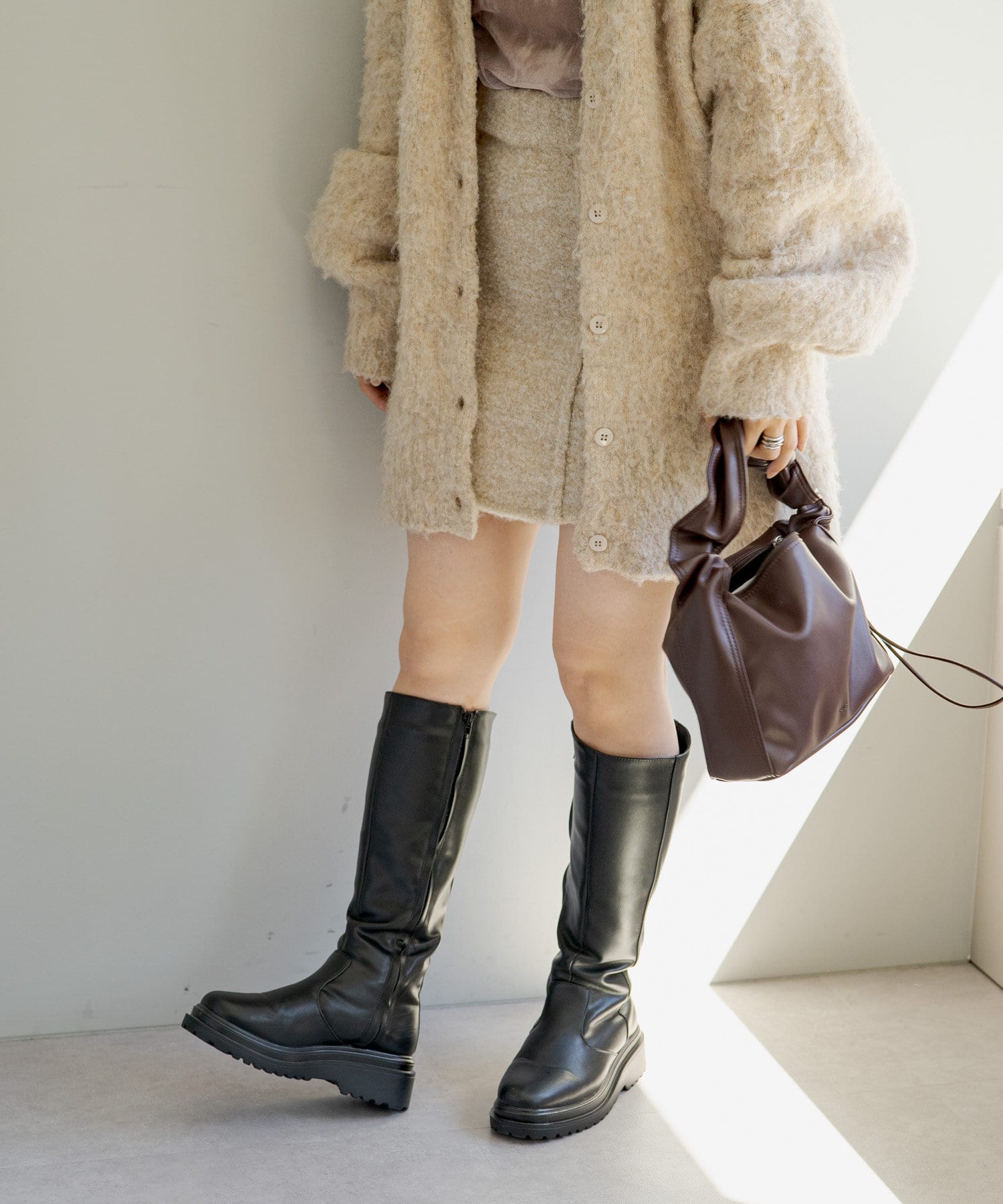 同素材のニットと合わせてセットアップとしての着用はもちろん、