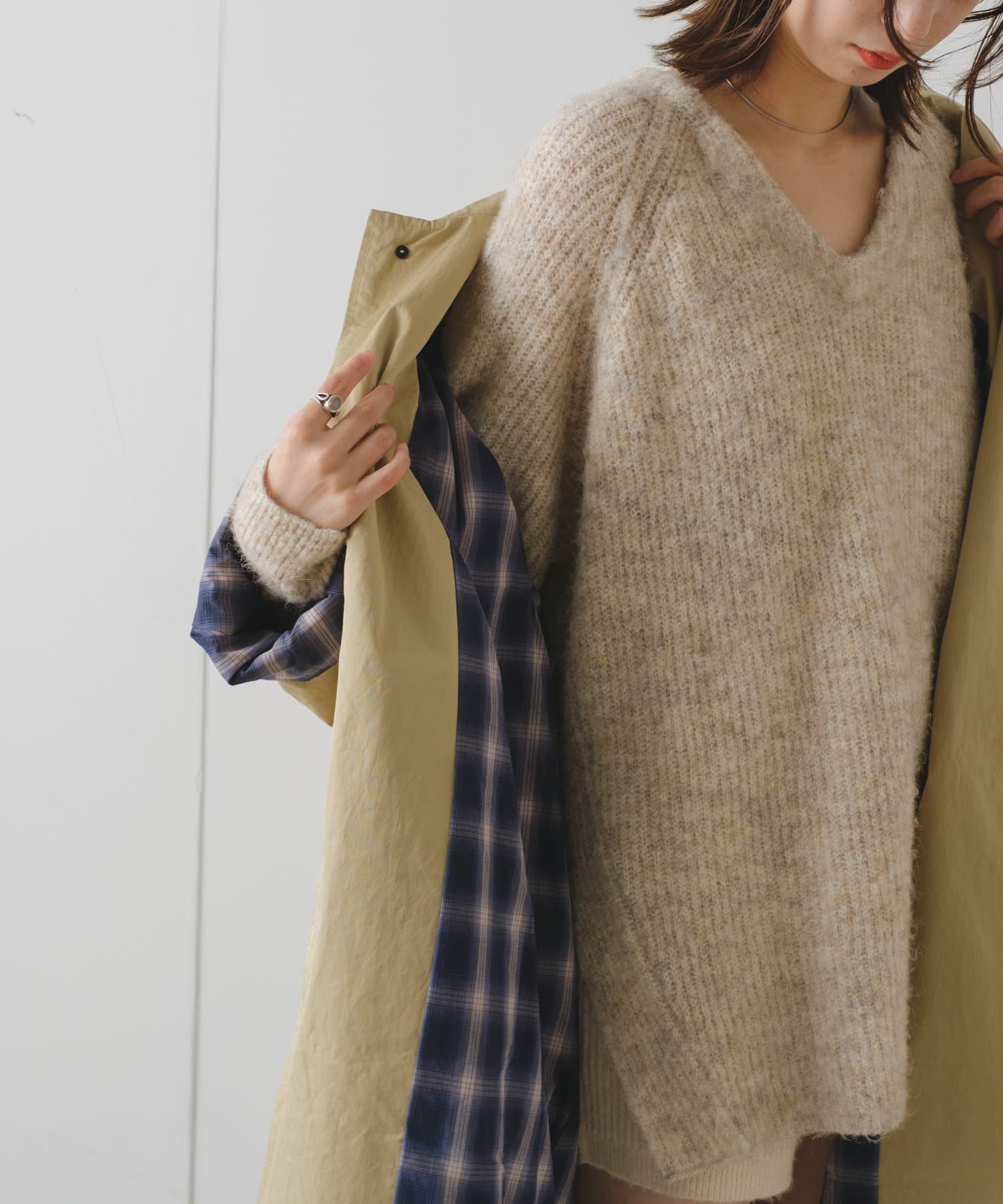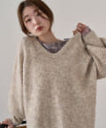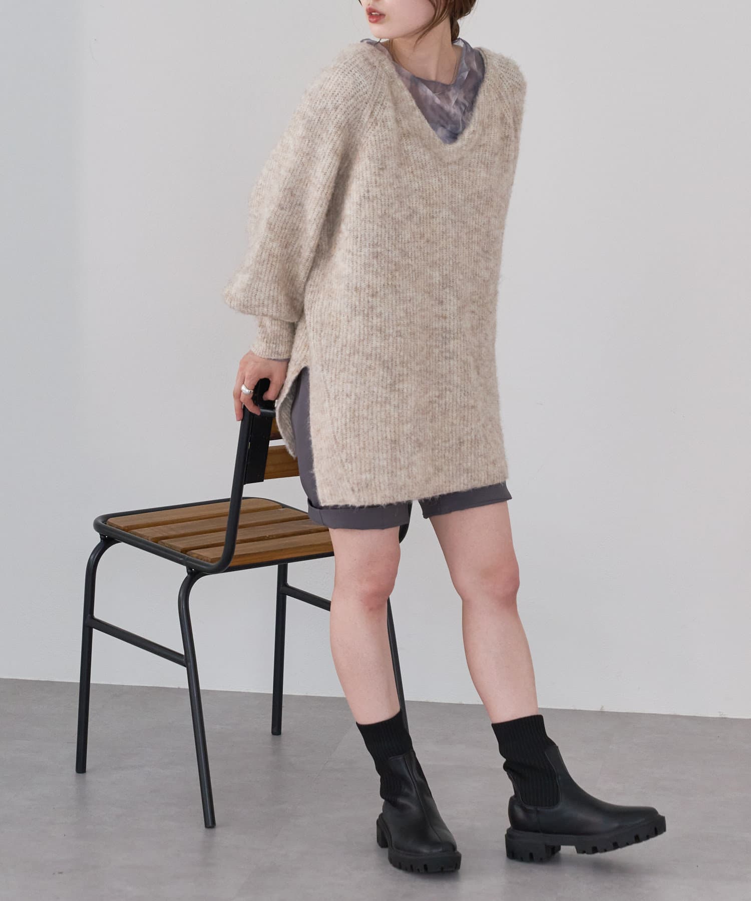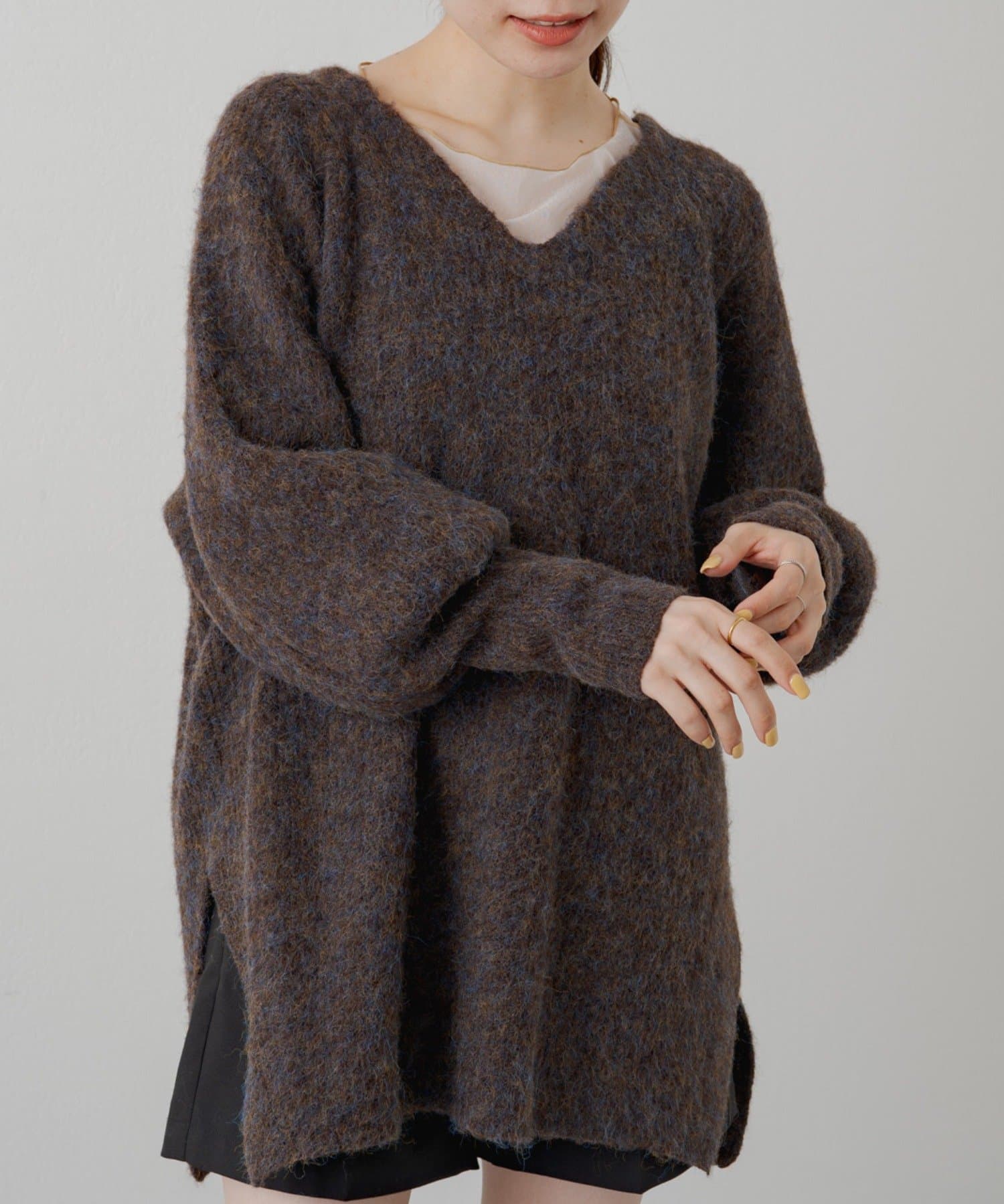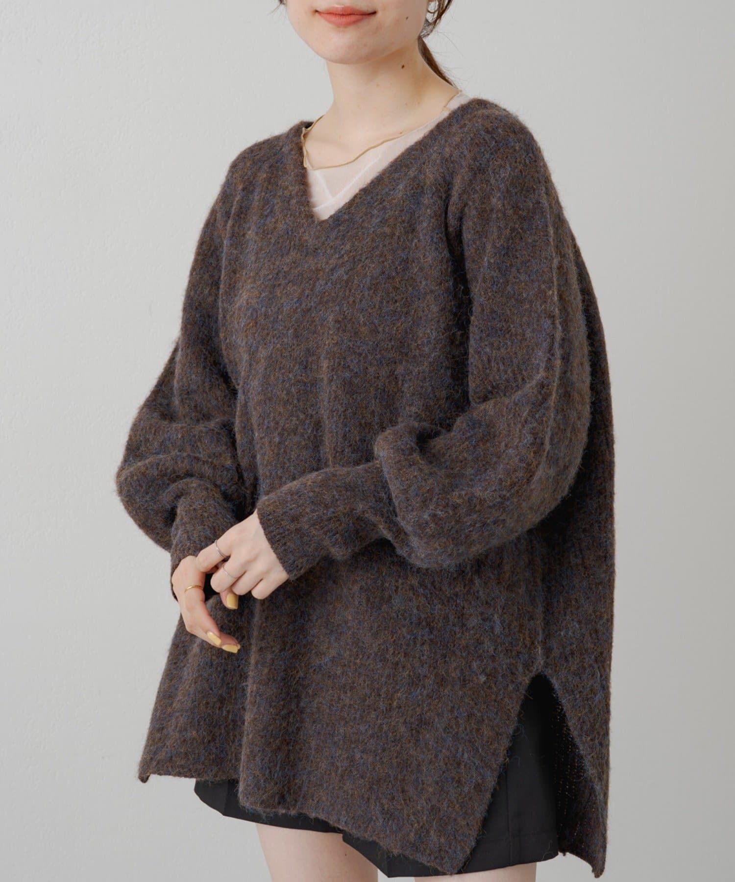 ナチュラルなV開きで女性らしさもありつつお袖のたっぷり感で可愛らしさもあるニット!