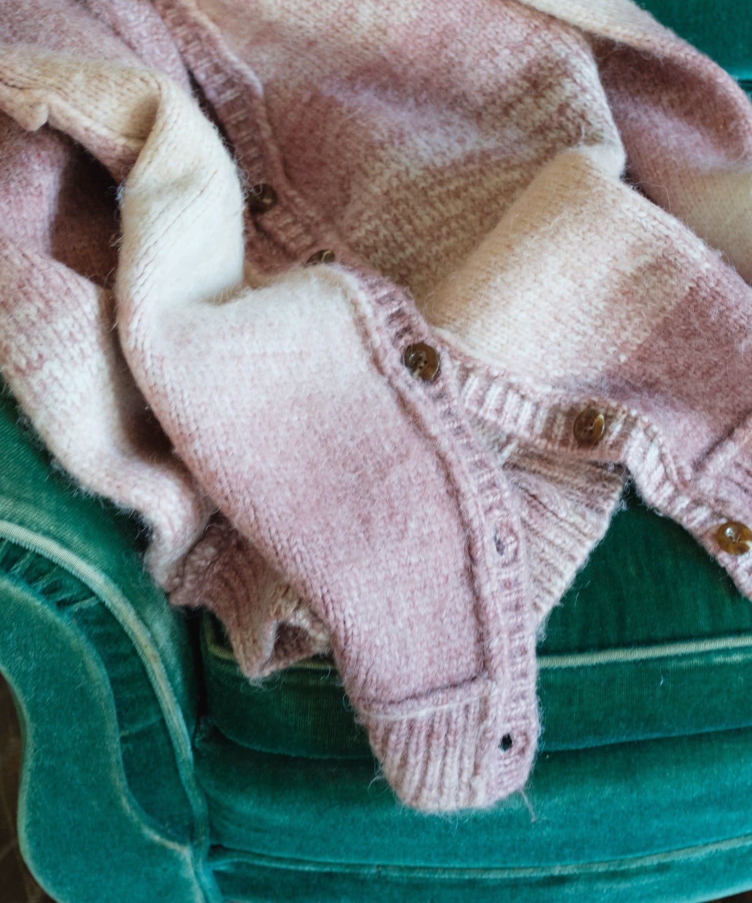 生地も分厚く暖かいので、寒いときに大活躍しそうです。グラデーションの色合いがとても可愛いので1枚羽織るだけでコーデに色が出て華やかなイメージになり、主役にもなるアイテムだと思います。ピンク好きにはたまらない1着です。