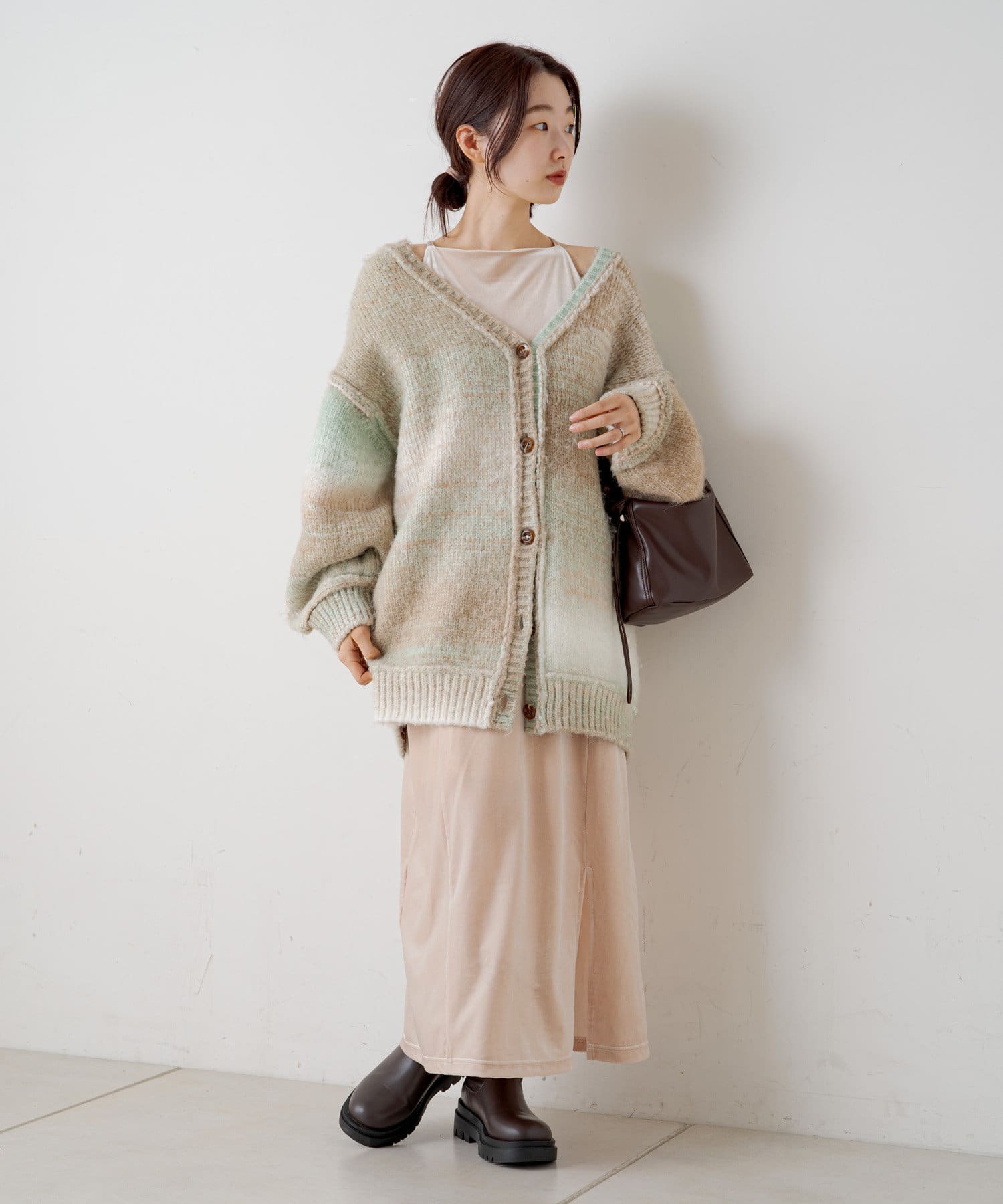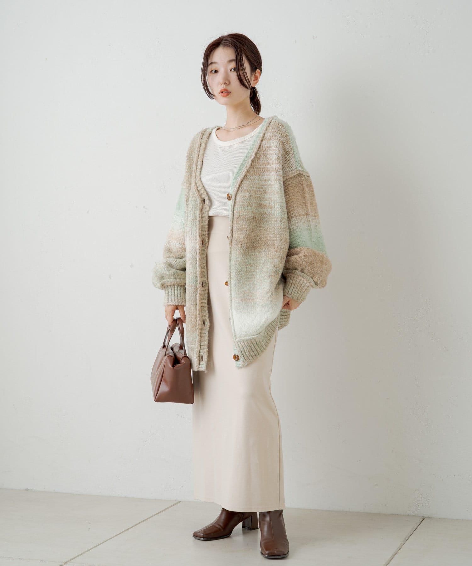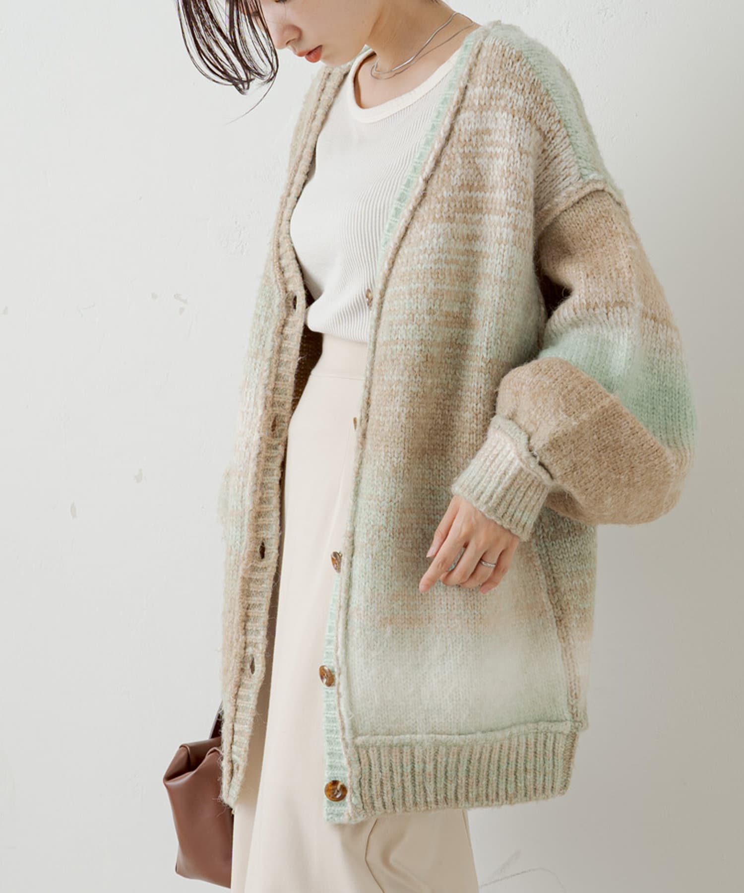 コーディネートの主役になるグラデーションカラーがこなれた印象のカーディガン