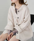 大きめのボタンと襟、配色デザインがポイントのトレンドアイテムです。