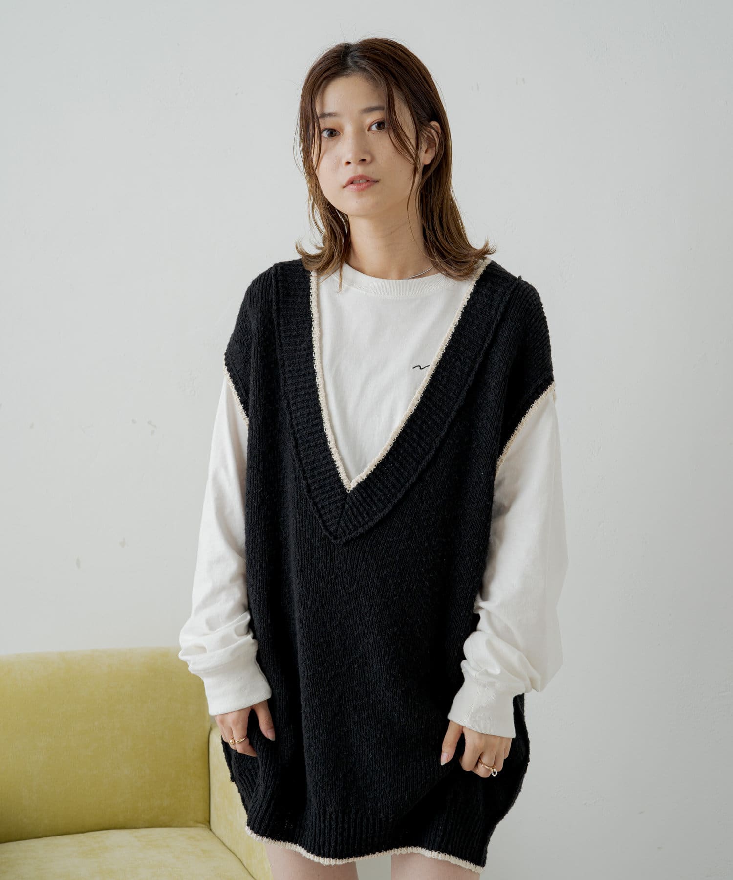 オーバーサイズシルエットがかわいい、オールシーズン使える綿ニットベスト