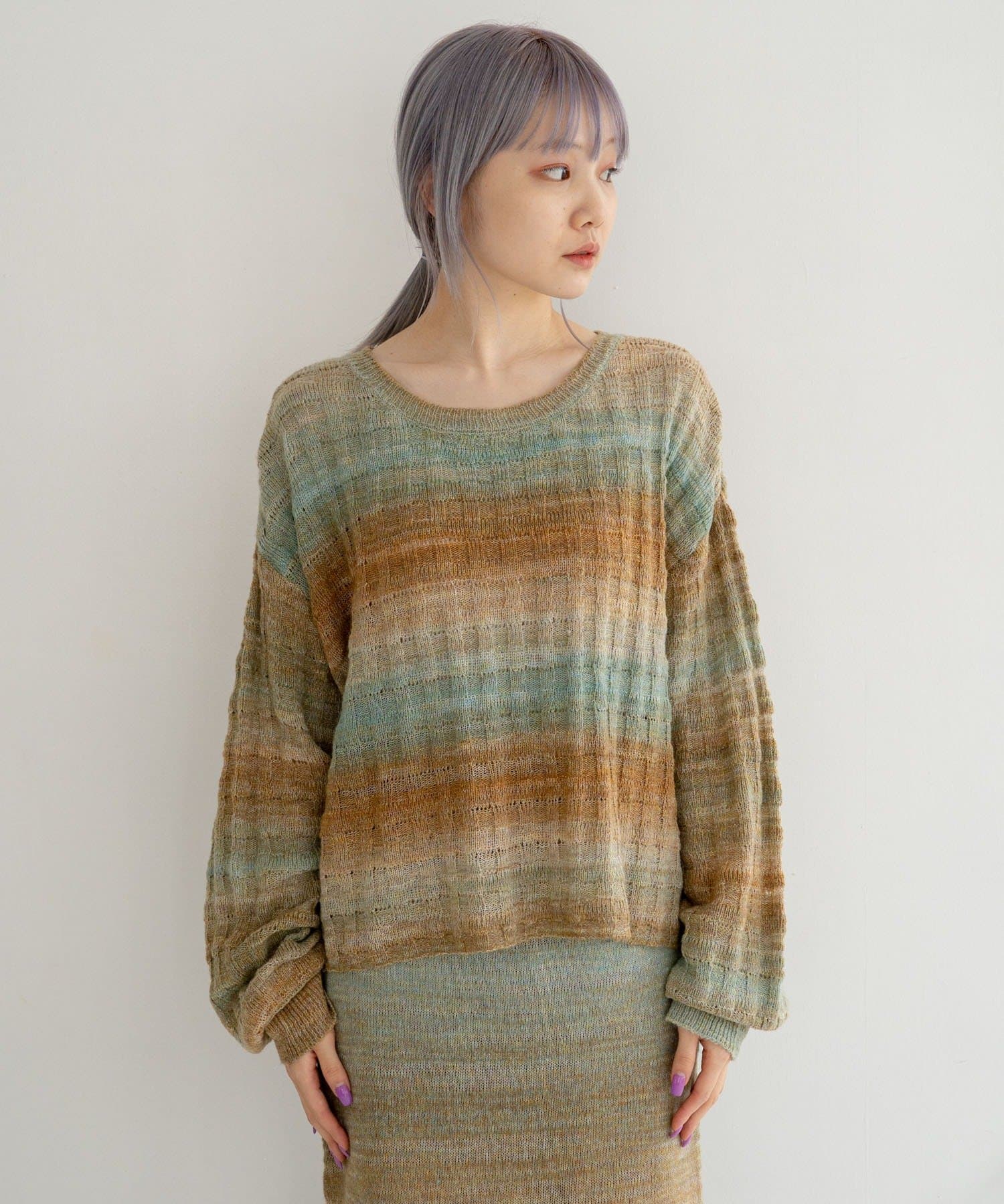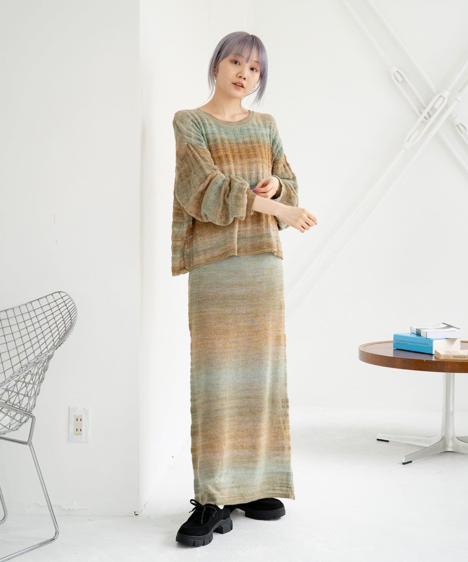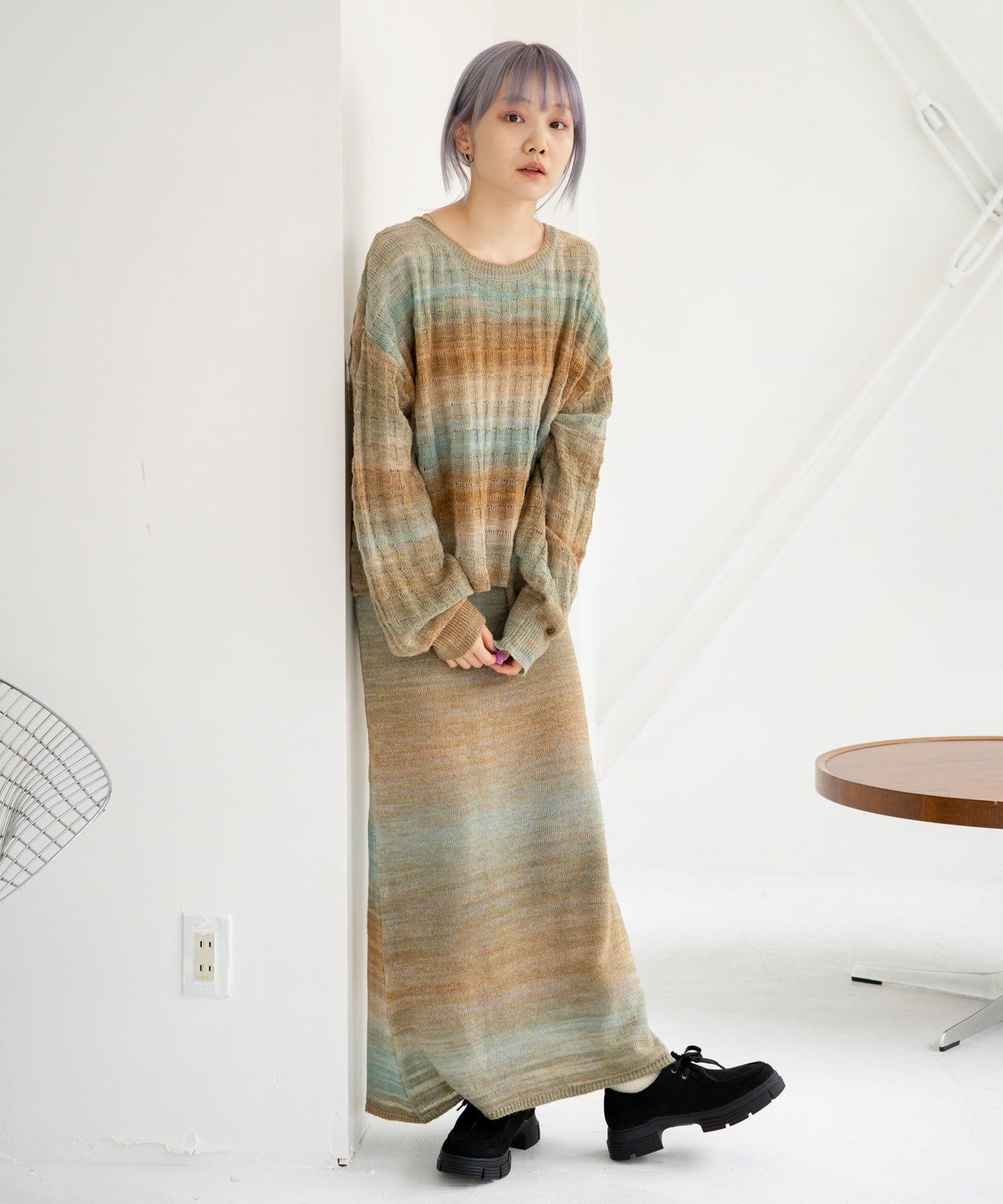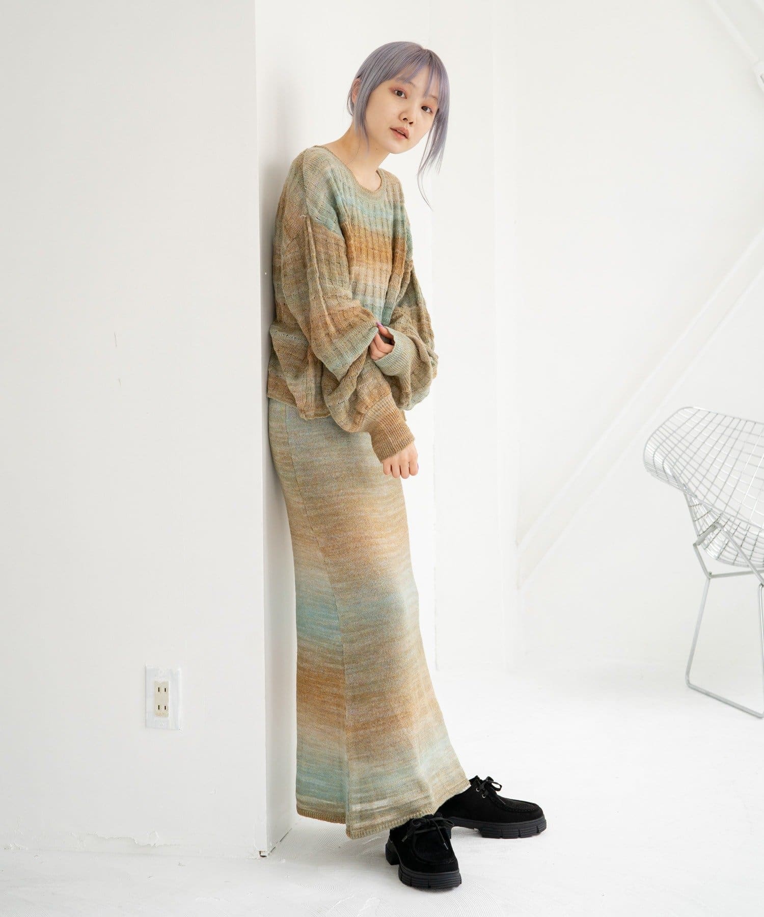SET UPでも、一枚でも存在感のあるグラデーションニット