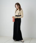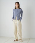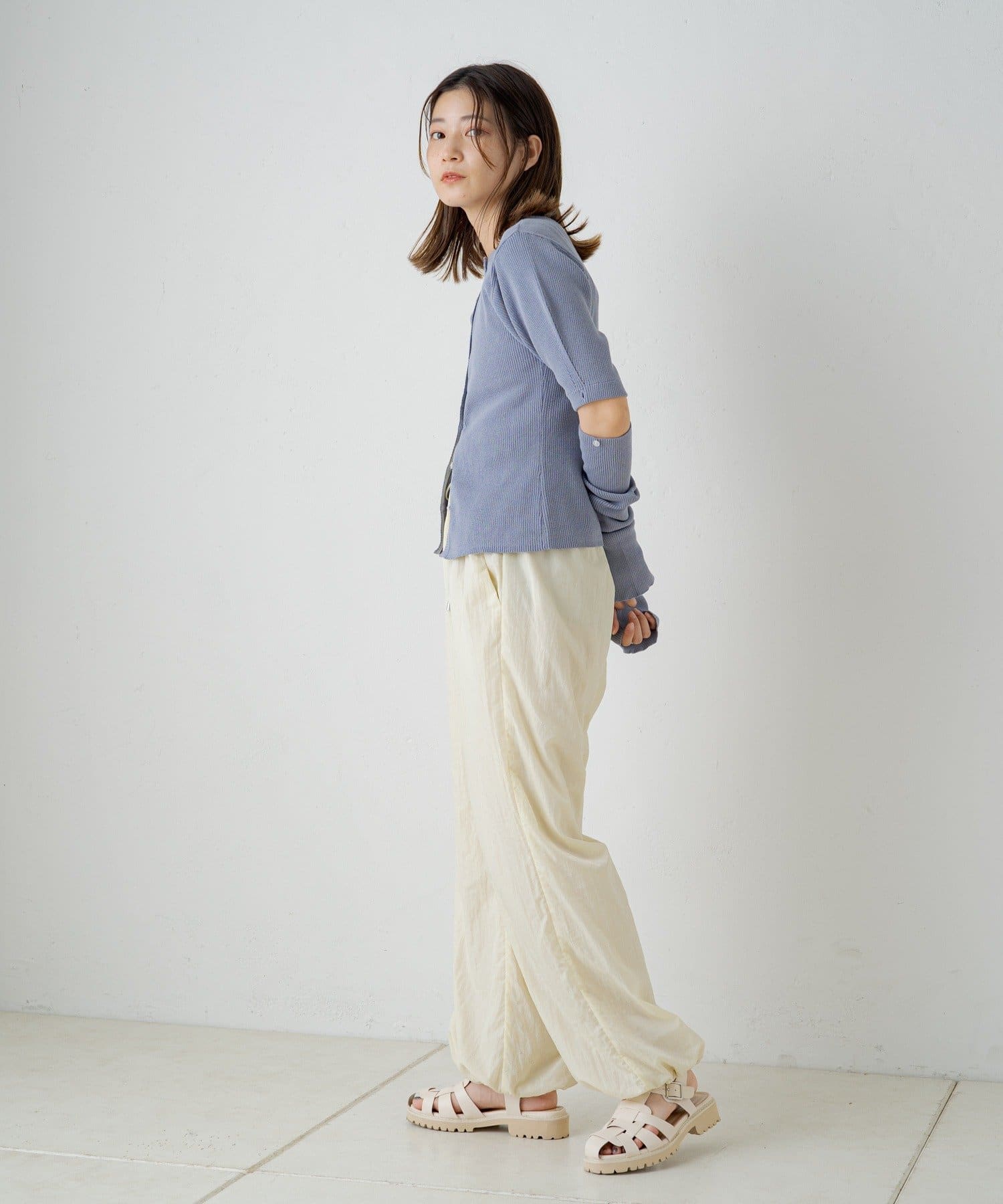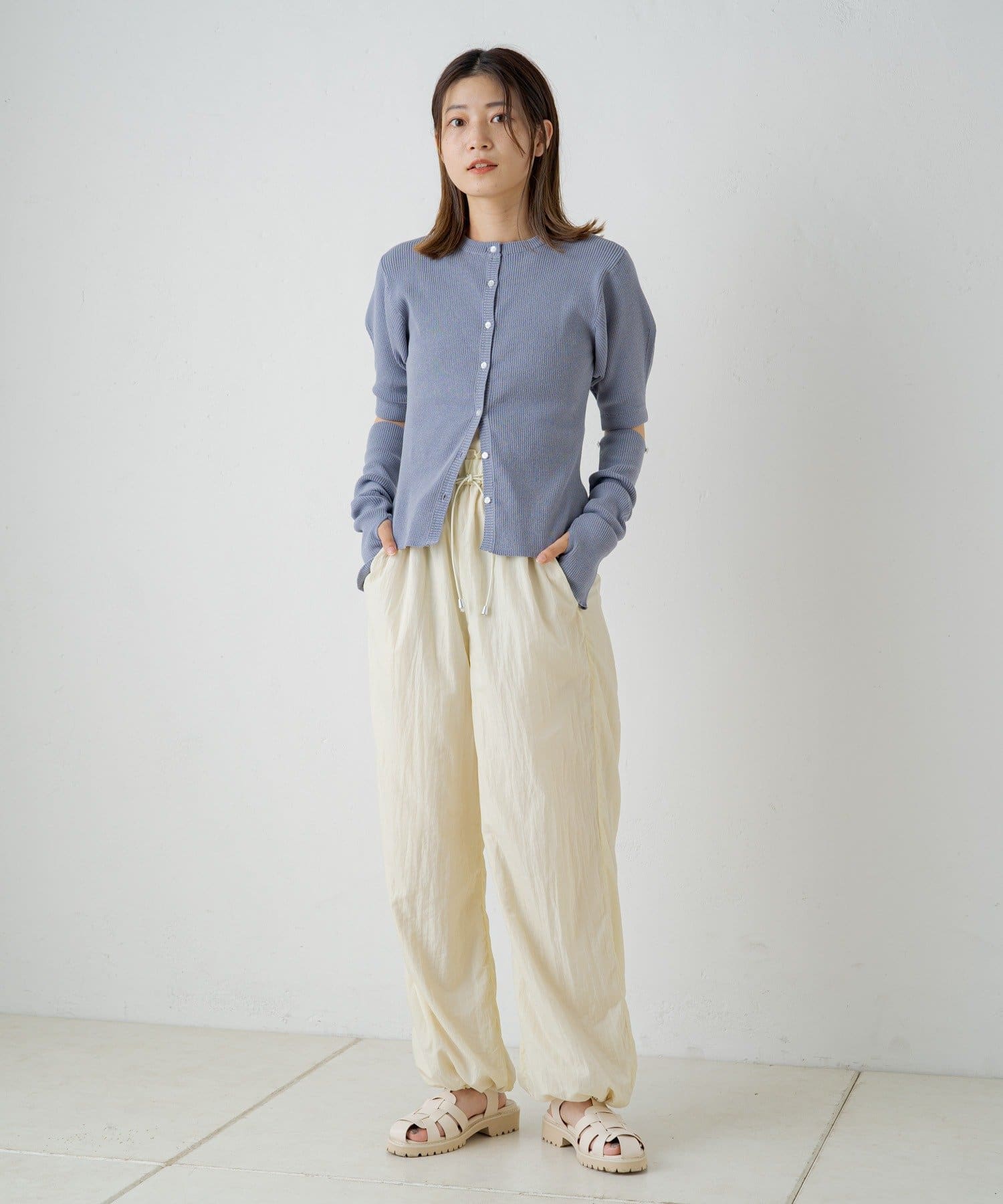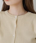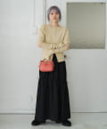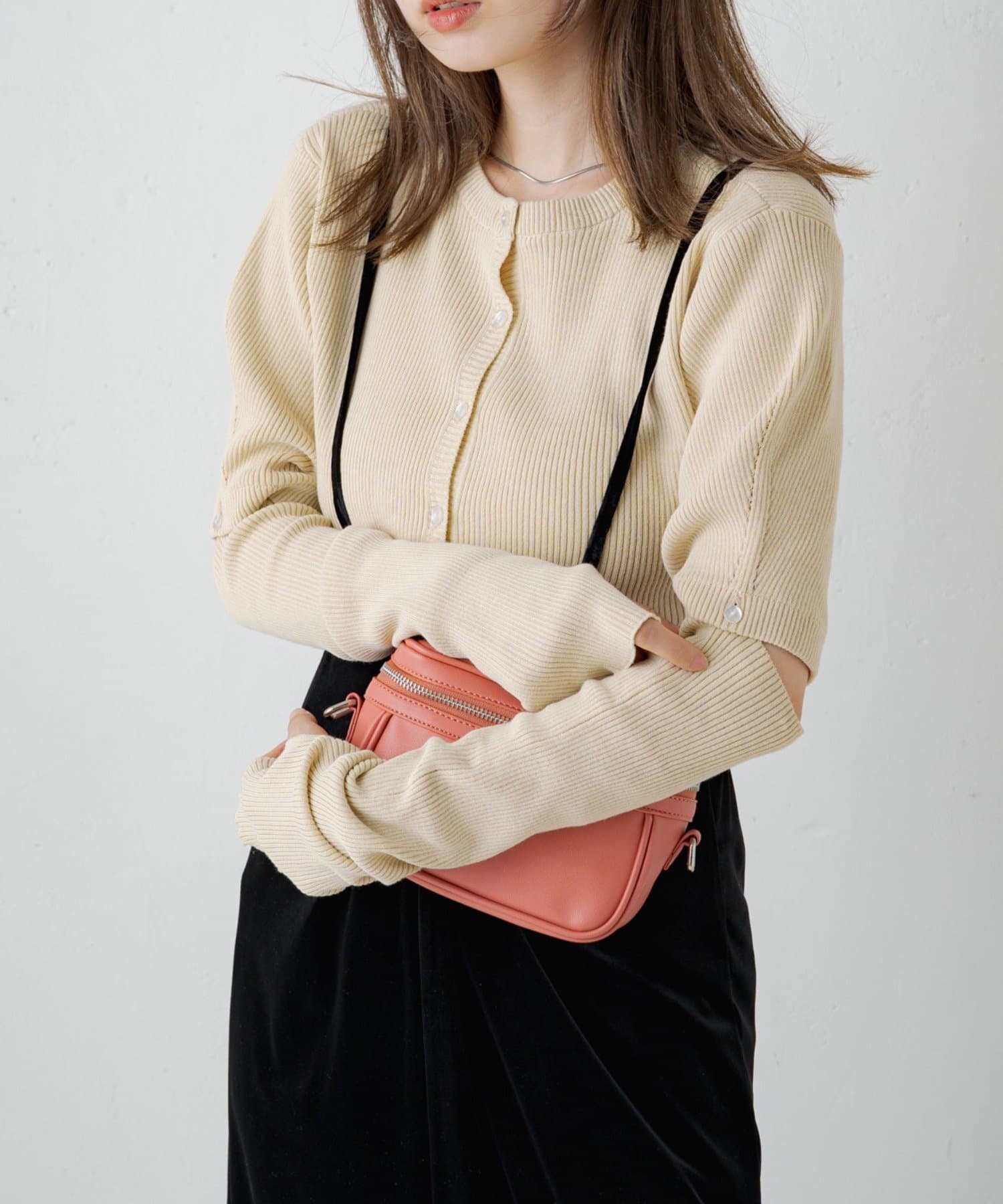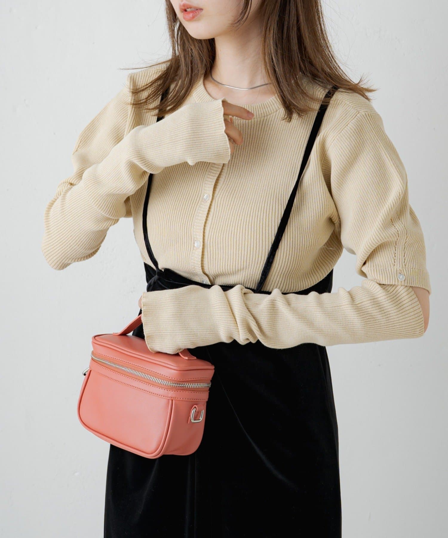 前開きのニットはボタンを開けて羽織りとしても、程よく肌見せをしても可愛い一枚です。