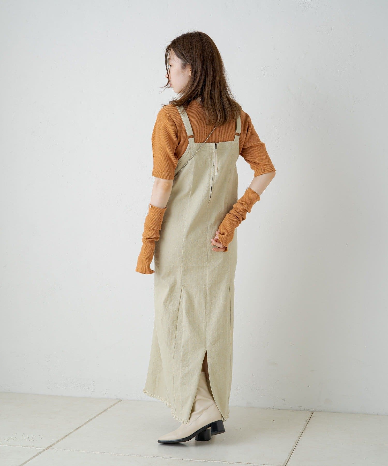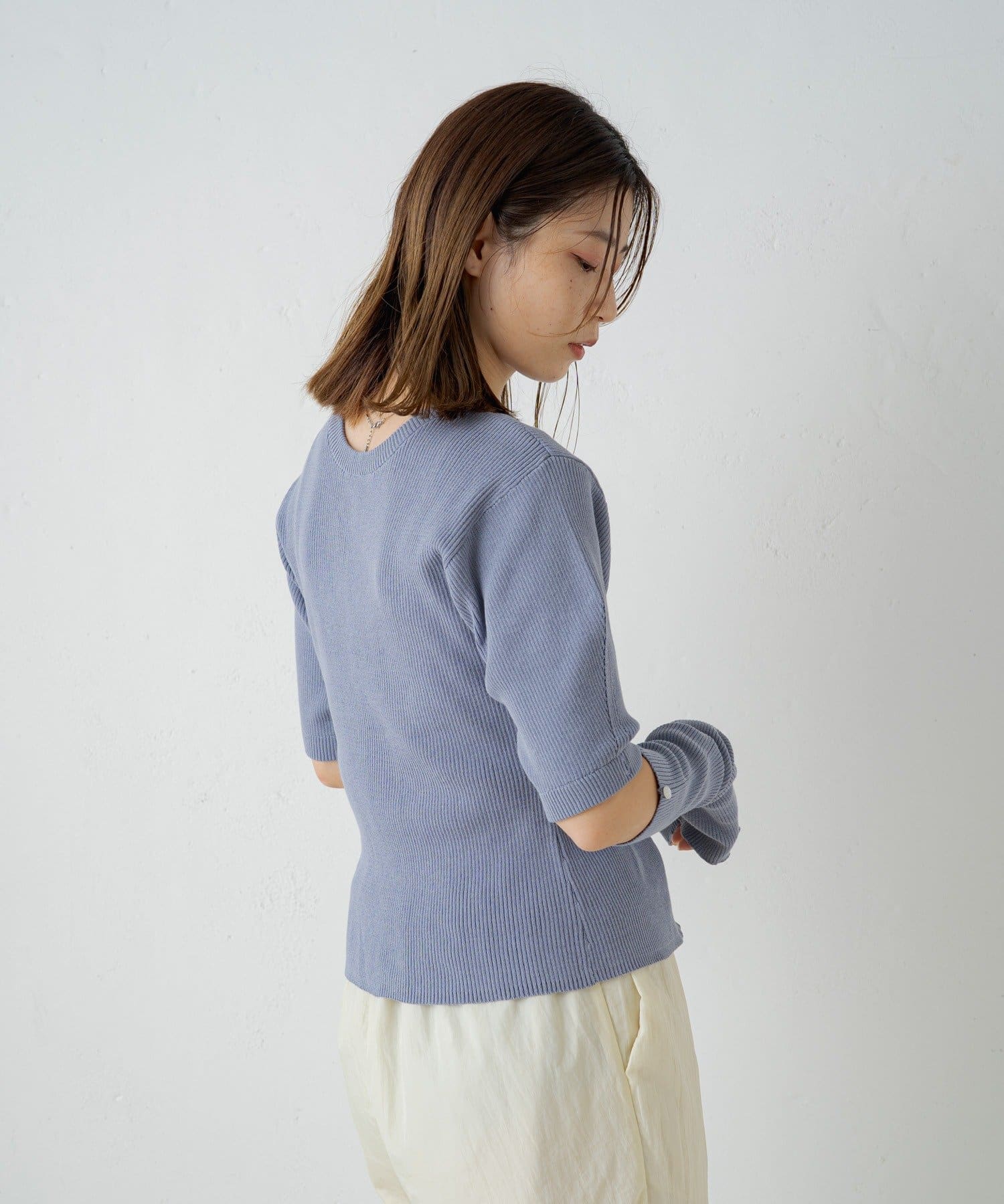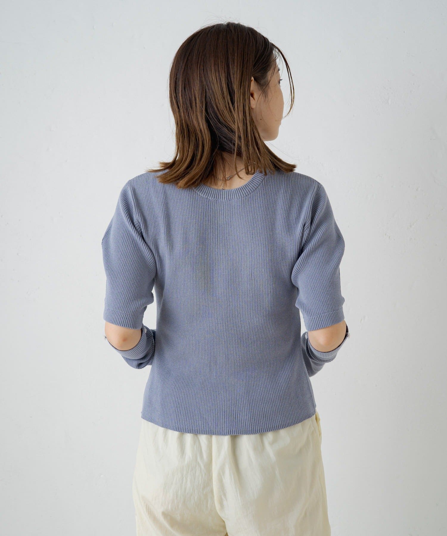 気温が高い日には、半袖ニット一枚で、Iラインスカートやキャミワンピースのインナーとしても活躍します。