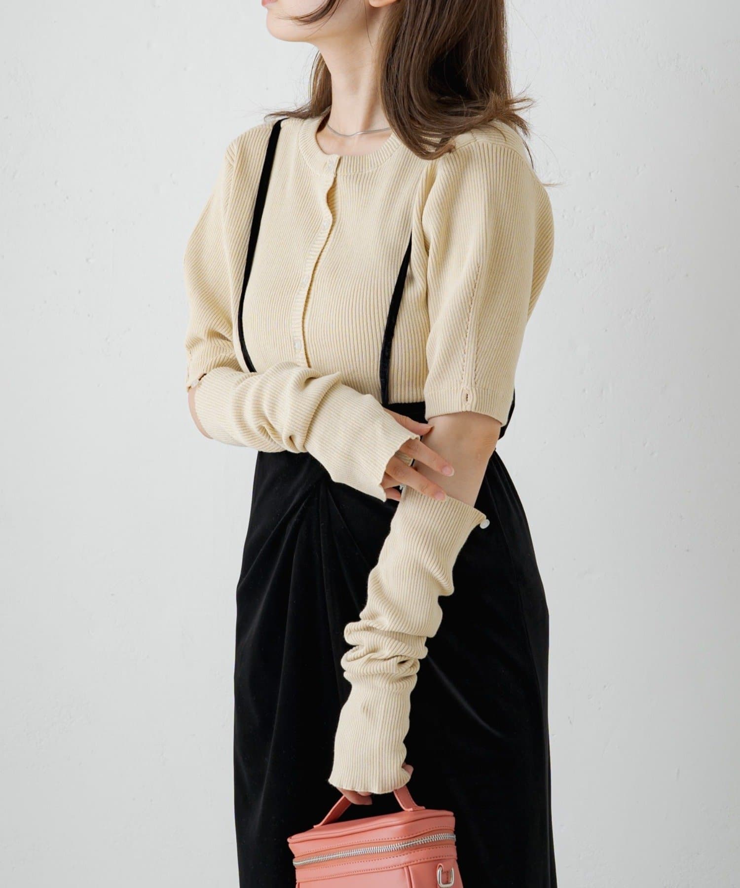 秋冬にはアームウォーマーとニットのセットで着て頂くのがおすすめです。