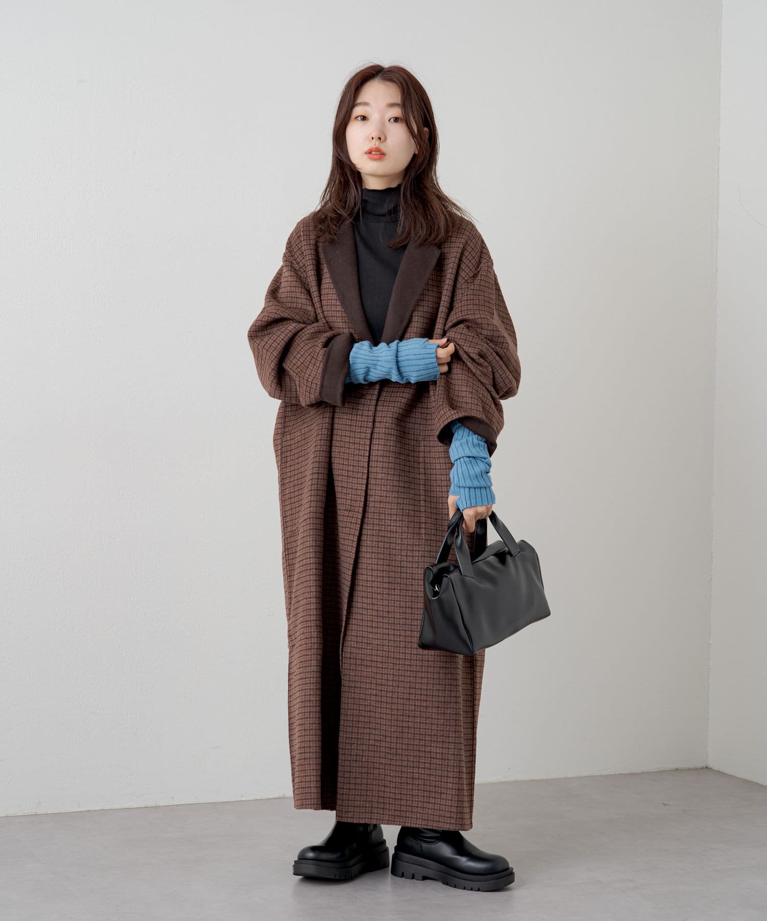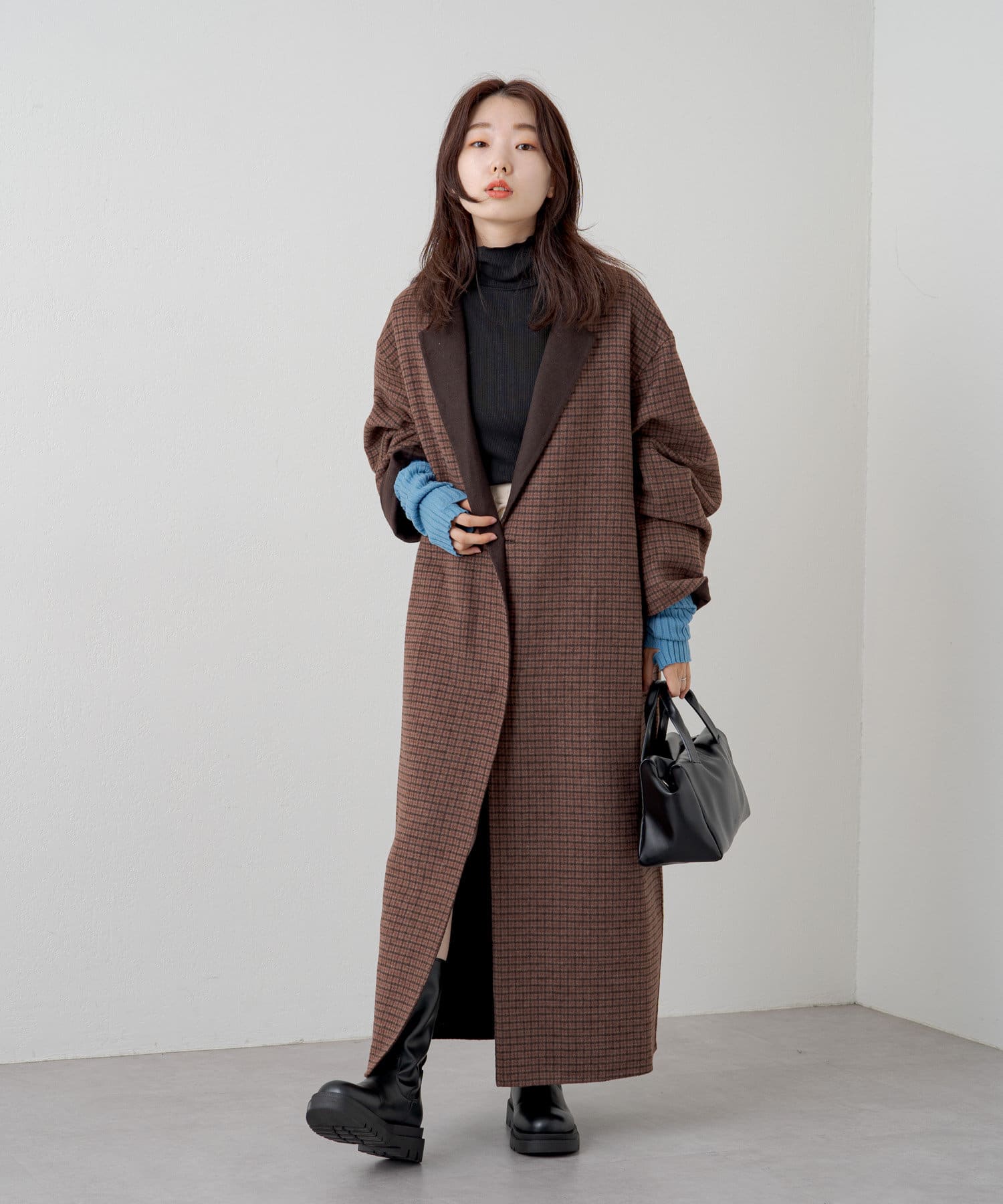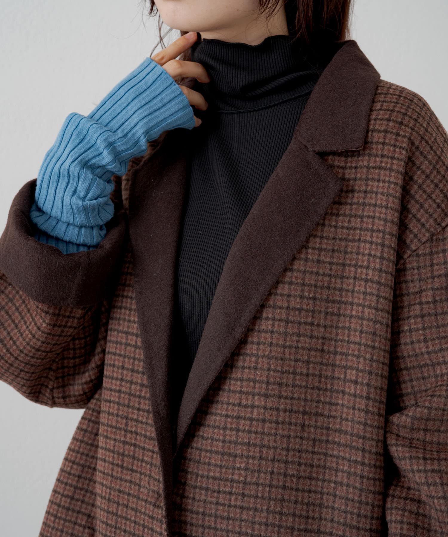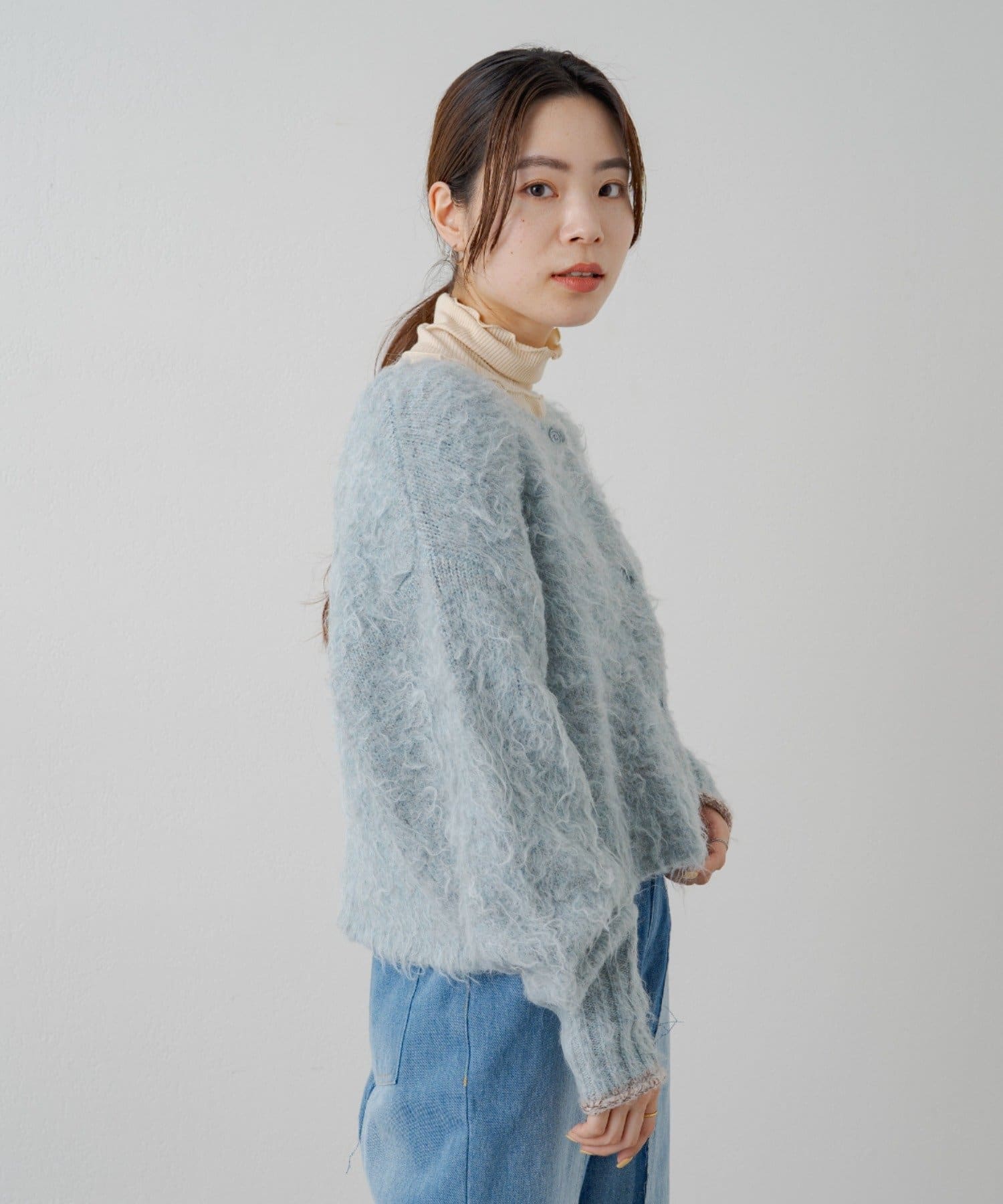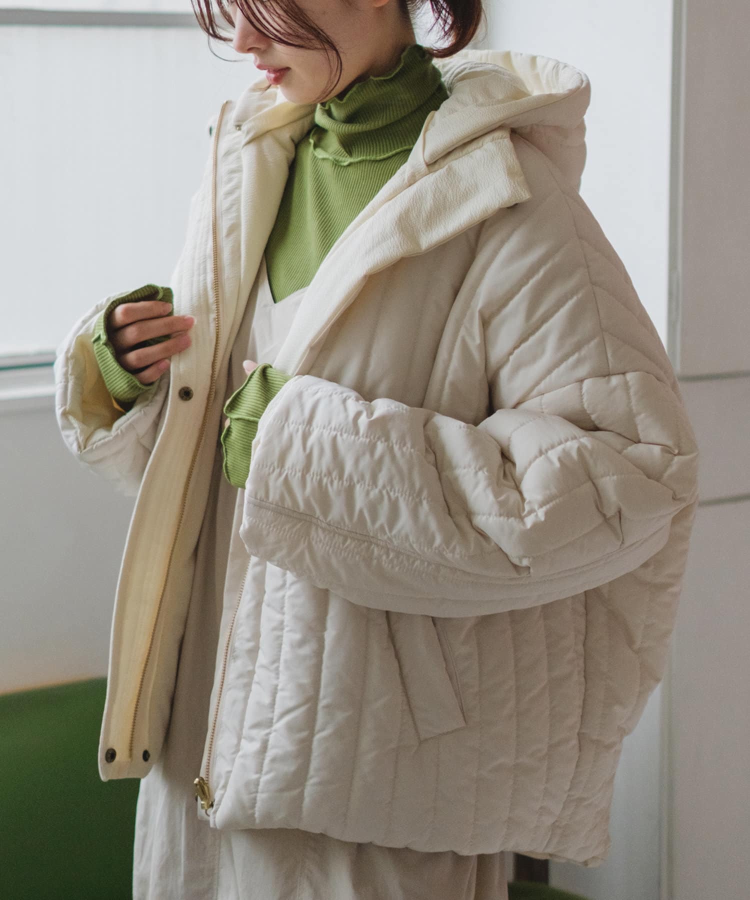 ハイネックの首が窮屈な感じが苦手な方にもおすすめの一着。