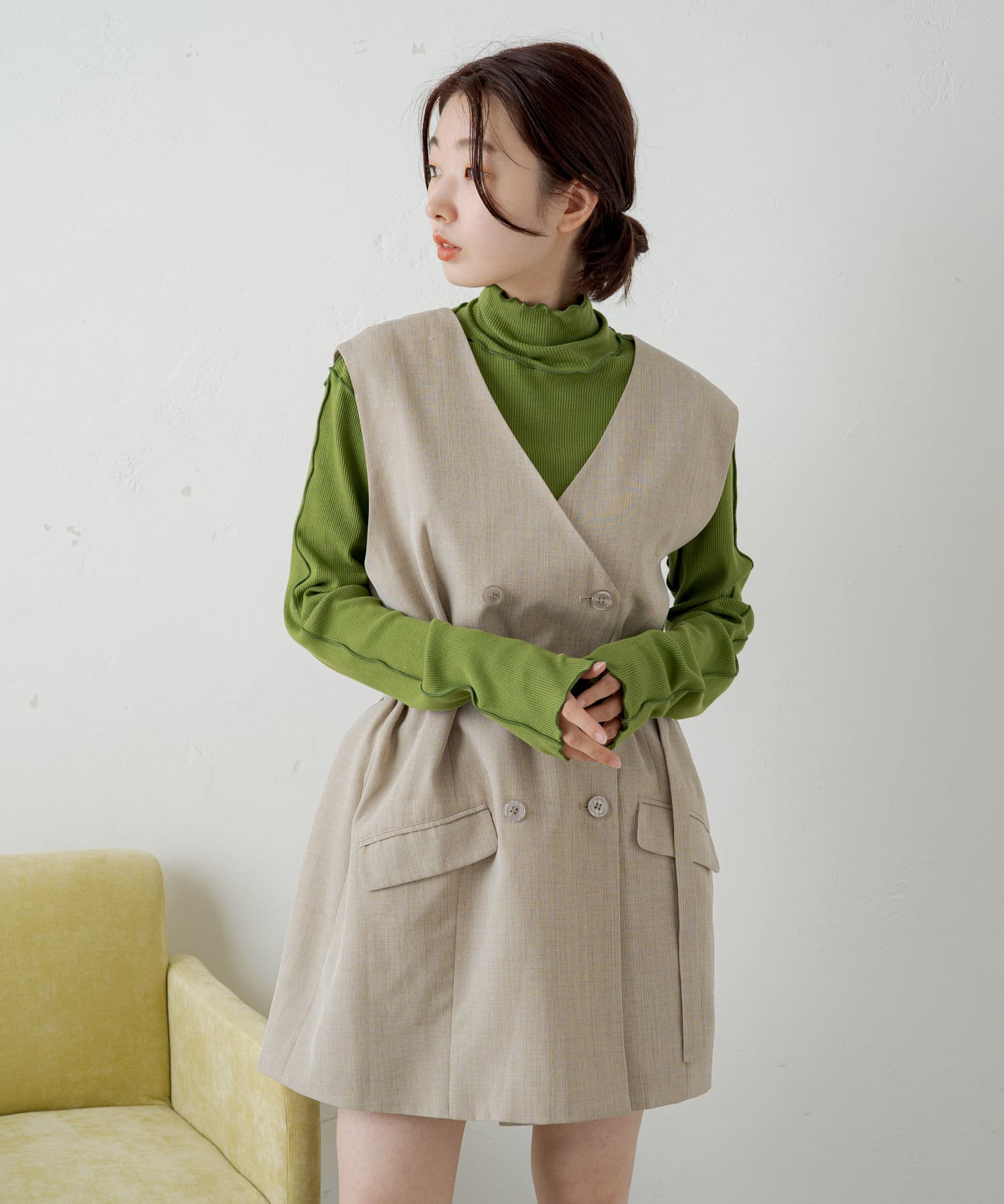 V開きのベストと一緒に着ると、首詰まってても全然平気です。かわいい!