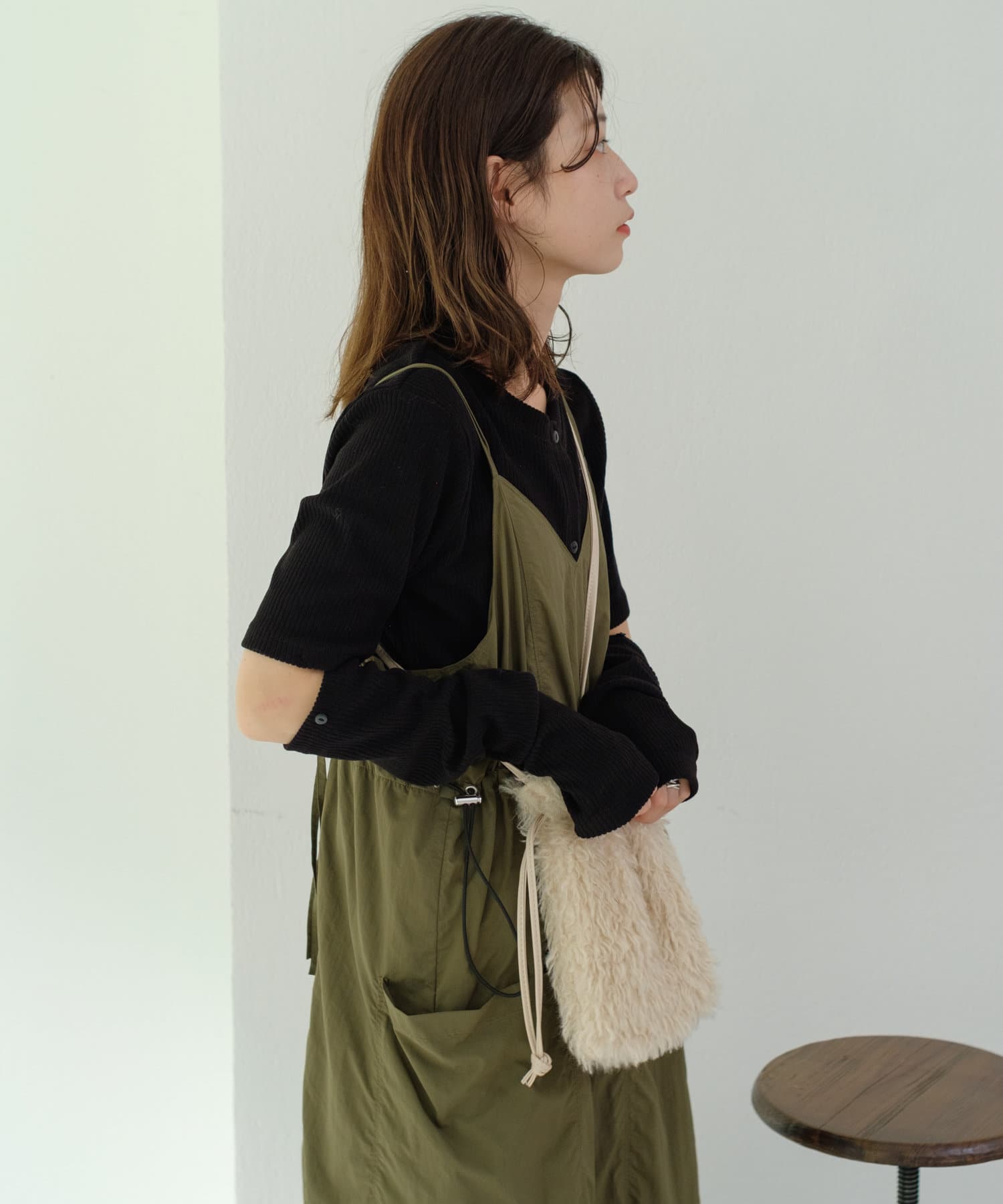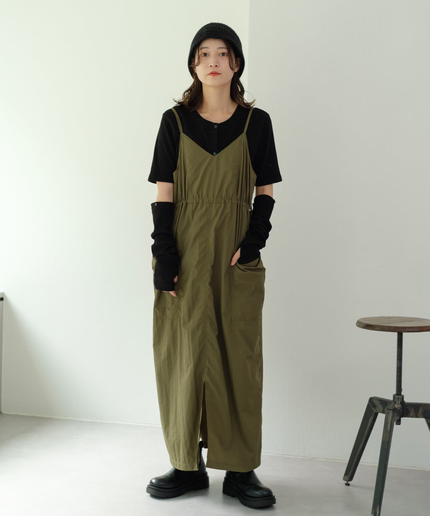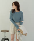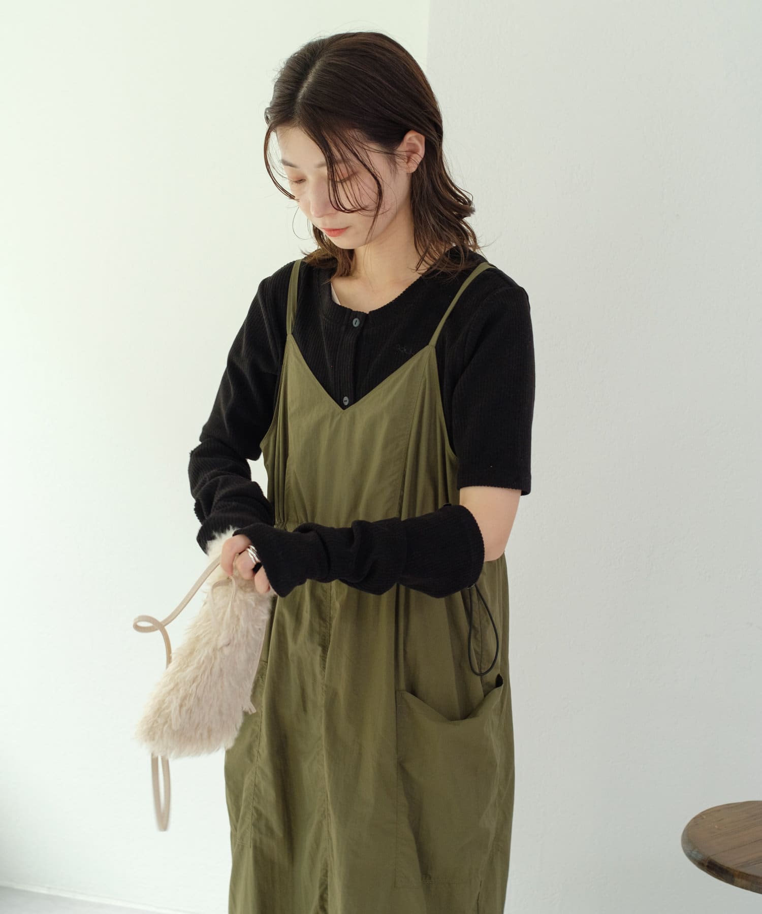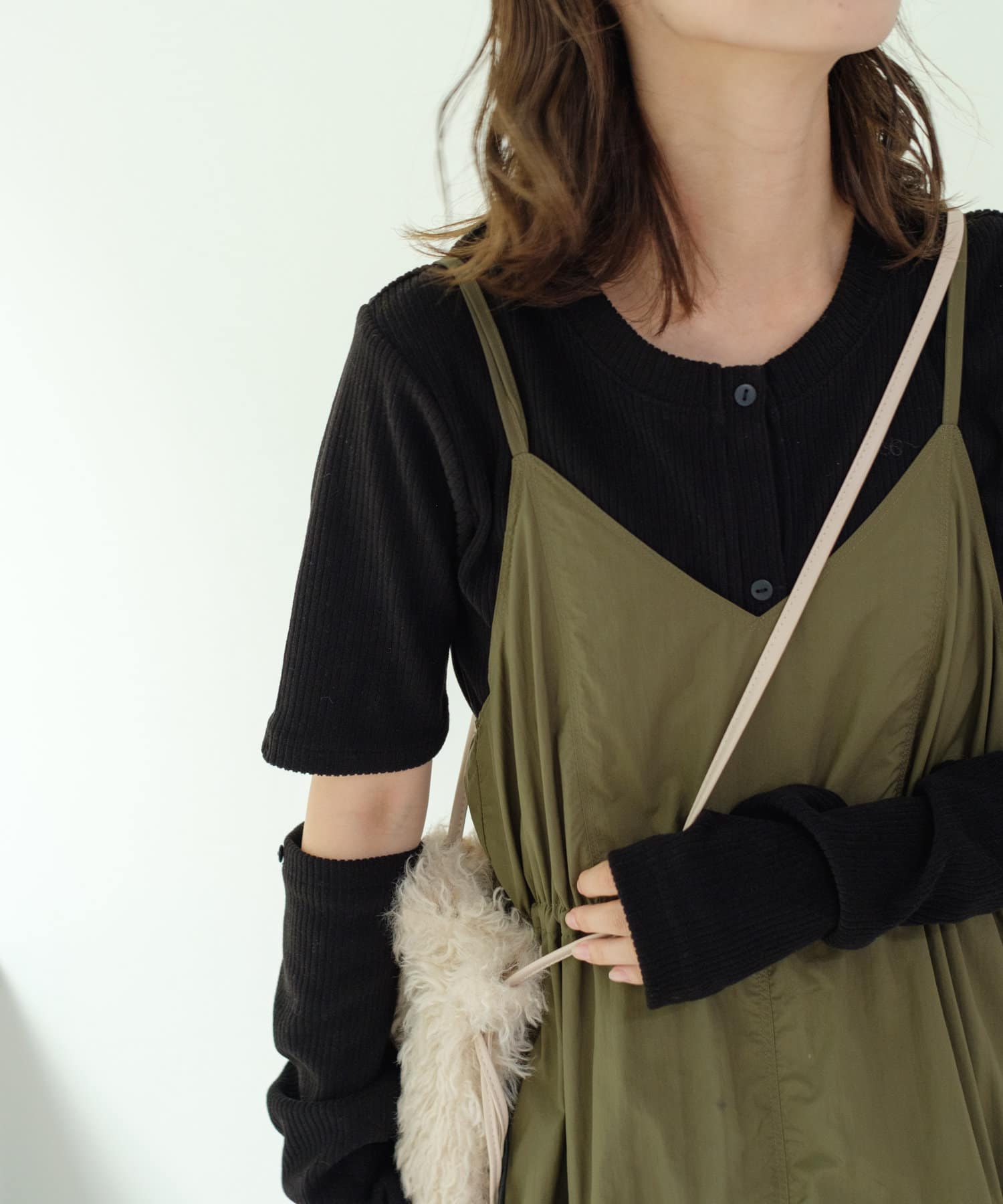 すっきりとしたシルエットはベストやキャミワンピースのインナーとしても最適。
