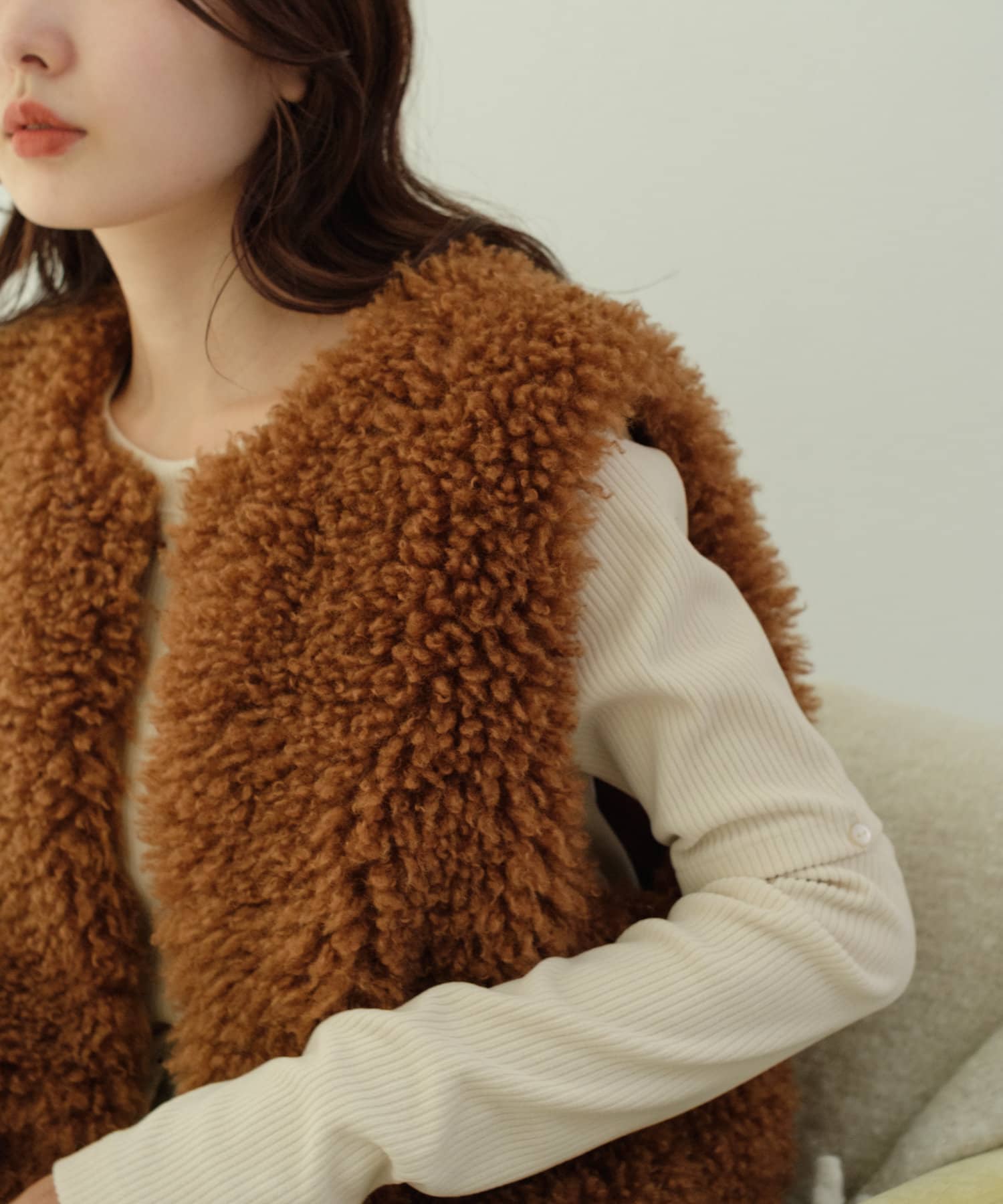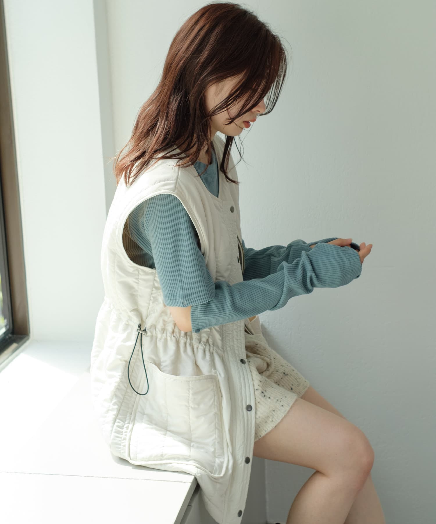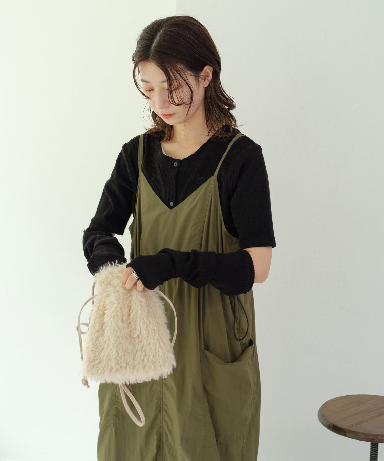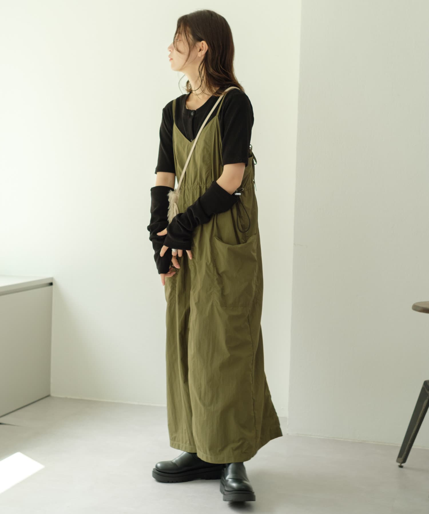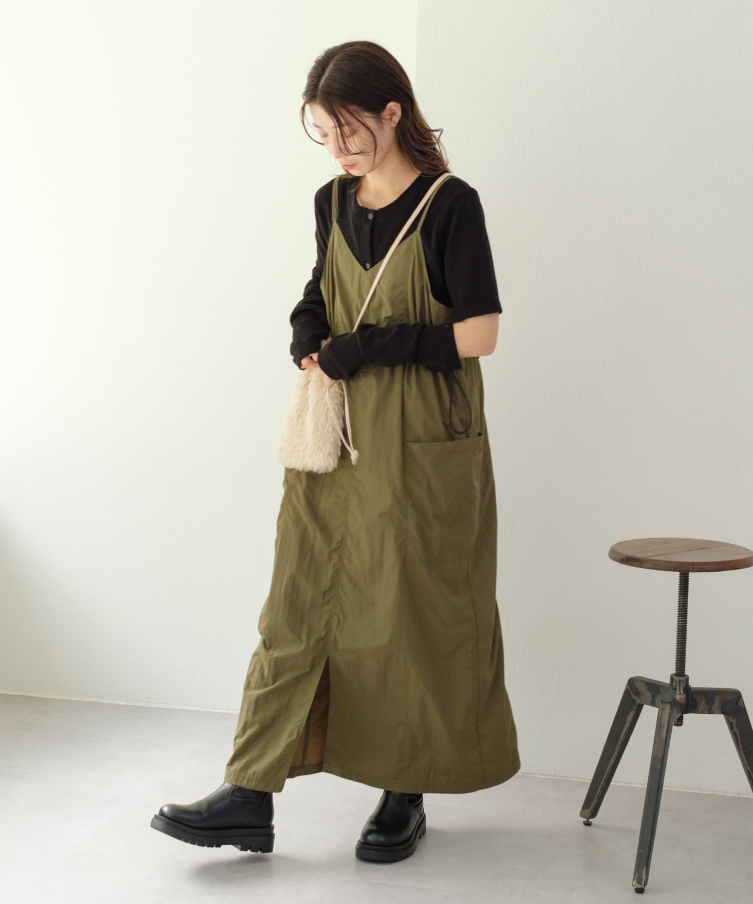 すっきりとしたシルエットはベストやキャミワンピースのインナーとしても最適。