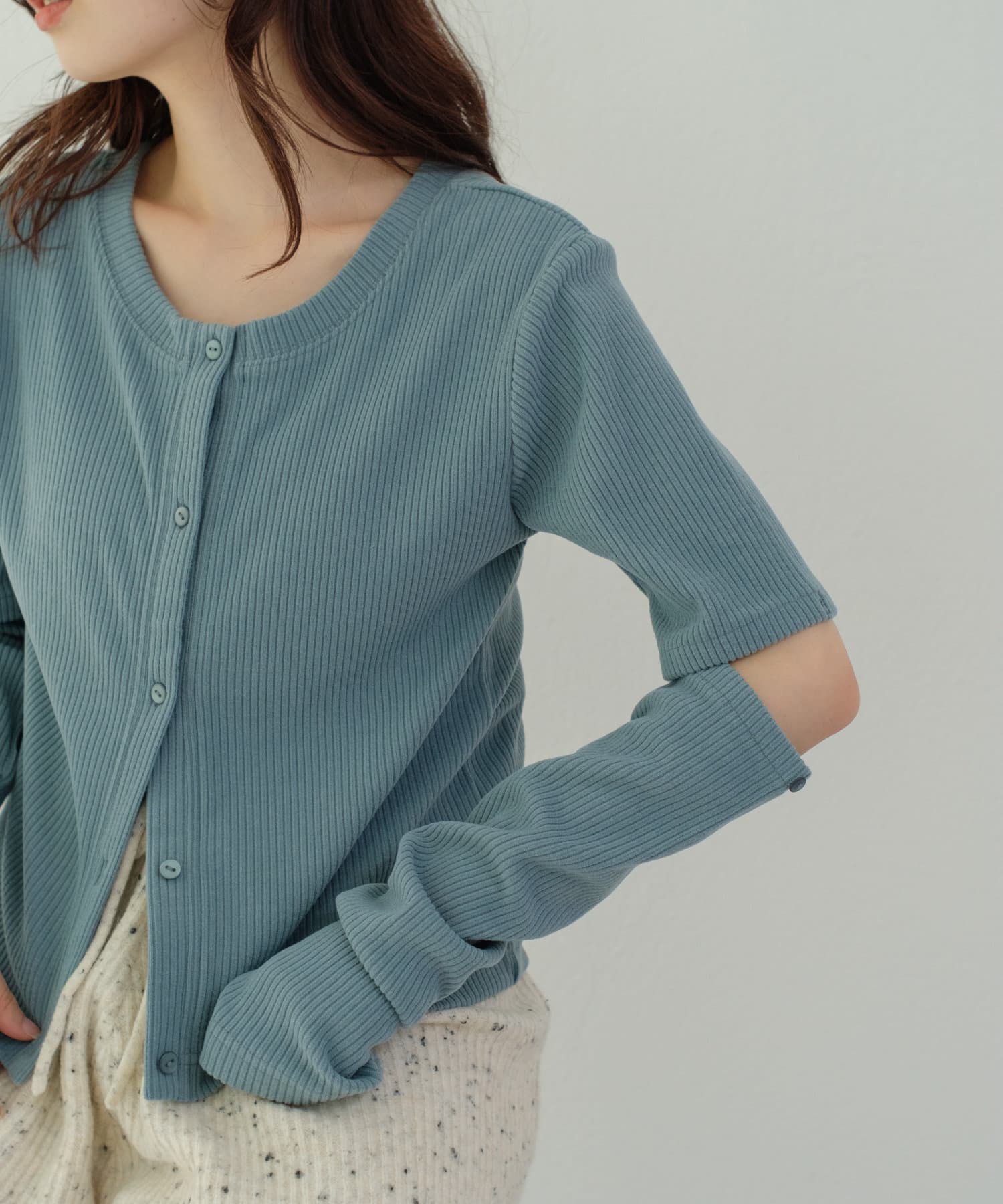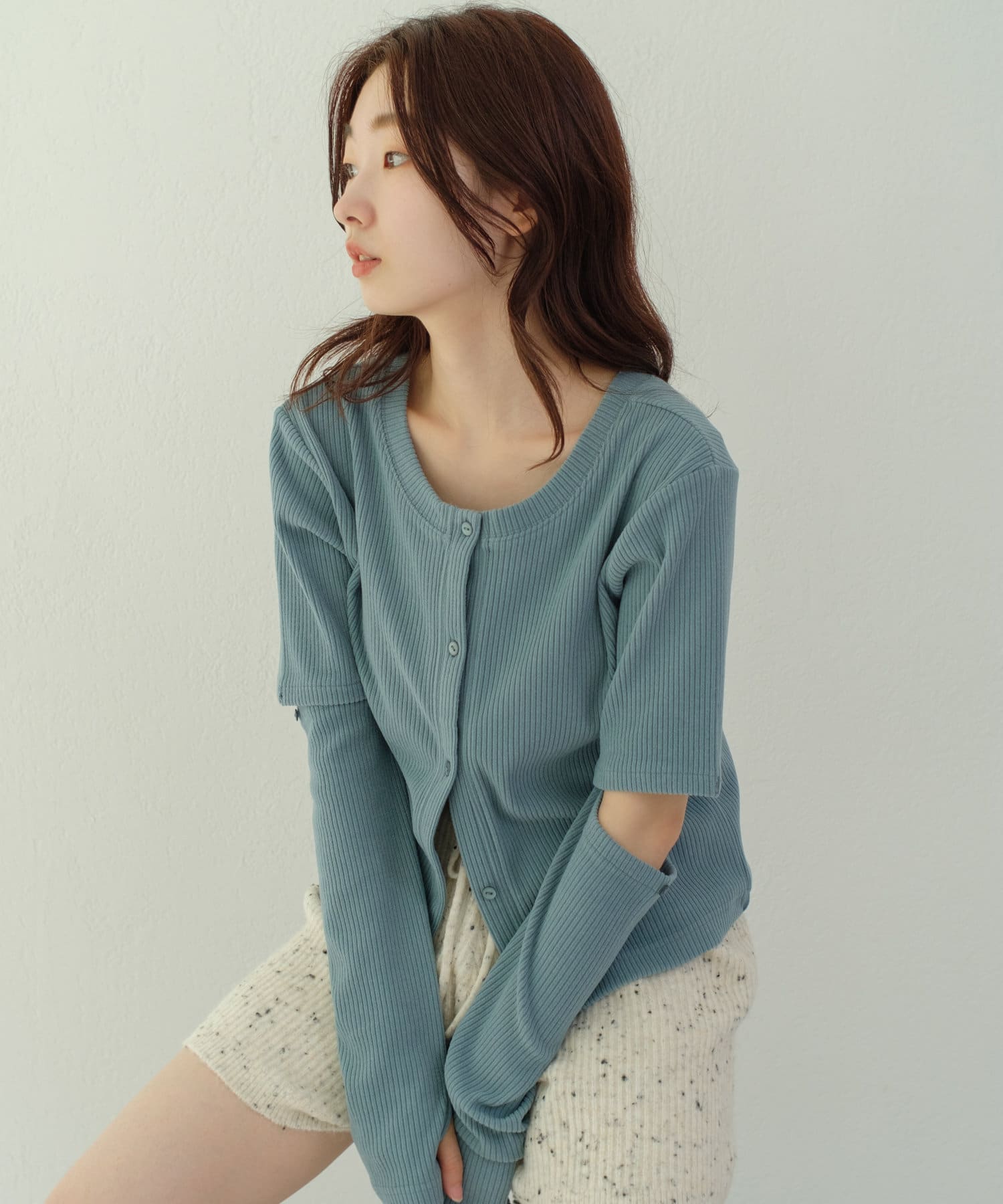 前開きデザインは羽織りとしてもお使いいただけます。